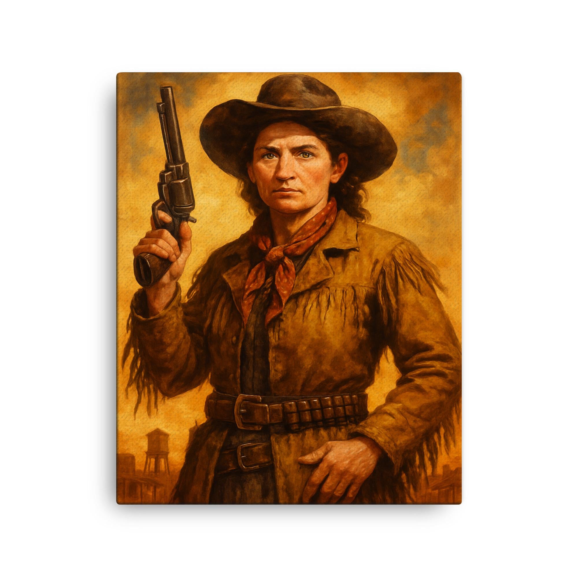 Elevate your living space with this striking Calamity Jane canvas print—a bold piece of wall art that brings rugged history and timeless spirit into your home or office.
