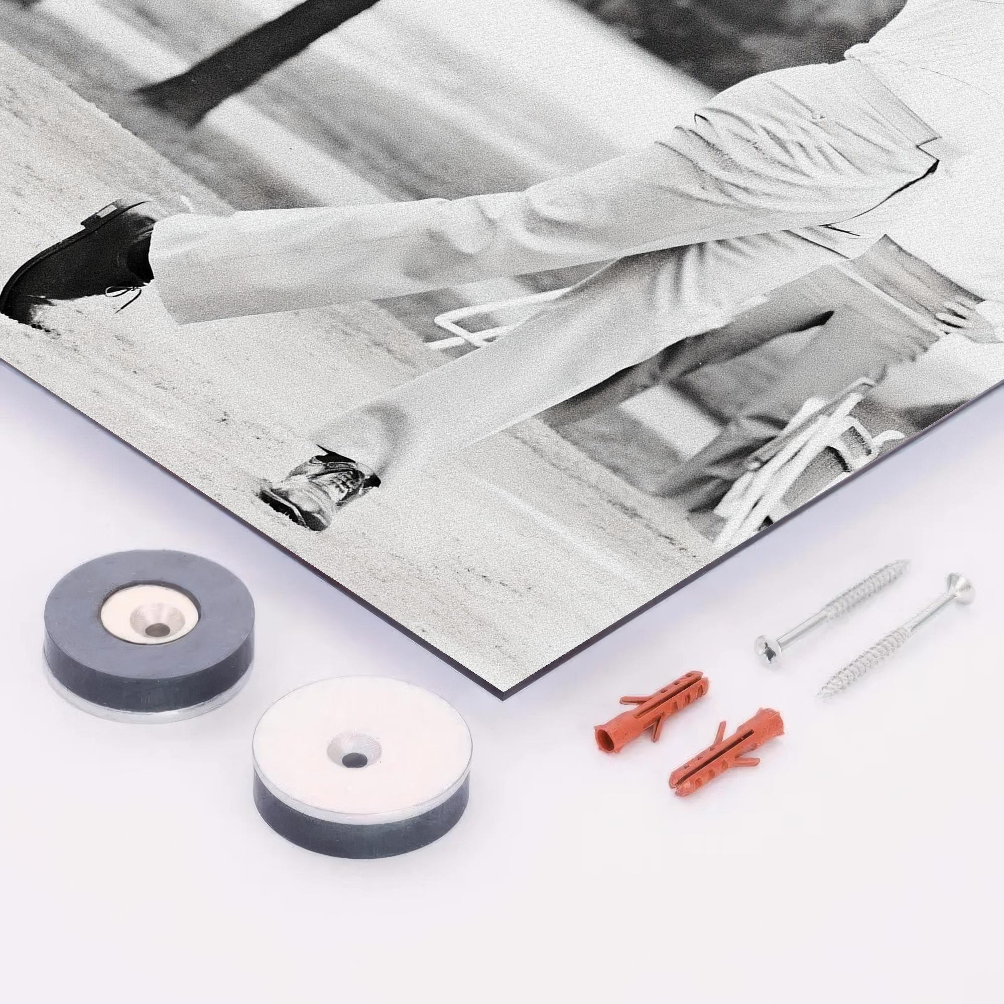 Your new metal print arrives ready to hang, creating a stunning "floating" effect right out of the box. It includes a complimentary, pre-installed mounting system—a magnet, hanger or secure French cleat—selected by our lab to best suit its size, ensuring a gallery-quality presentation.