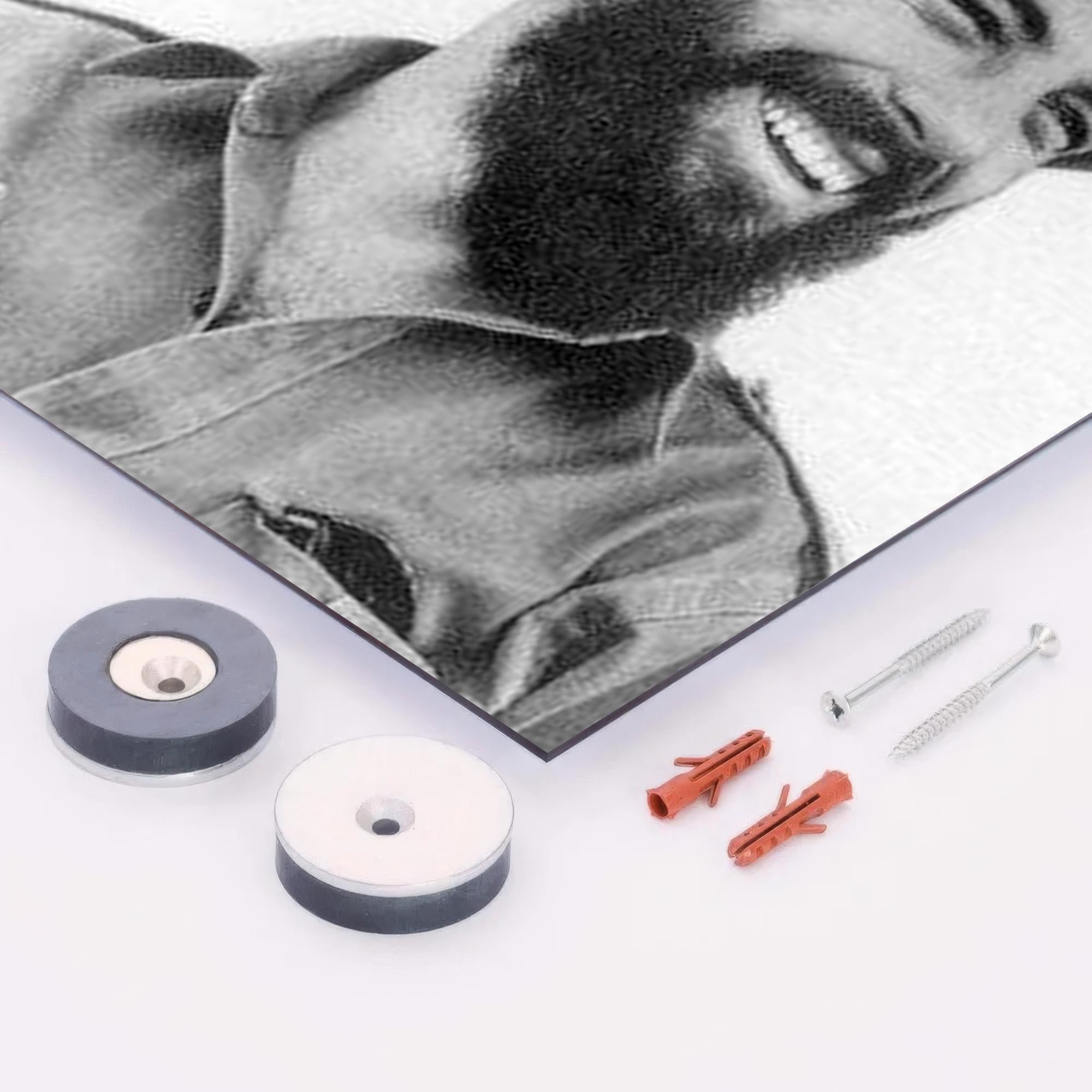 This metal print of Camilo Cienfuegos brings a slice of history into your space, a quiet reminder of the person behind the name.