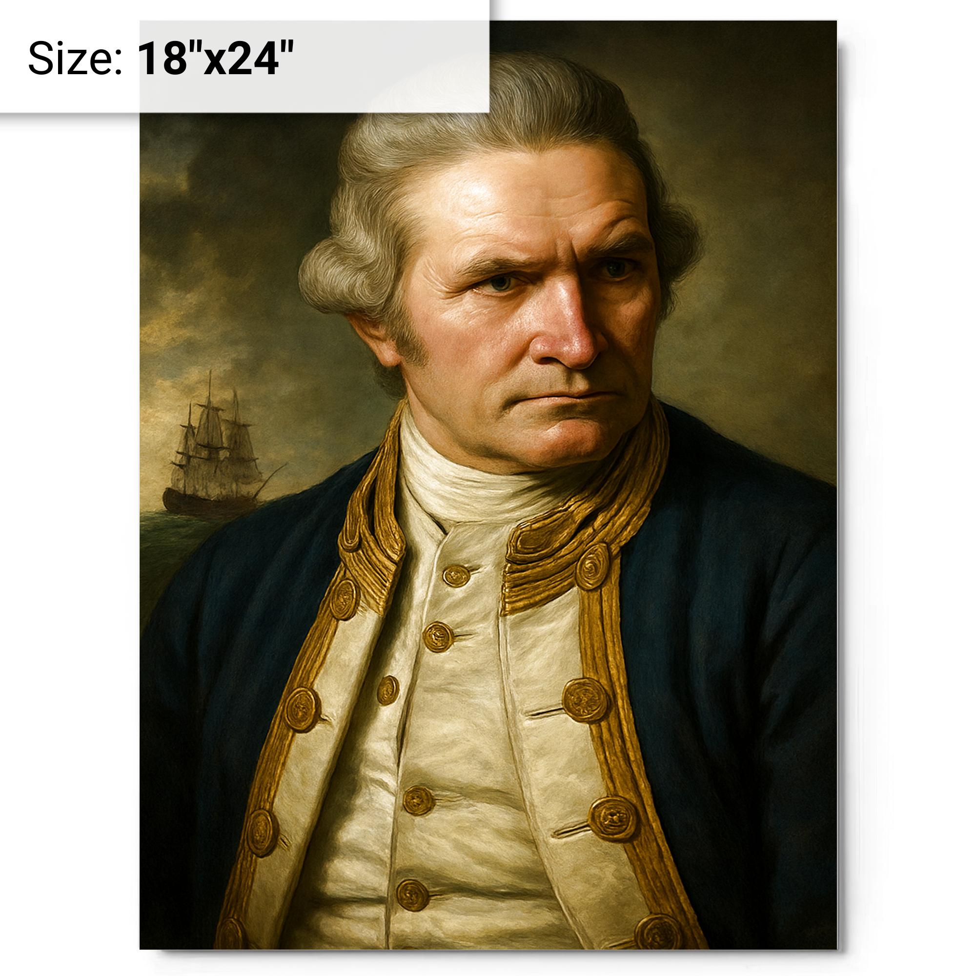 Captain James Cook Portrait Metal Print - Historic Maritime Wall Art, Nautical Explorer Decor