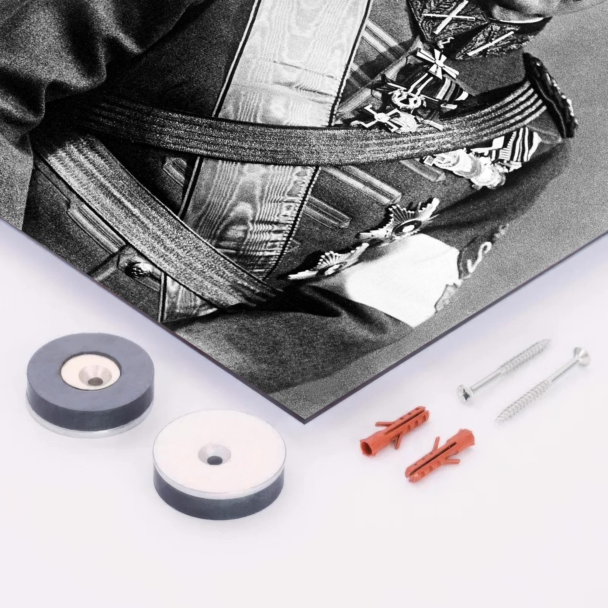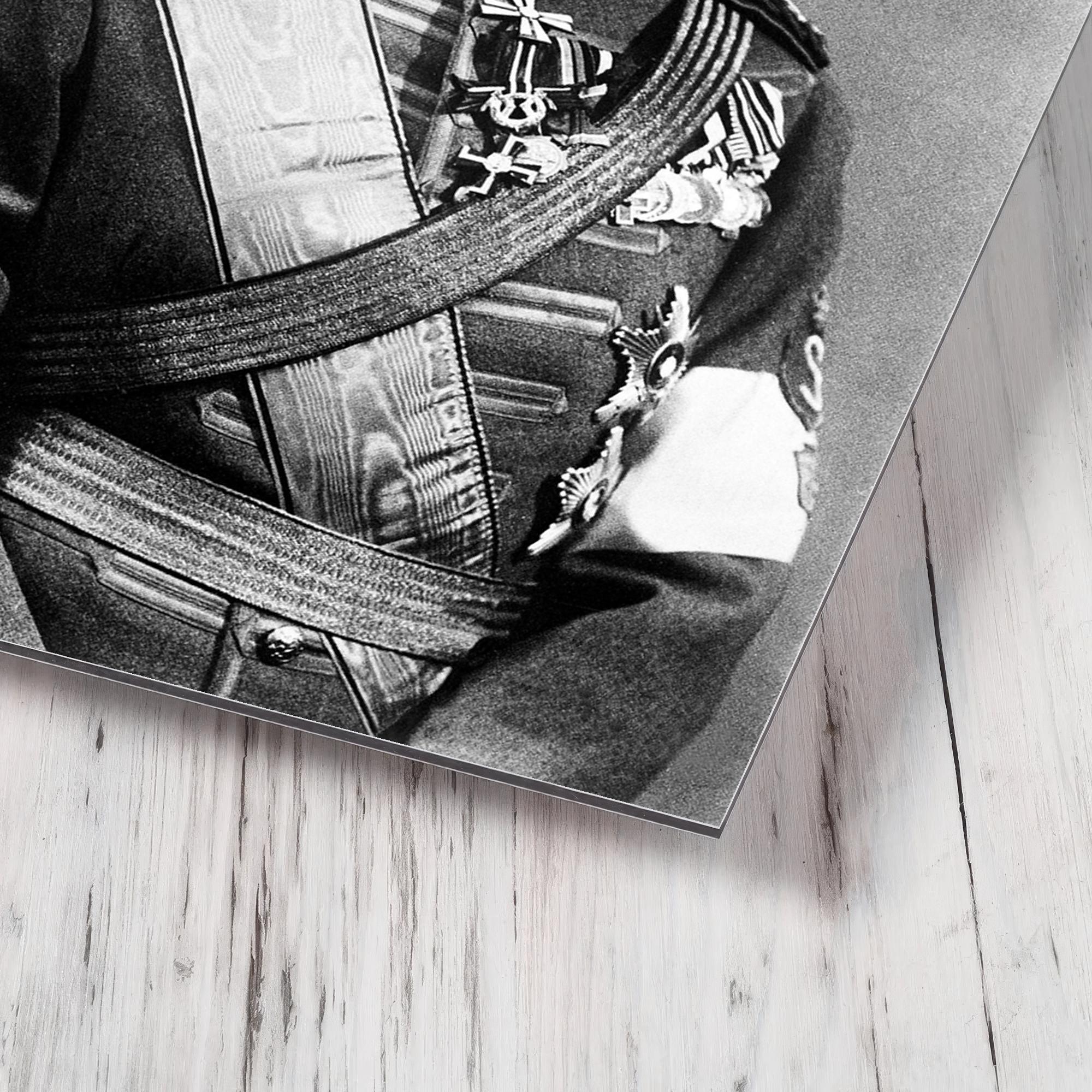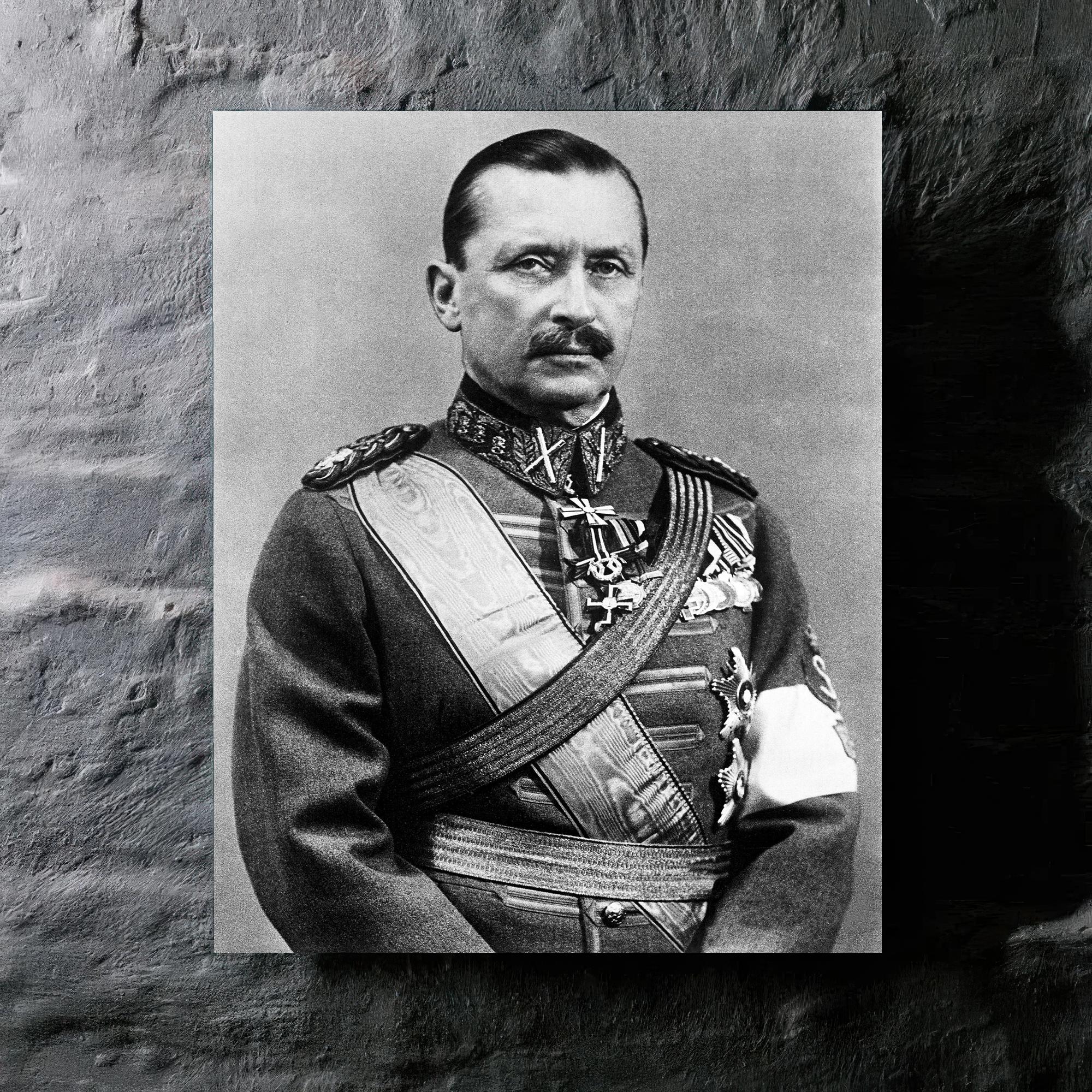 This metal print captures Carl Gustaf Emil Mannerheim’s quiet authority and the weight of the history he carried, offering more than an image—it's a presence.