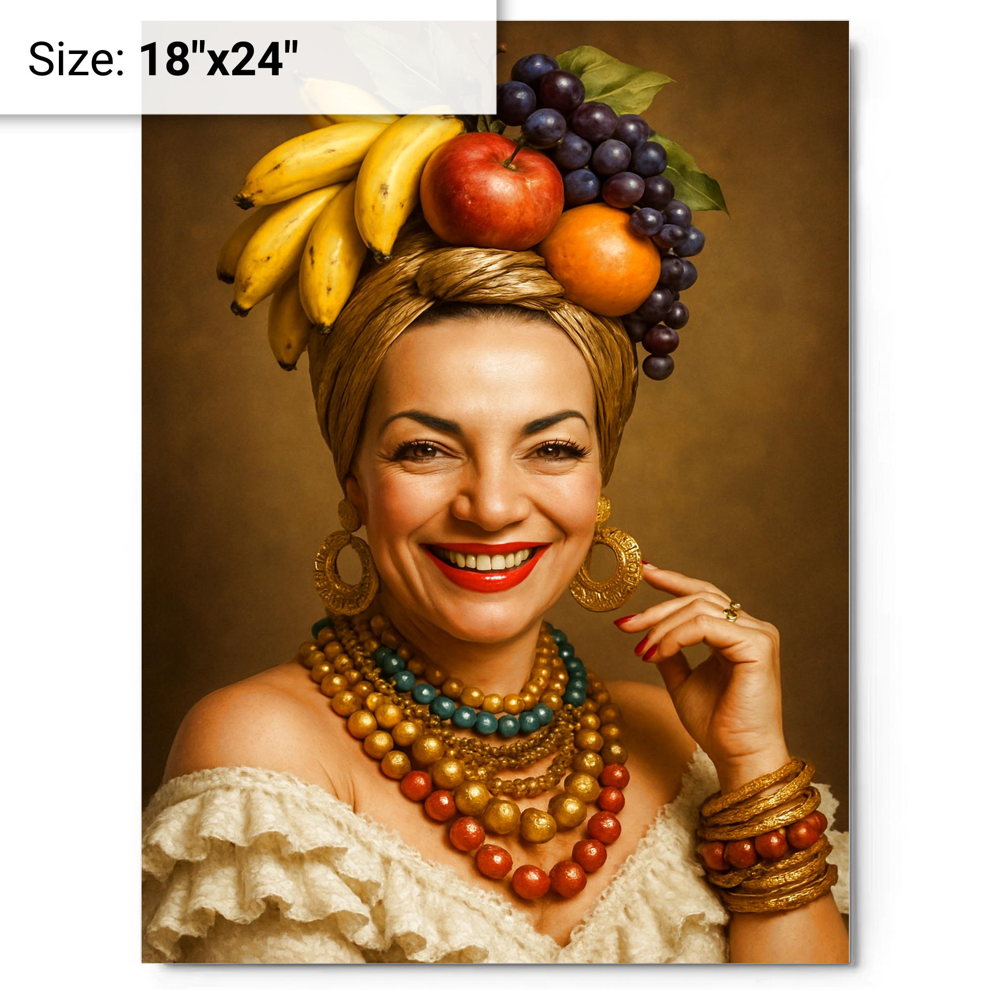 Carmen Miranda’s portrait feels like a burst of joy—impossible to look at without smiling at its bold, playful spirit.