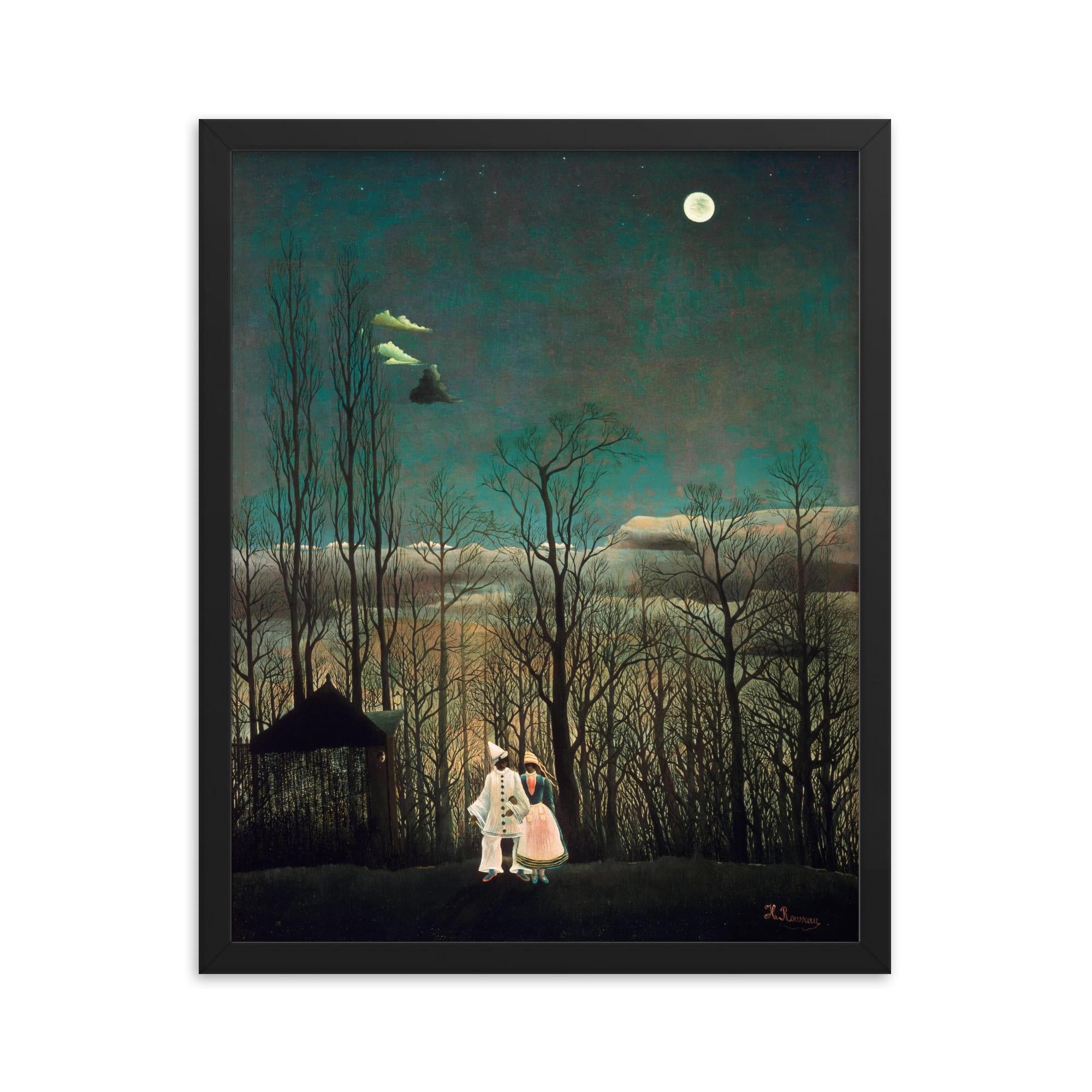 Bring an air of timeless intrigue to your space with this exquisite framed print of Carnival Evening by Henri Rousseau, 1886—a masterpiece that has captivated art lovers for generations.