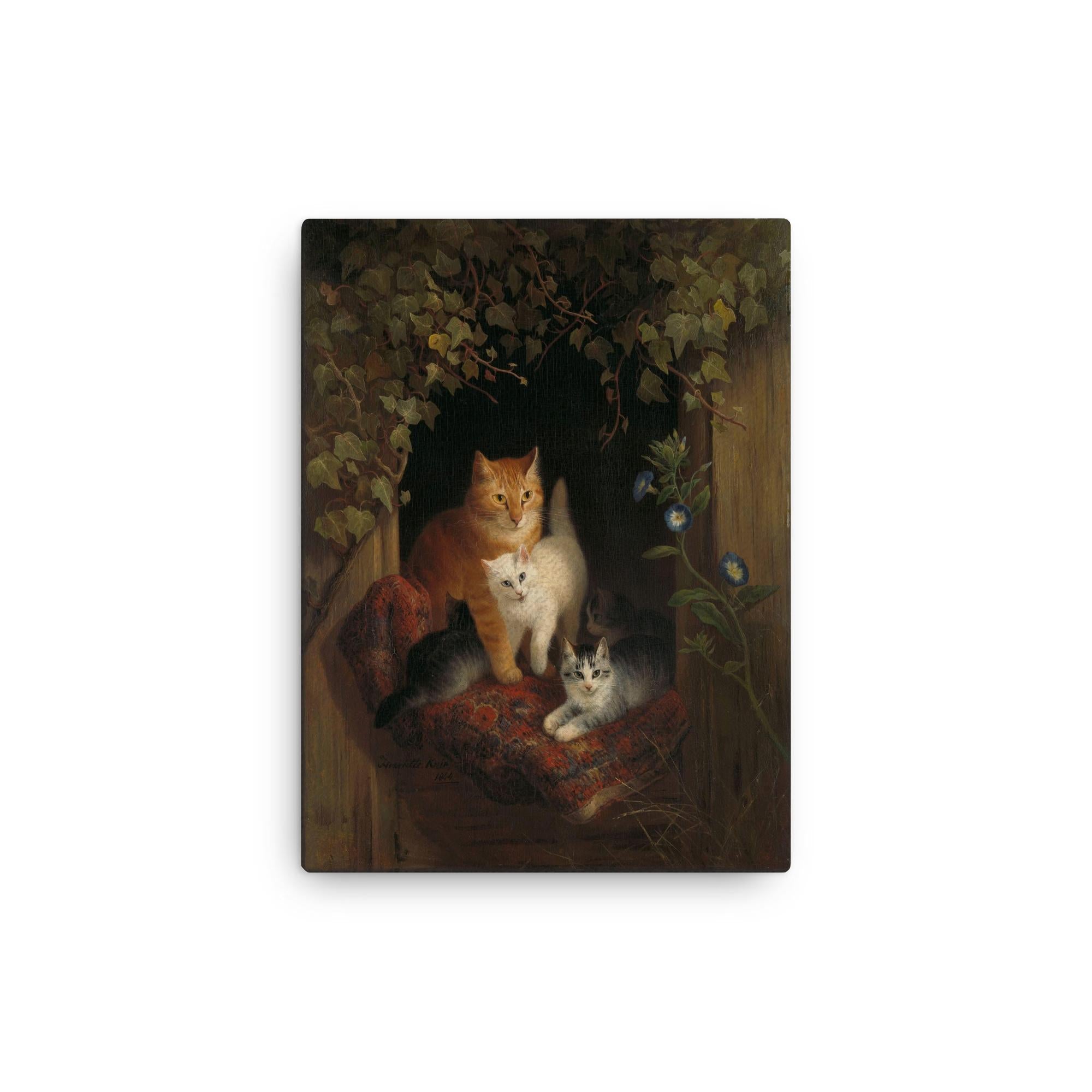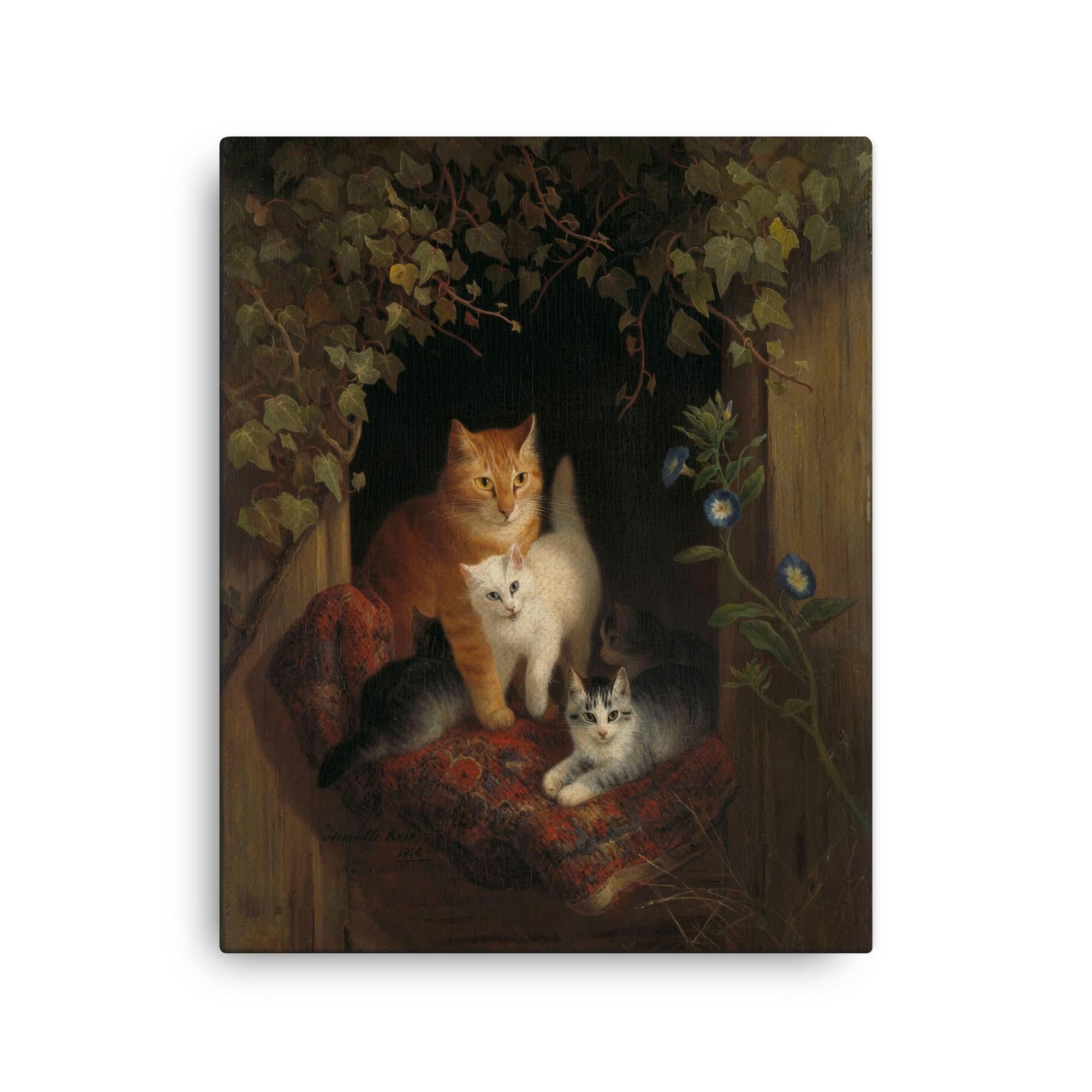 Cat with Kittens Canvas Print – Henriette Ronner-Knip 1844 Art Reproduction, Vintage Feline Wall Decor, Unique Gift for Cat Lovers
