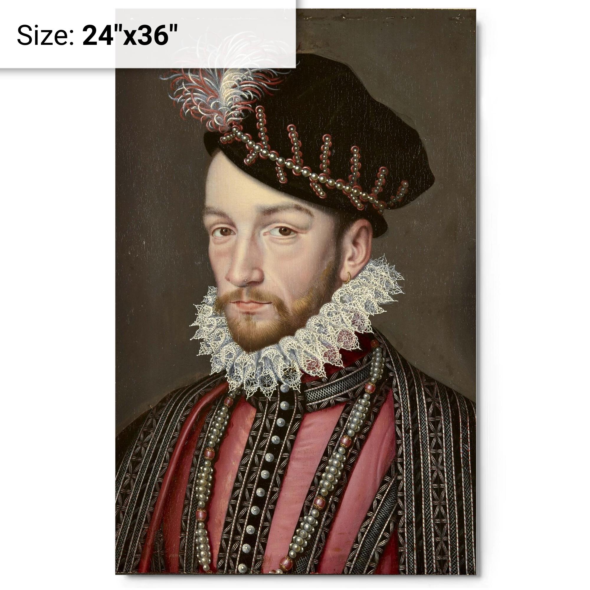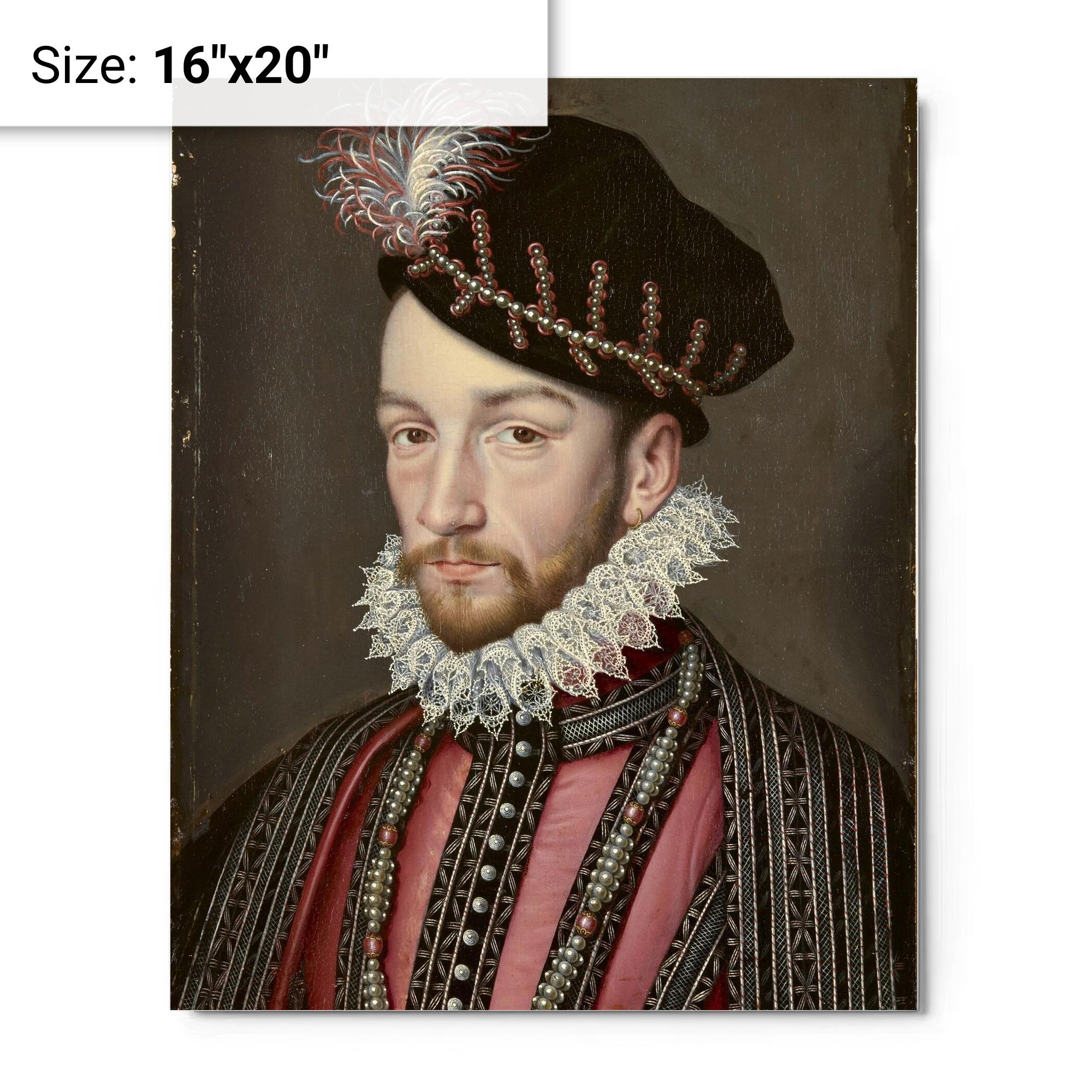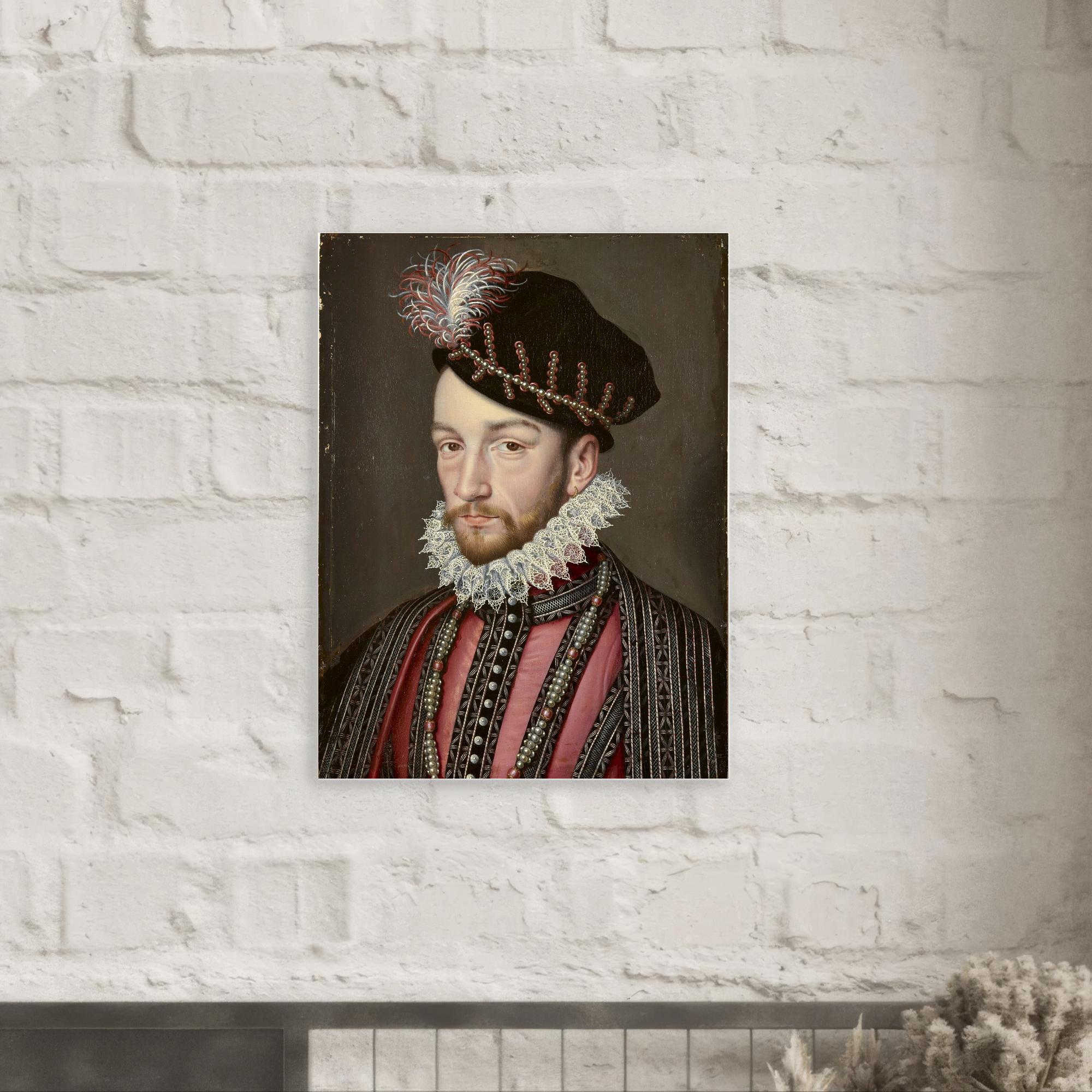 A metal print that brings Charles IX of France—whose brief, turbulent reign left an outsized mark on history—into the room as a quiet, unsettling reminder of power and consequence.