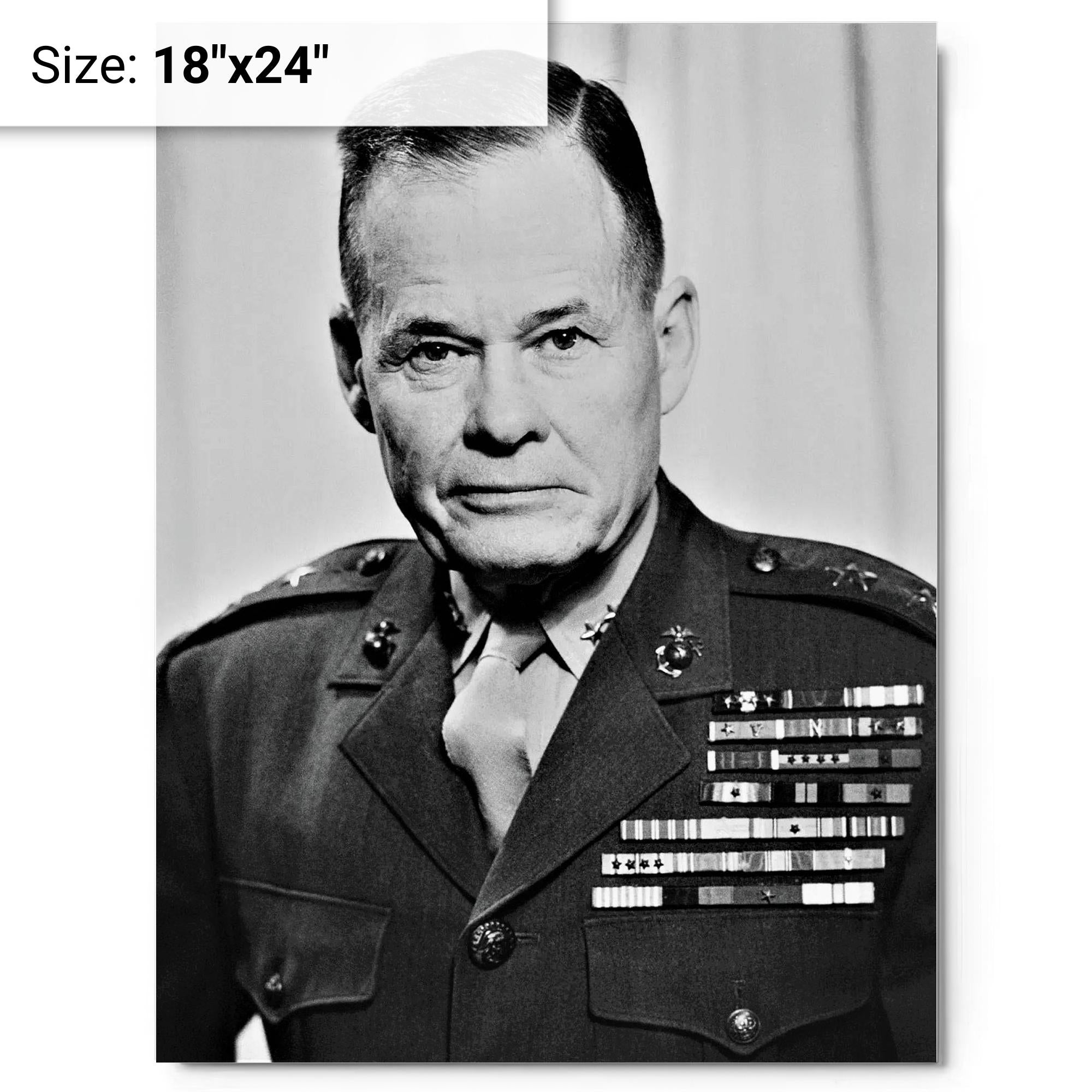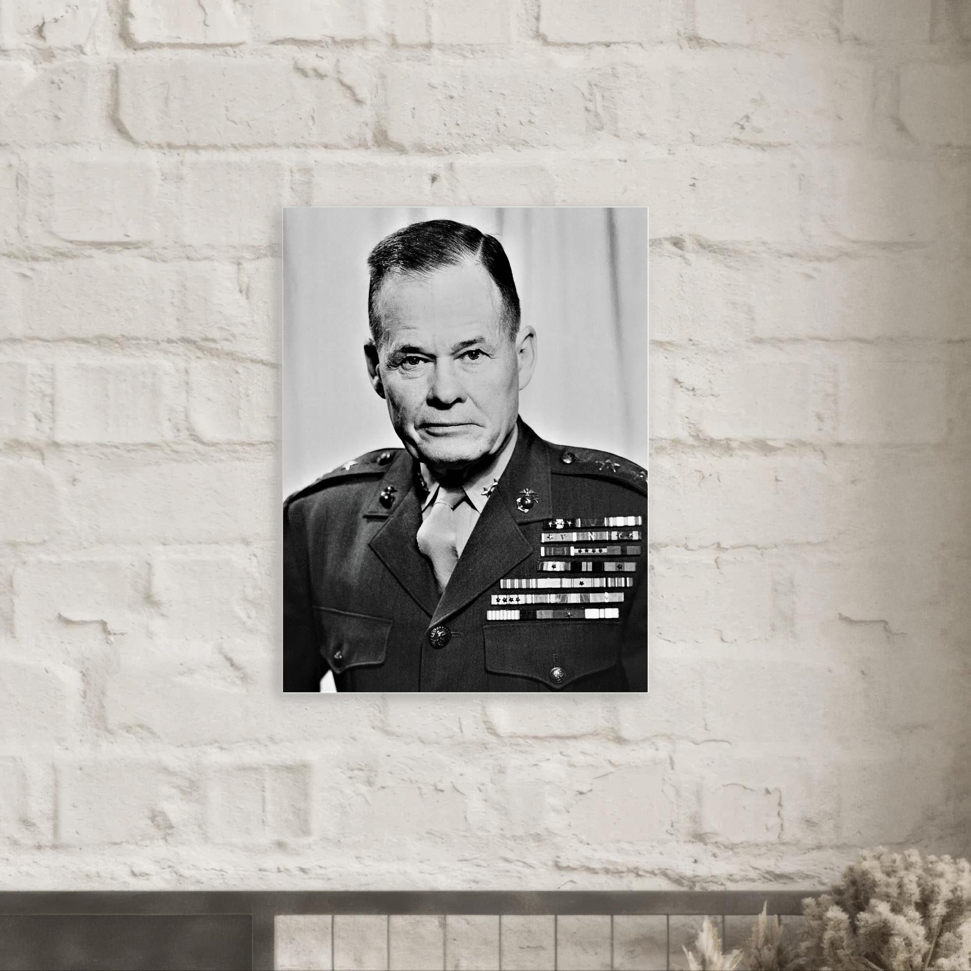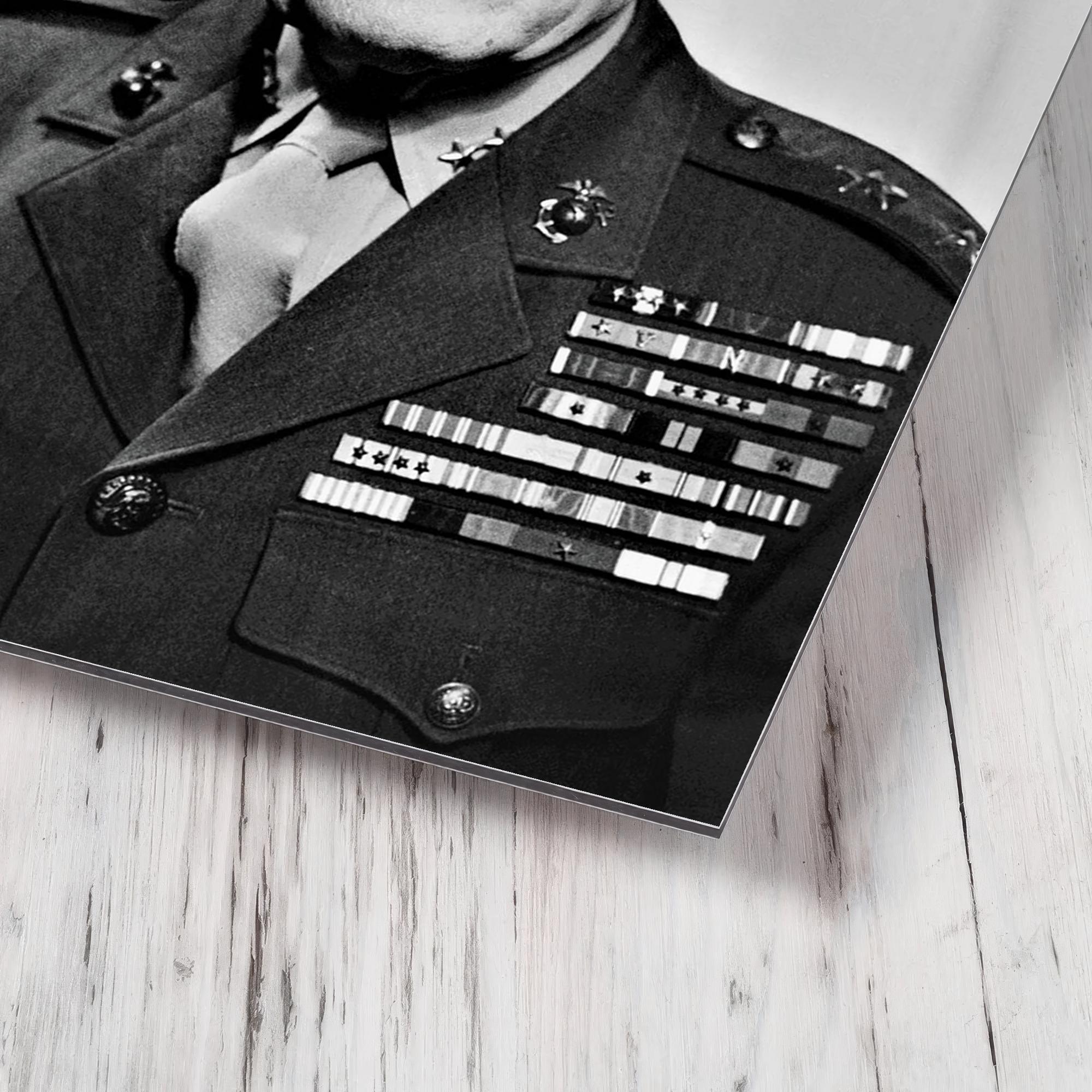 This metal print of Chesty Puller brings a quiet, commanding presence to a room — a simple reminder of grit, duty and leadership that feels lived-in rather than staged.