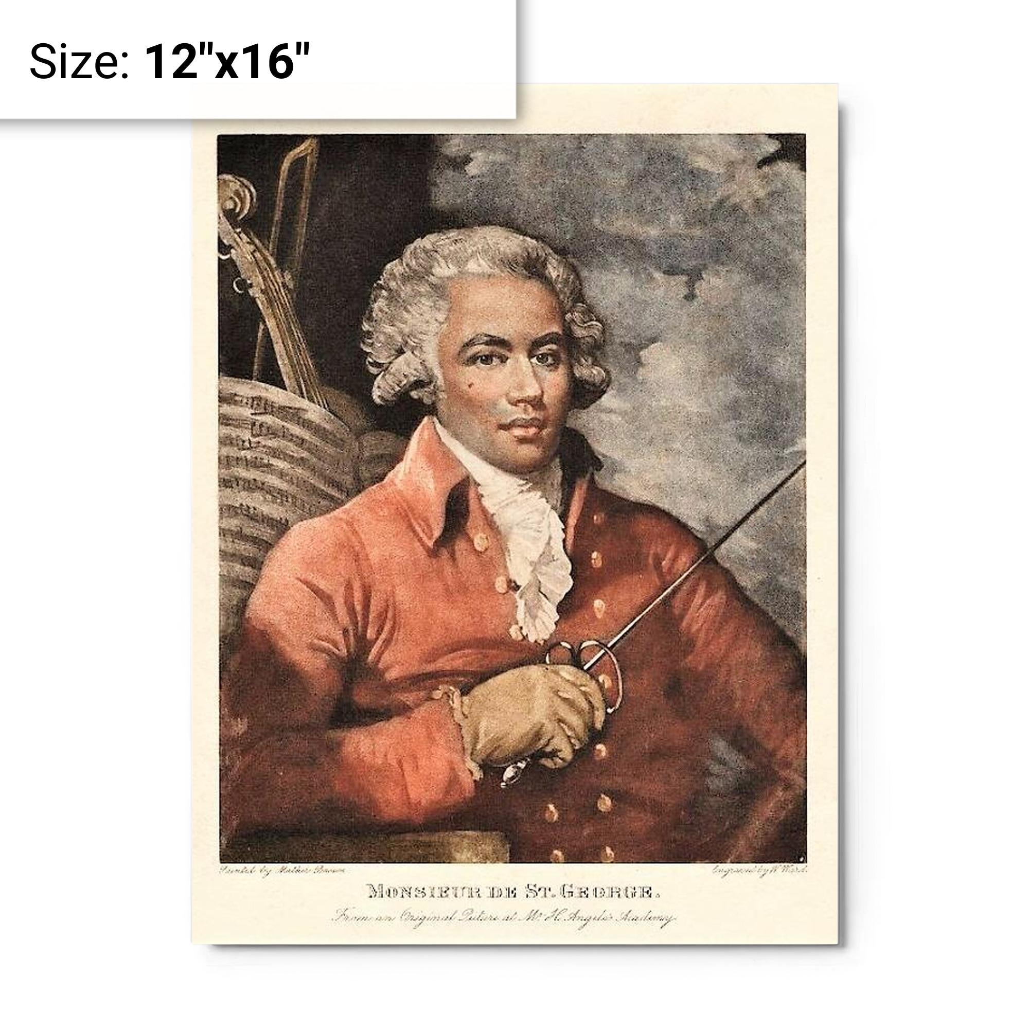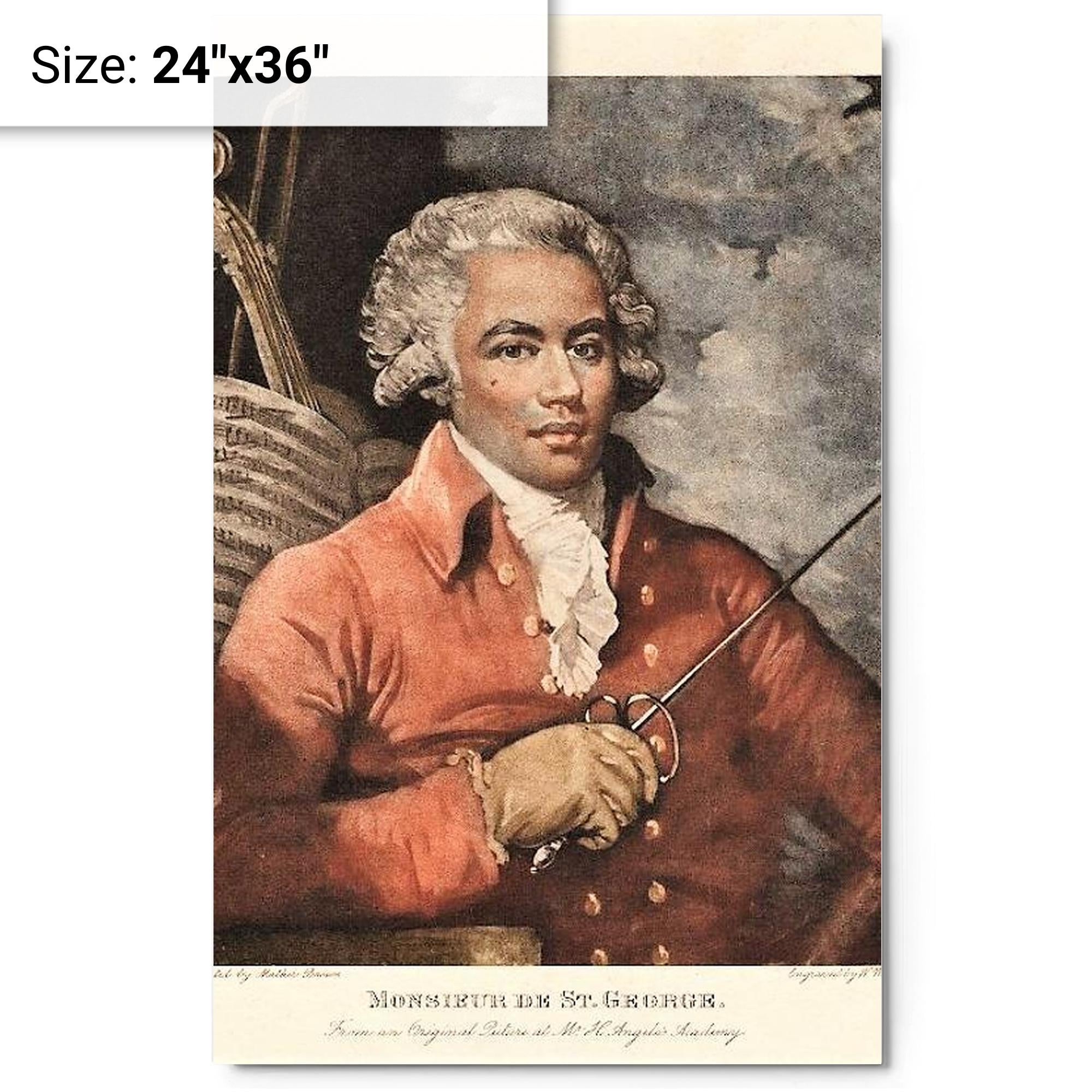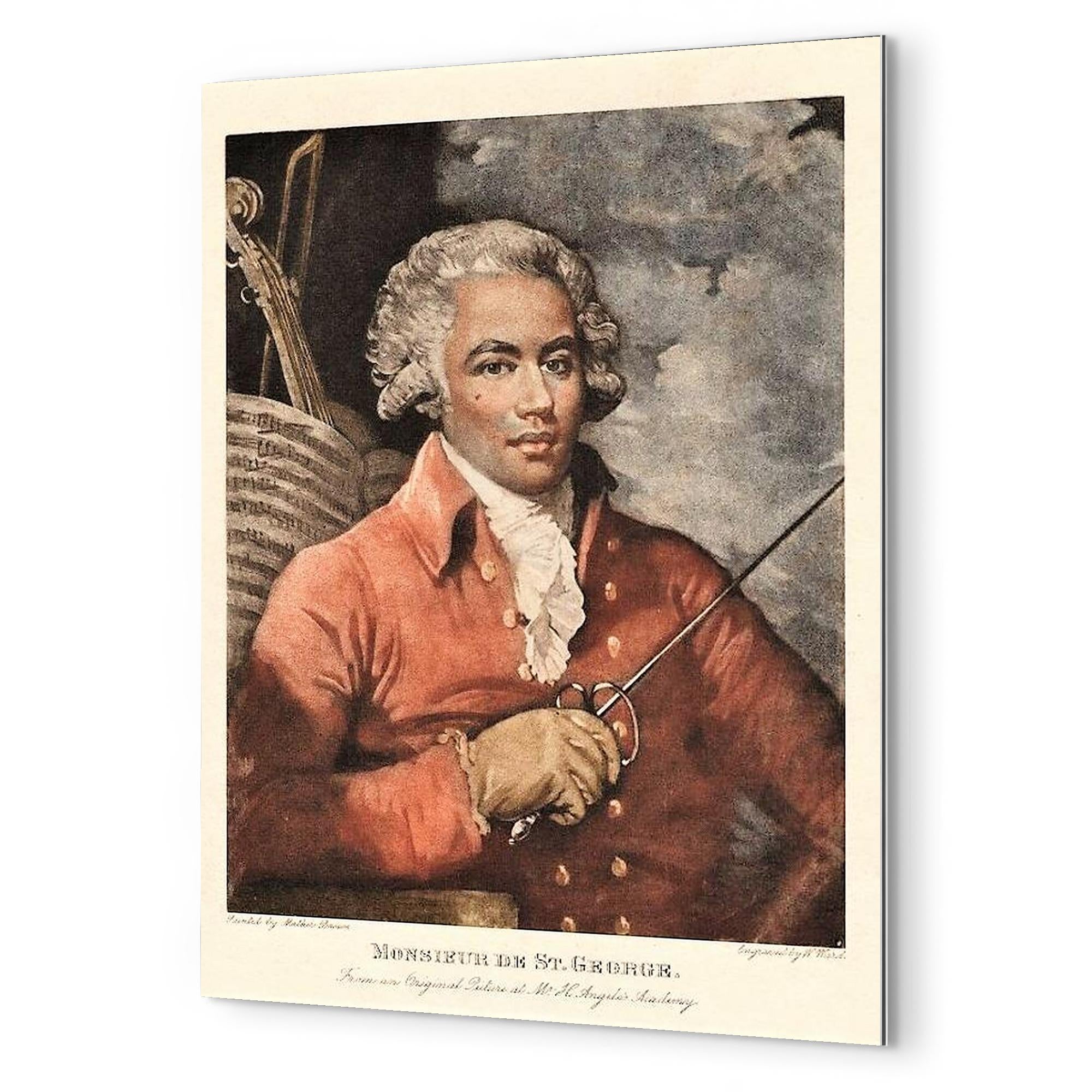 This metal print of Chevalier de Saint-Georges brings a singular face from history into the room—an image of skill, confidence and quiet defiance.