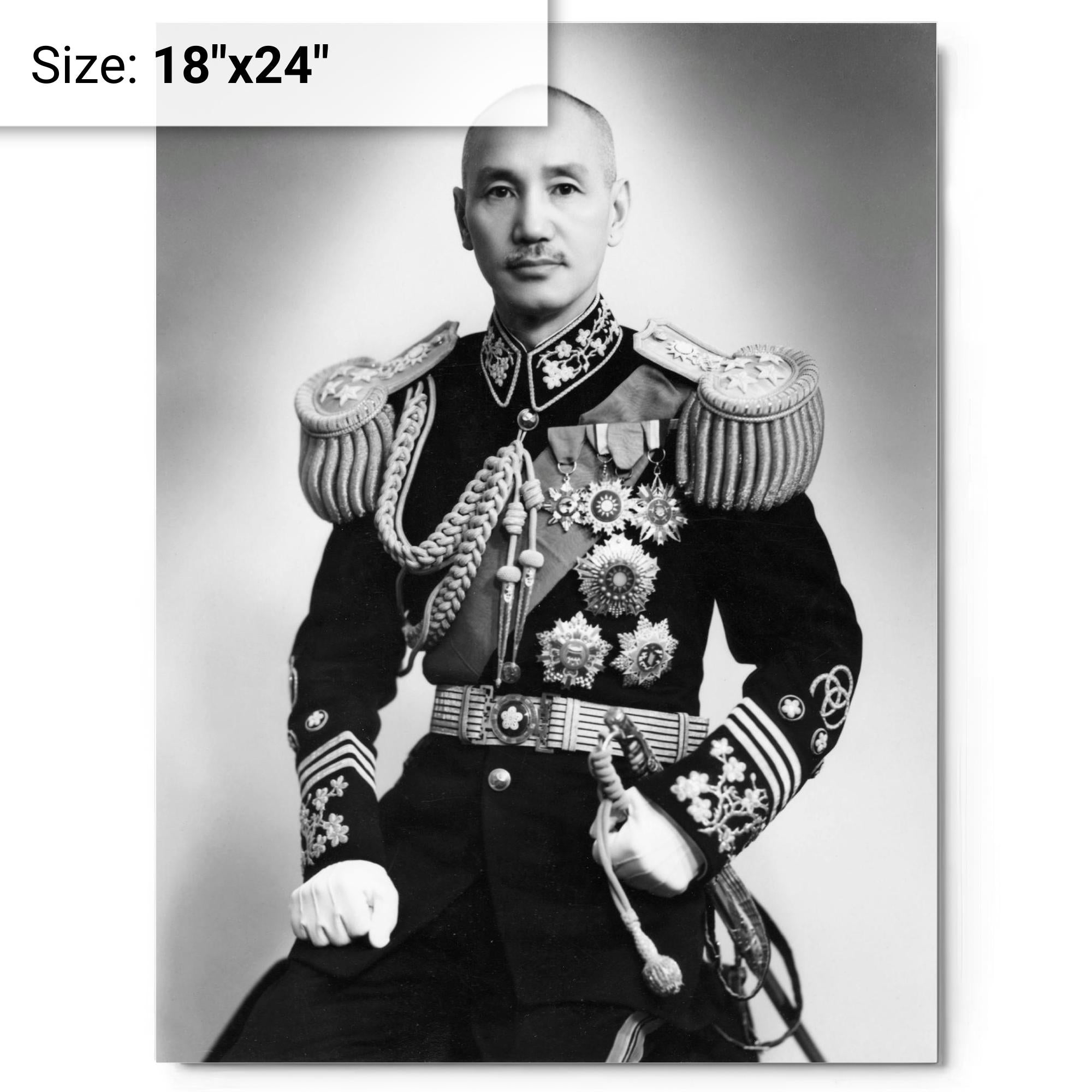 This metal print of Chiang Kai-shek makes a piece of 20th‑century history feel immediate and present.