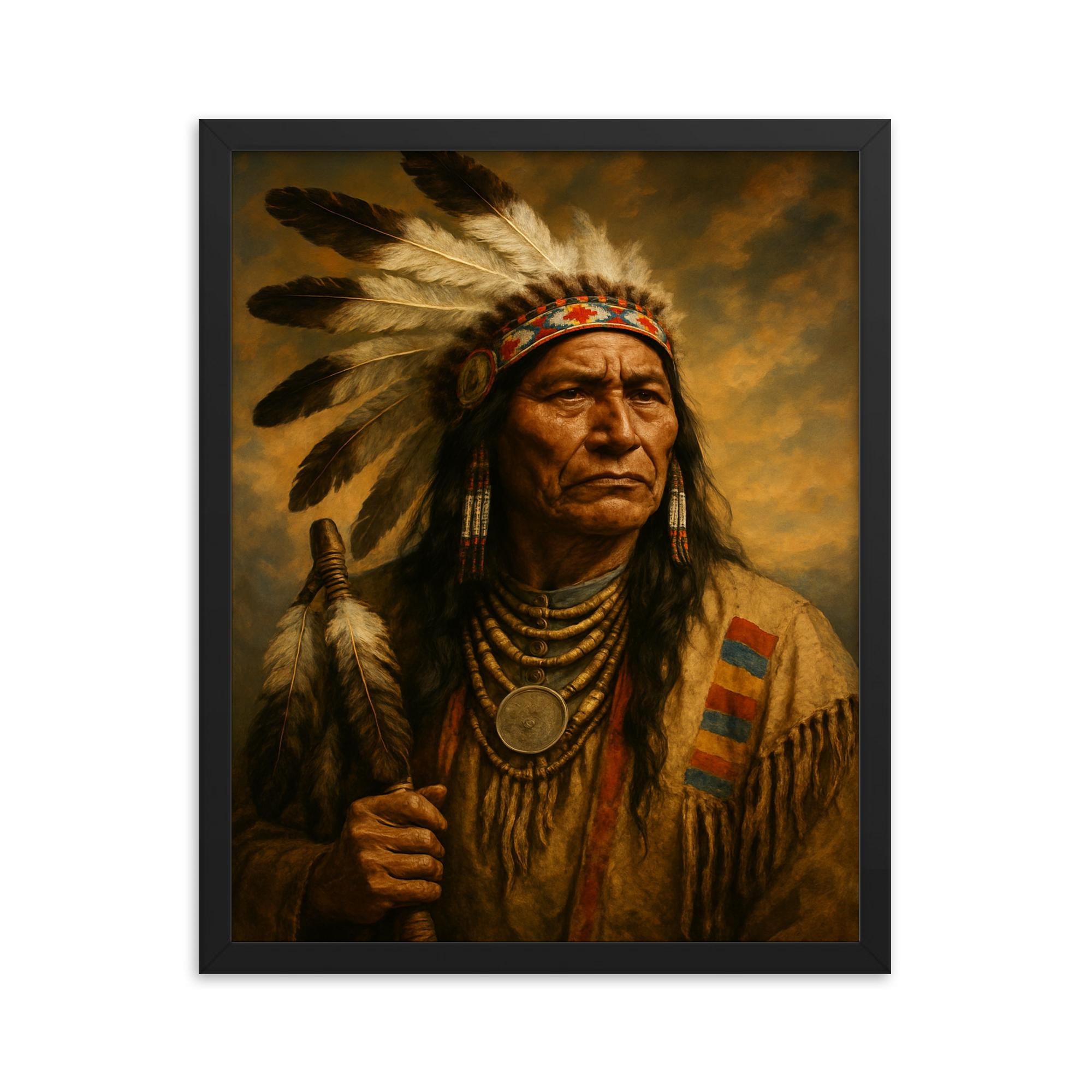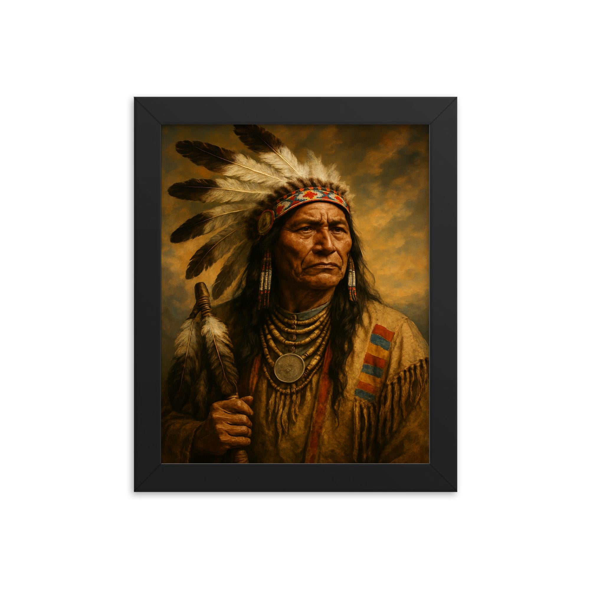 Transform your living space with the striking presence of the Chief Poundmaker framed print—an exceptional piece of wall art that combines cultural significance with impeccable craftsmanship.