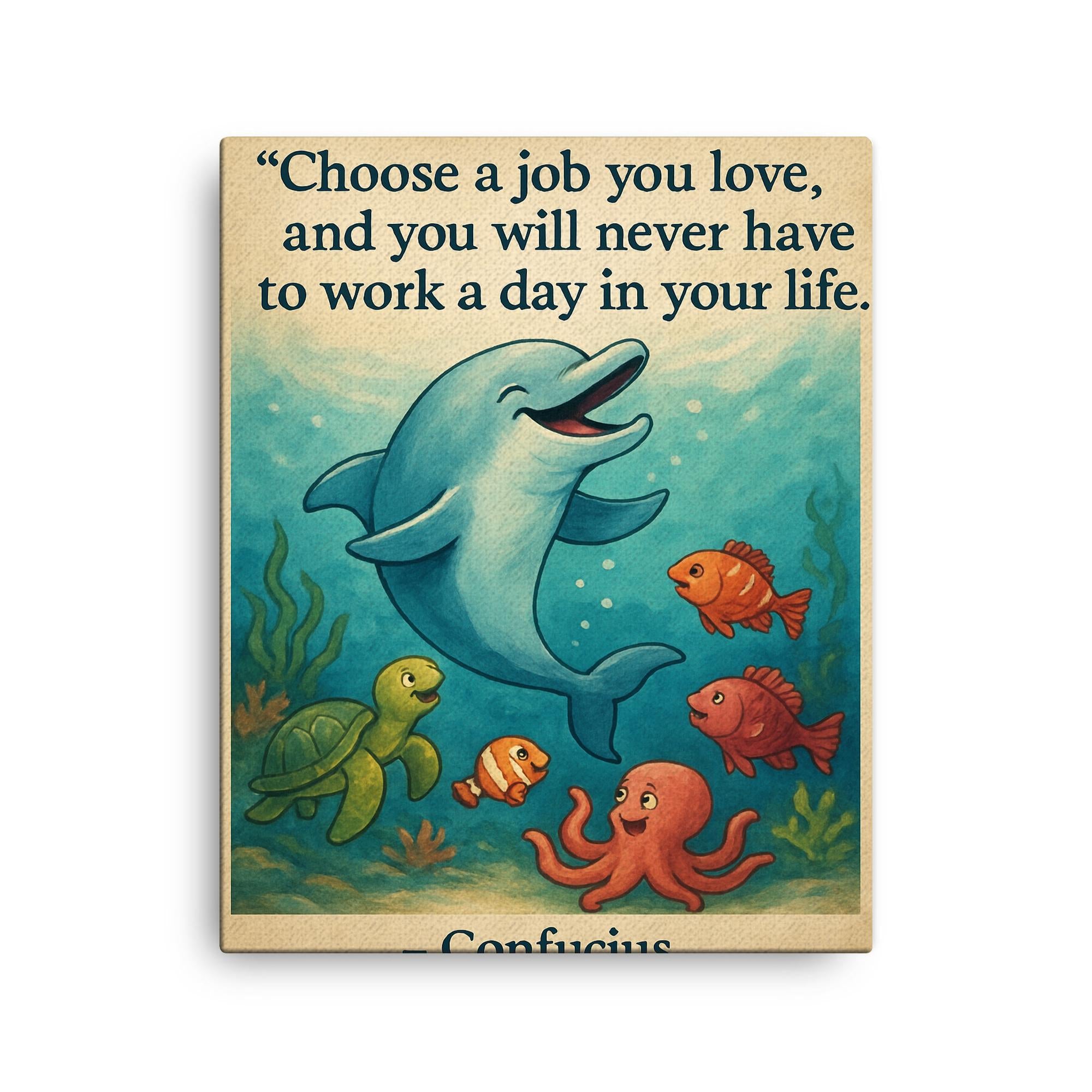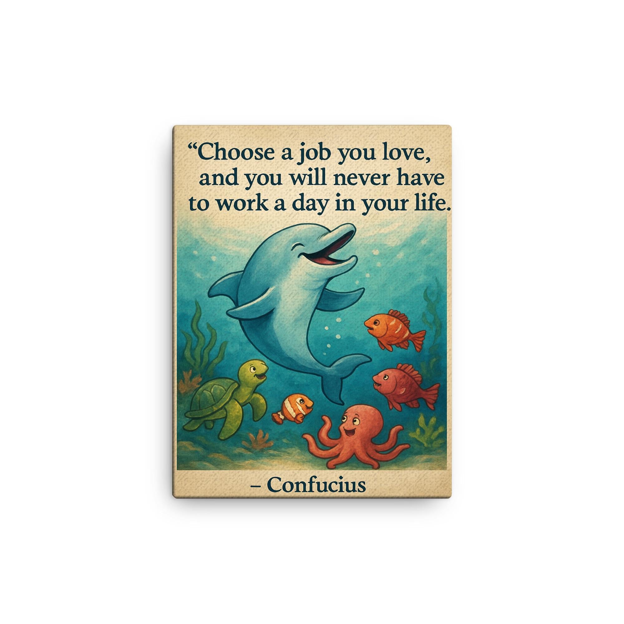 Choose a Job You Love Confucius Dolphin Canvas Print – Inspiring Wall Art, Motivational Swimming Lessons Decor for Home or Office