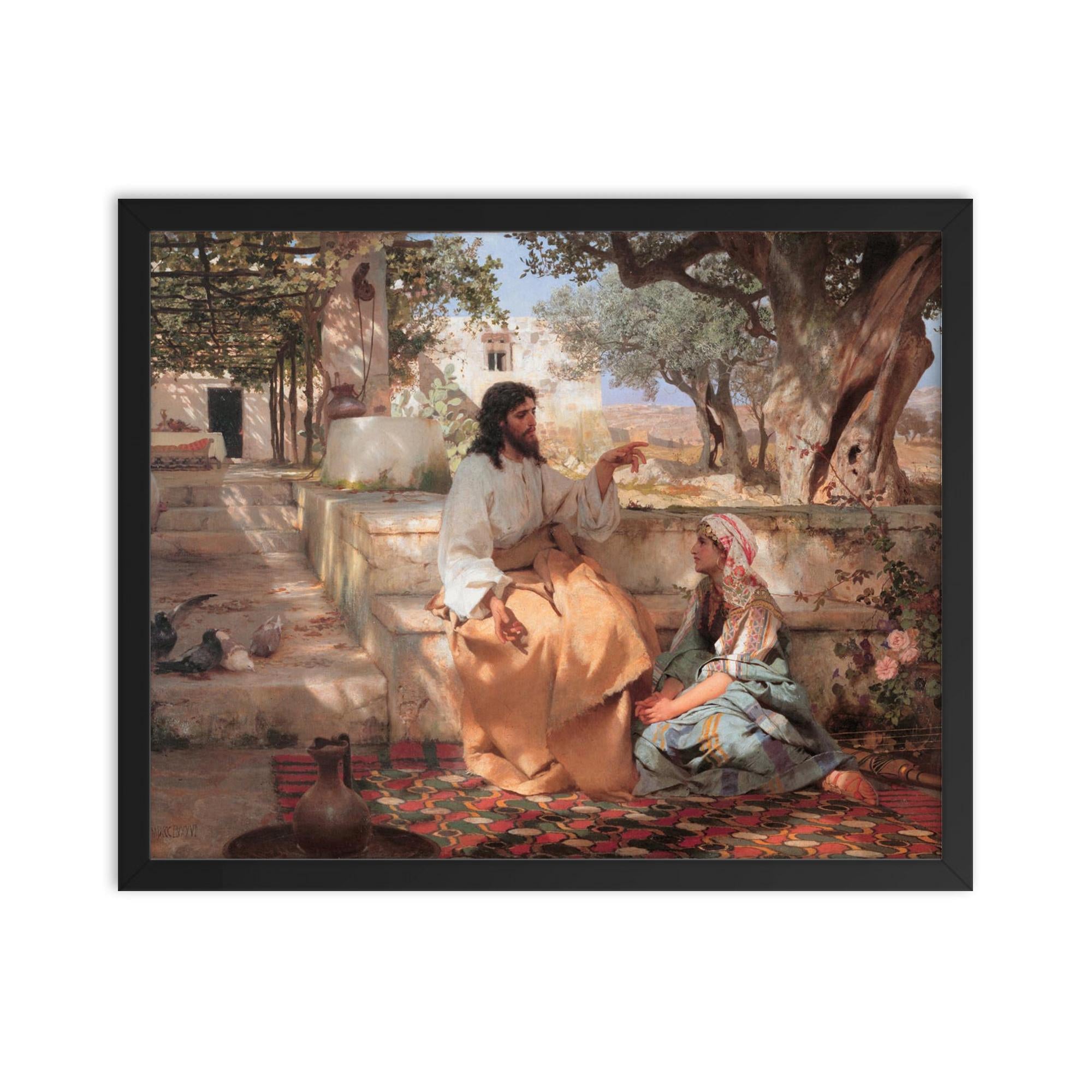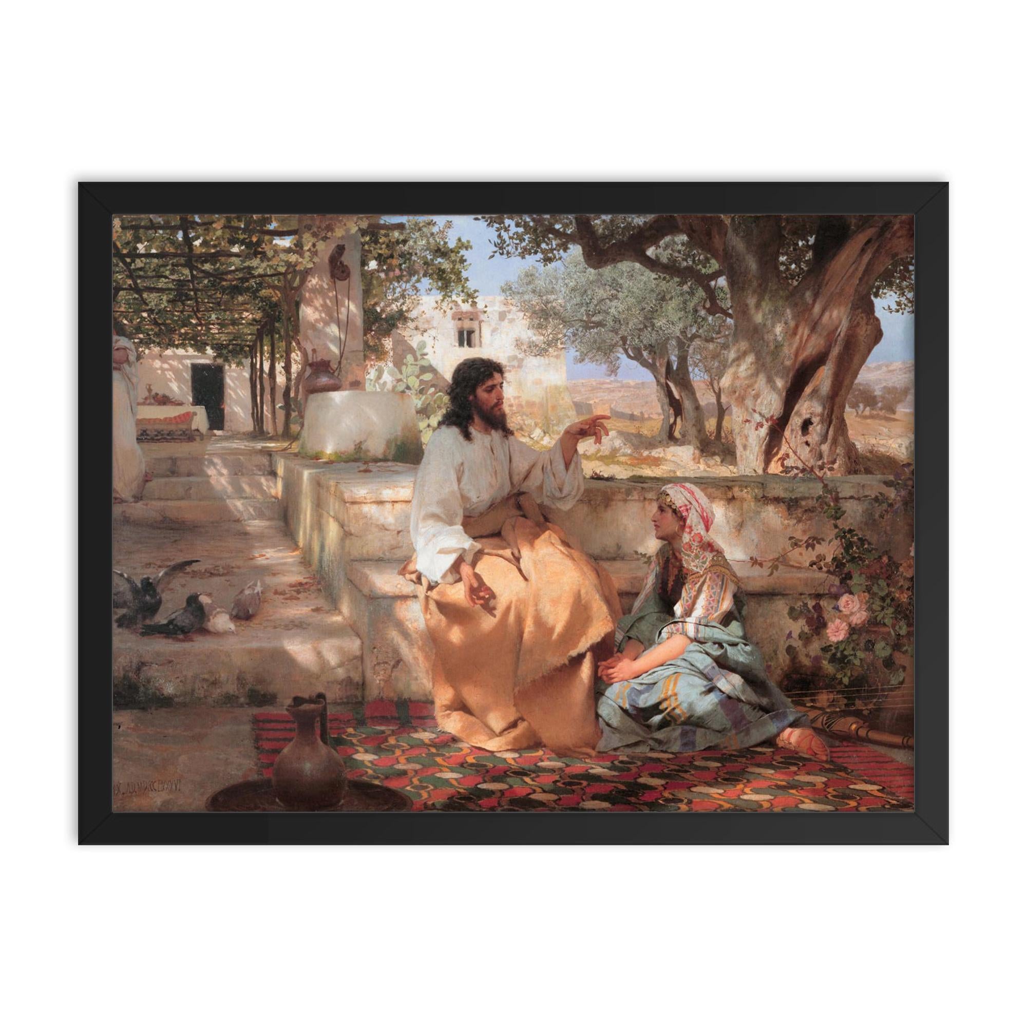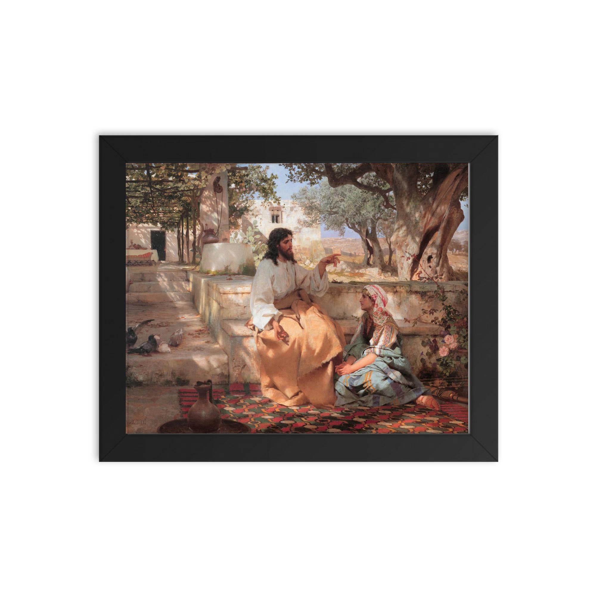 Transform your space with timeless beauty and profound meaning—discover the framed print of "Christ in the Home of Martha and Mary" by Genrikh Semiradsky, 1886.