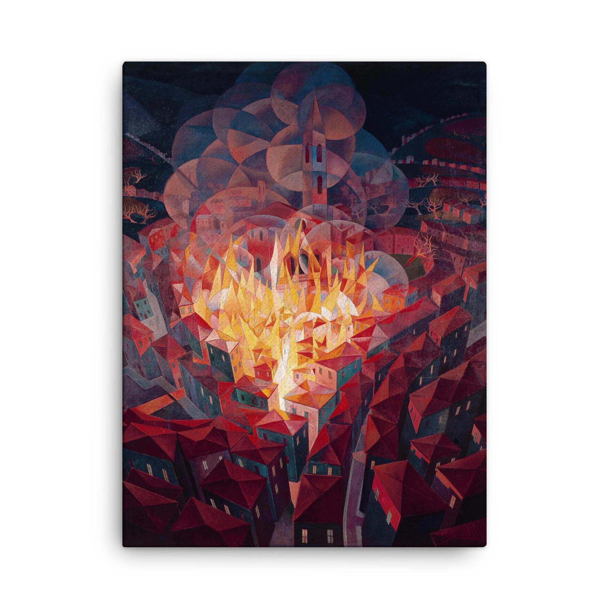 City on Fire Canvas Print by Gerardo Dottori 1926 – Futurist Italian Art Wall Decor, Vibrant Urban Landscape, Museum Quality Reproduction