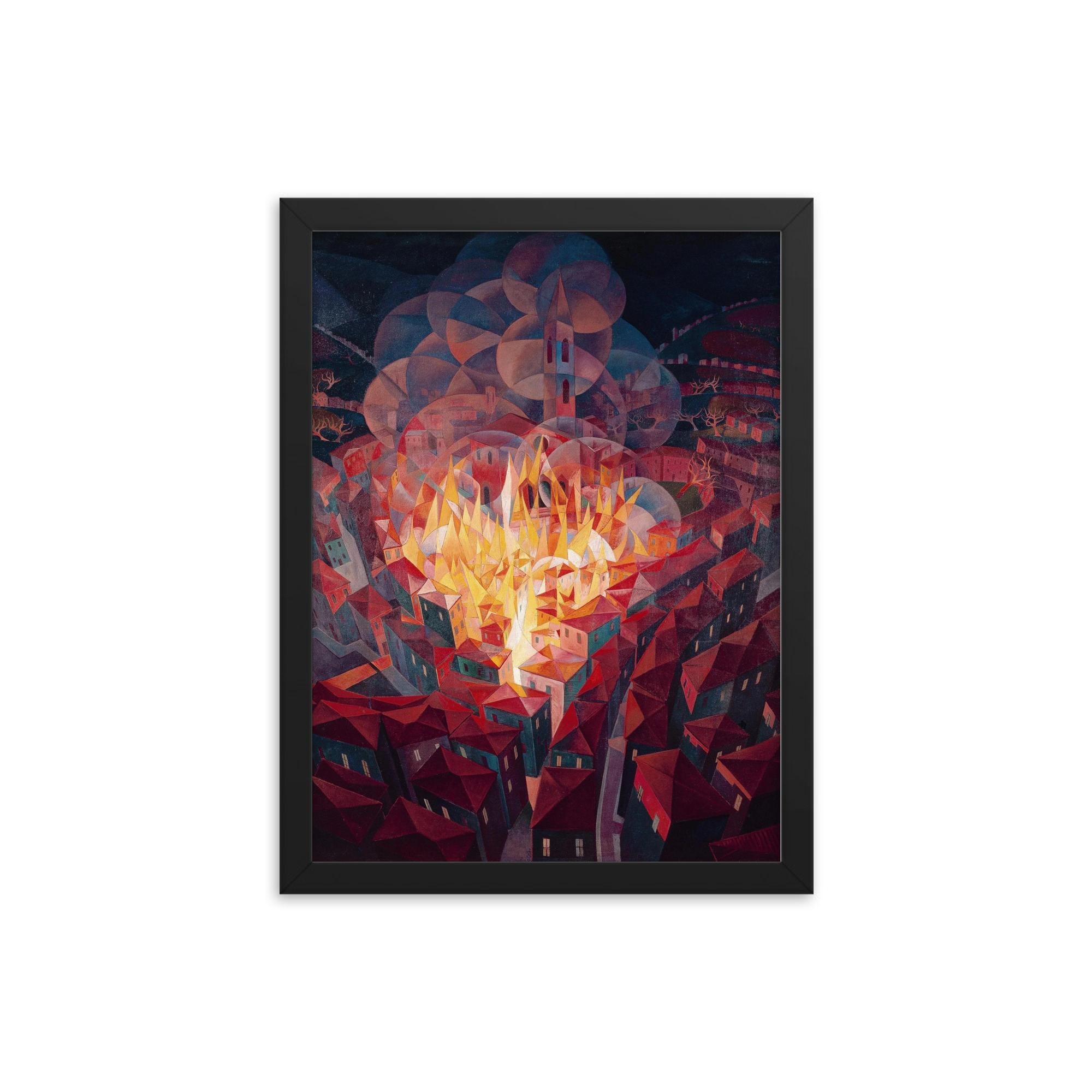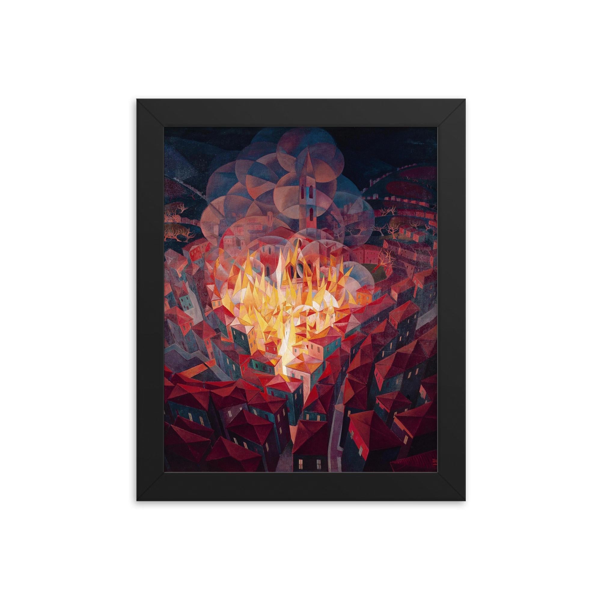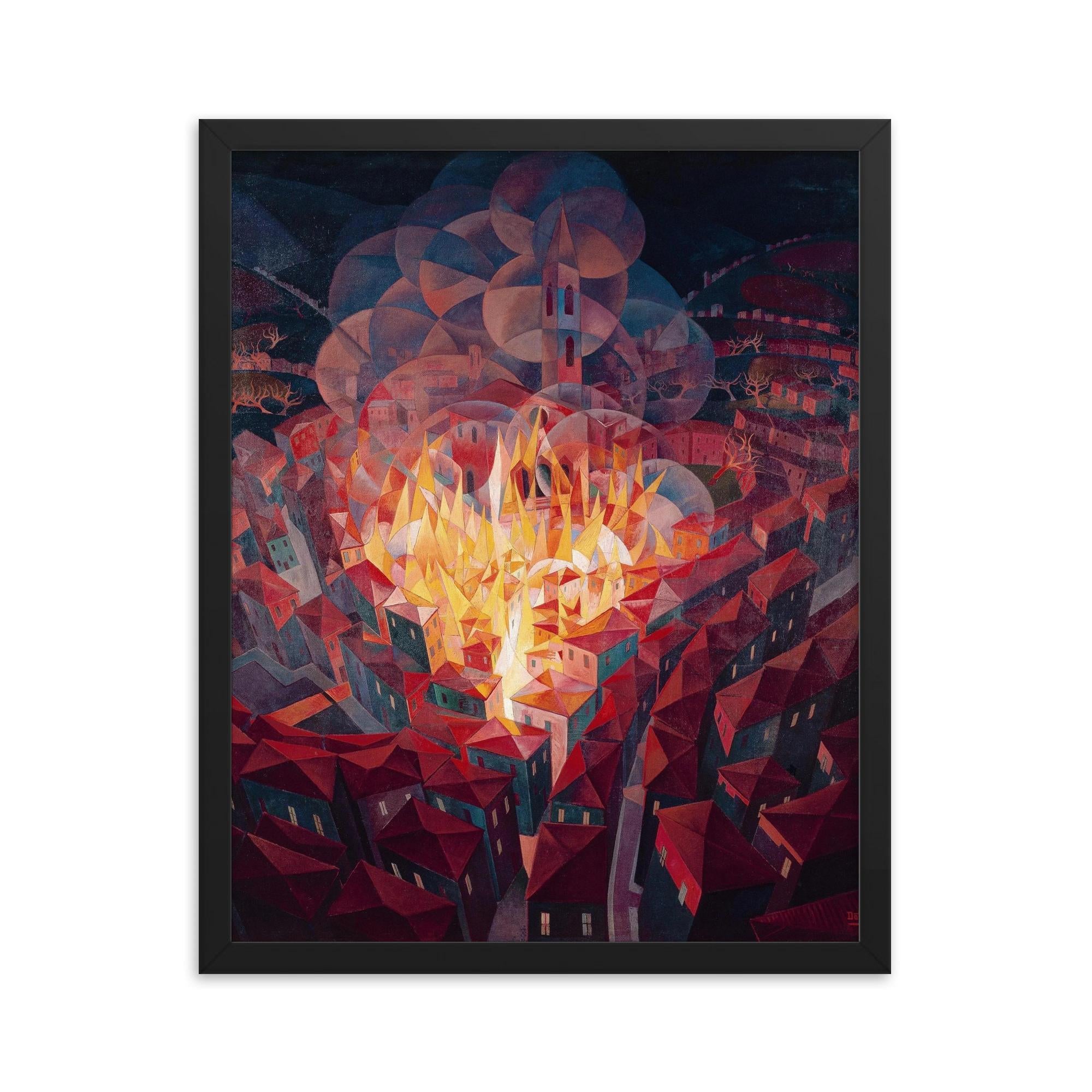 City on Fire by Gerardo Dottori 1926 Framed Print – Futurist Italian Art Wall Decor, Museum-Quality Modern Cityscape, Ready to Hang