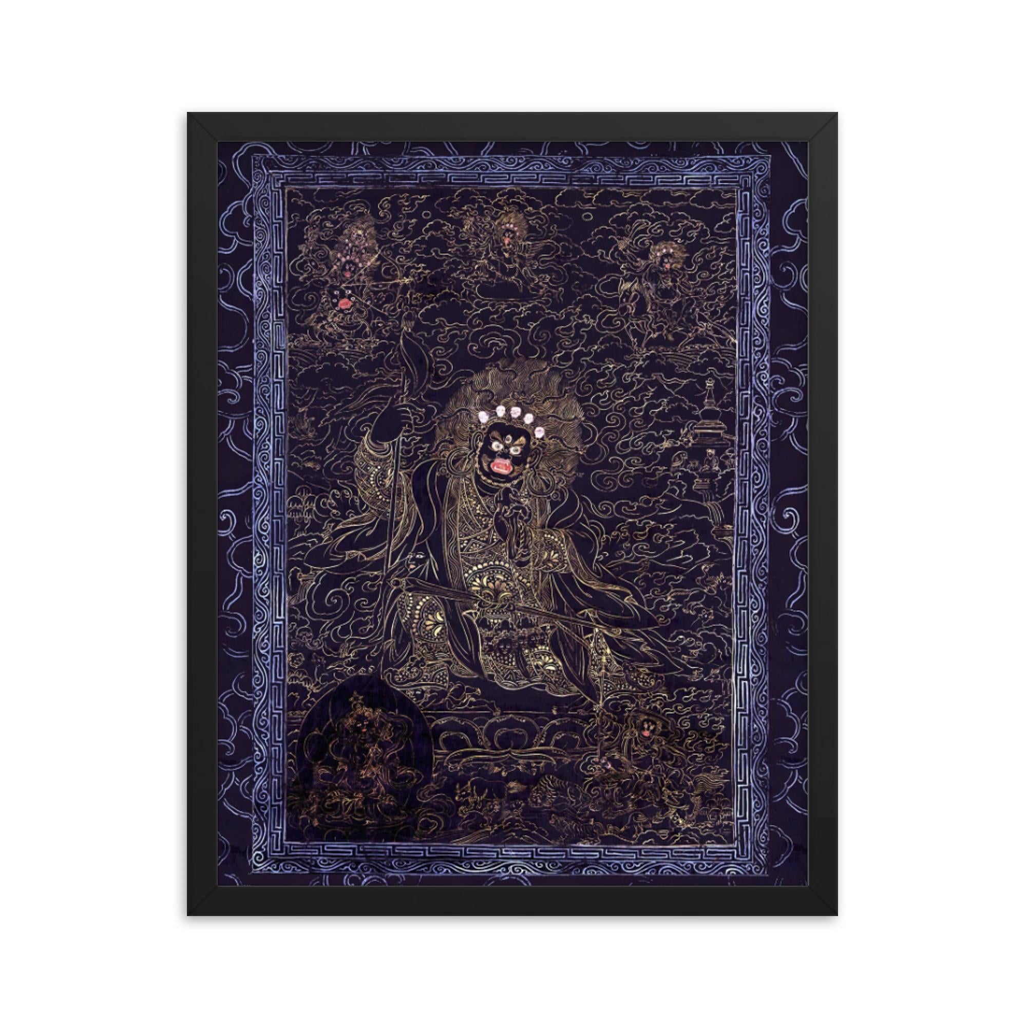 Framed Cobalt & Gold Mahakala Wall Art – Tibetan Buddhist Avalokiteshvara Compassion Bodhisattva Print
