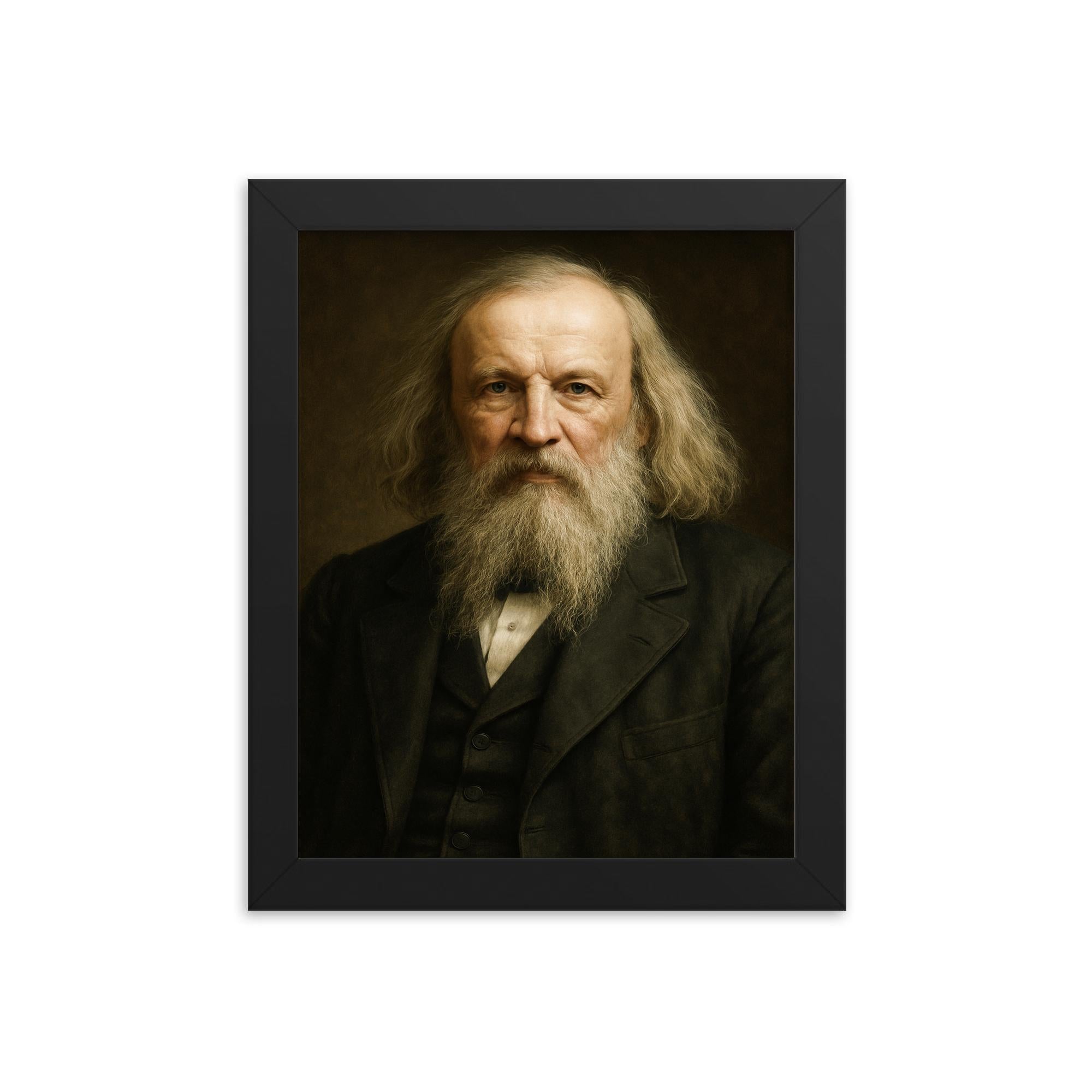 Elevate your space with timeless scientific inspiration through this exquisitely framed print of Dimitri Mendeleev’s portrait.