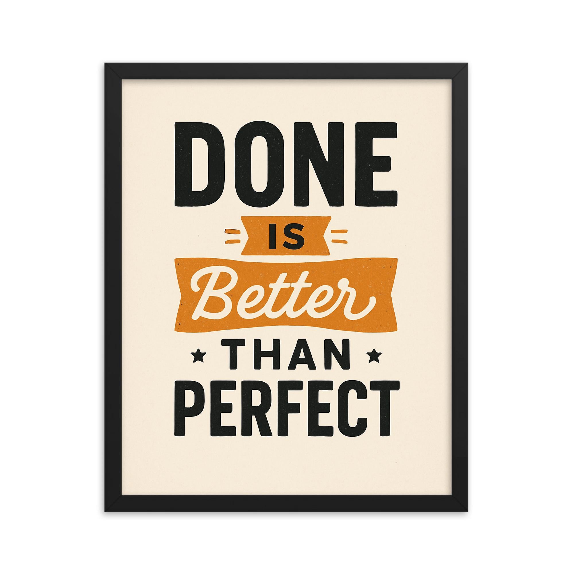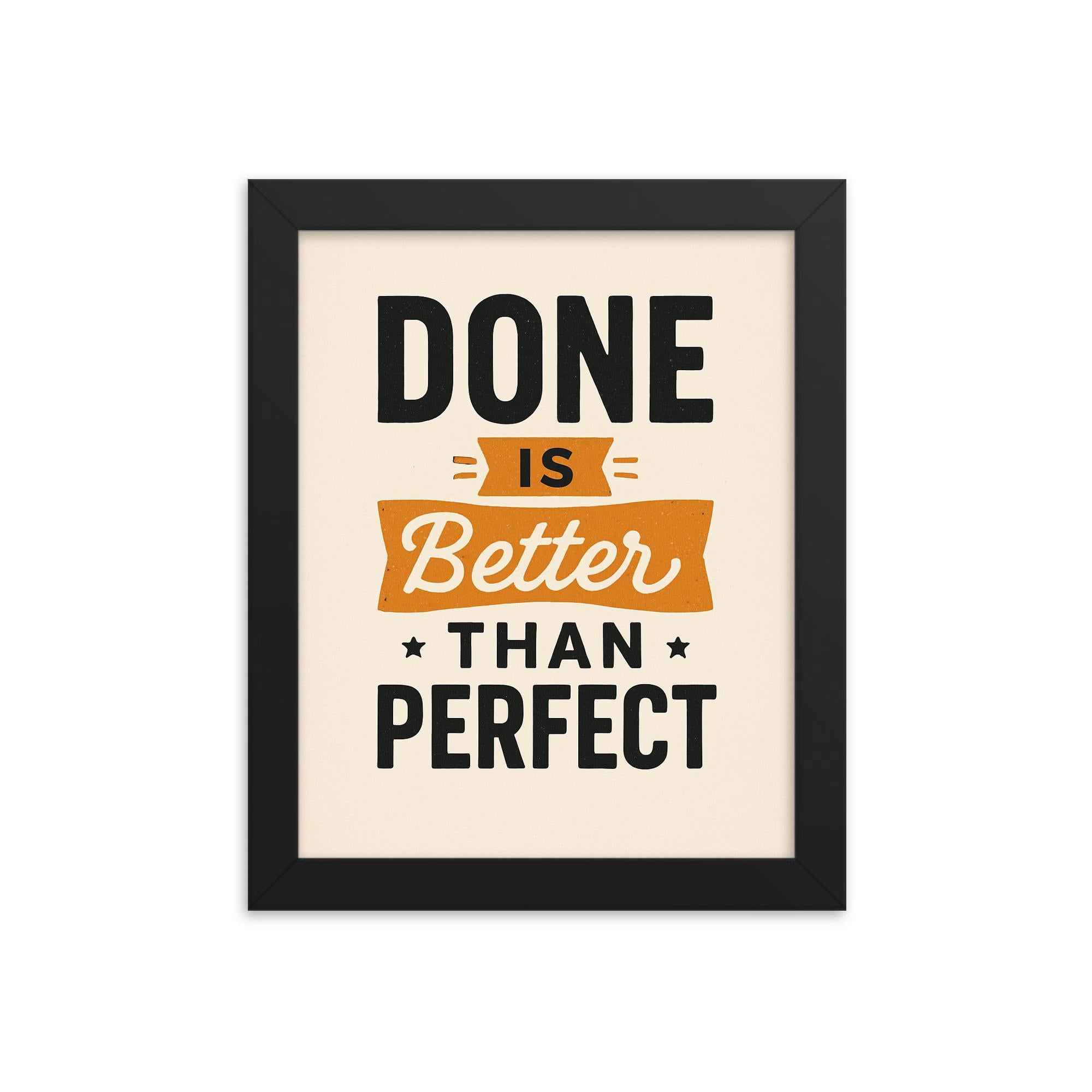 Add this framed "Done is better than perfect" wall art to your cart today and start making every day count.