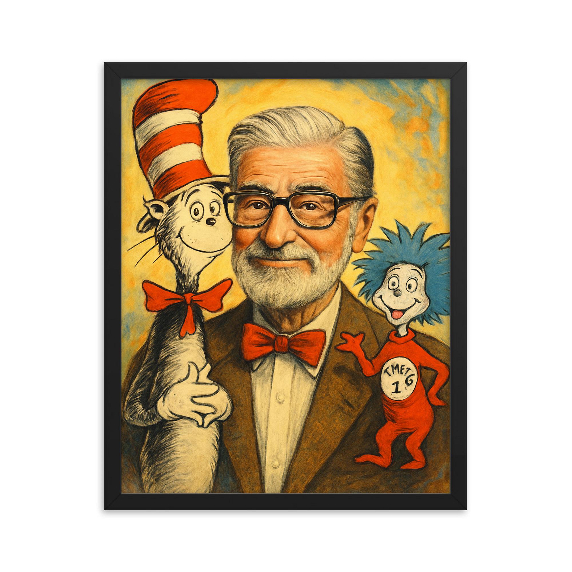 Celebrate whimsy and imagination with this stunning framed print of Dr. Seuss—Theodor Seuss Geisel—an iconic tribute to one of literature’s most beloved creators.