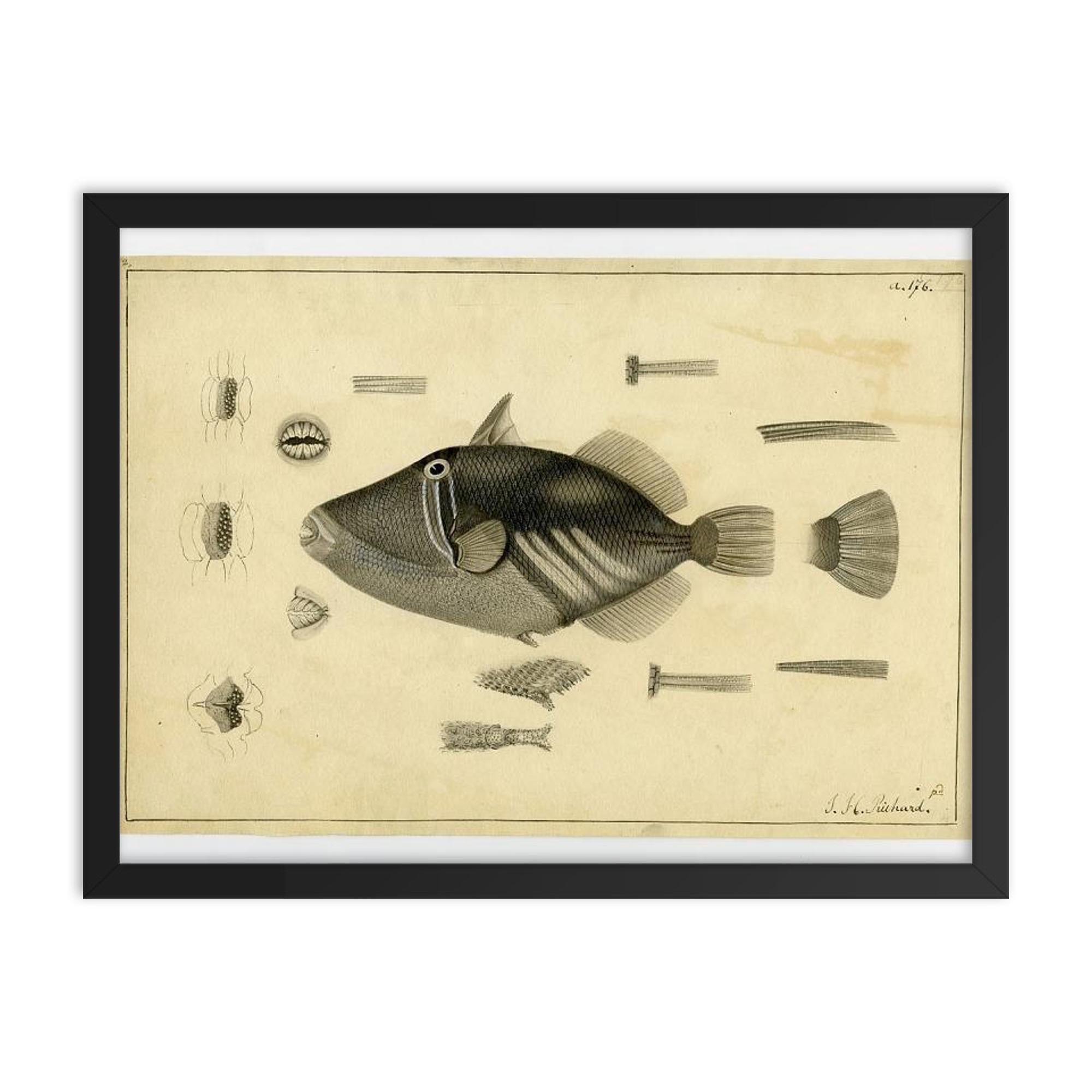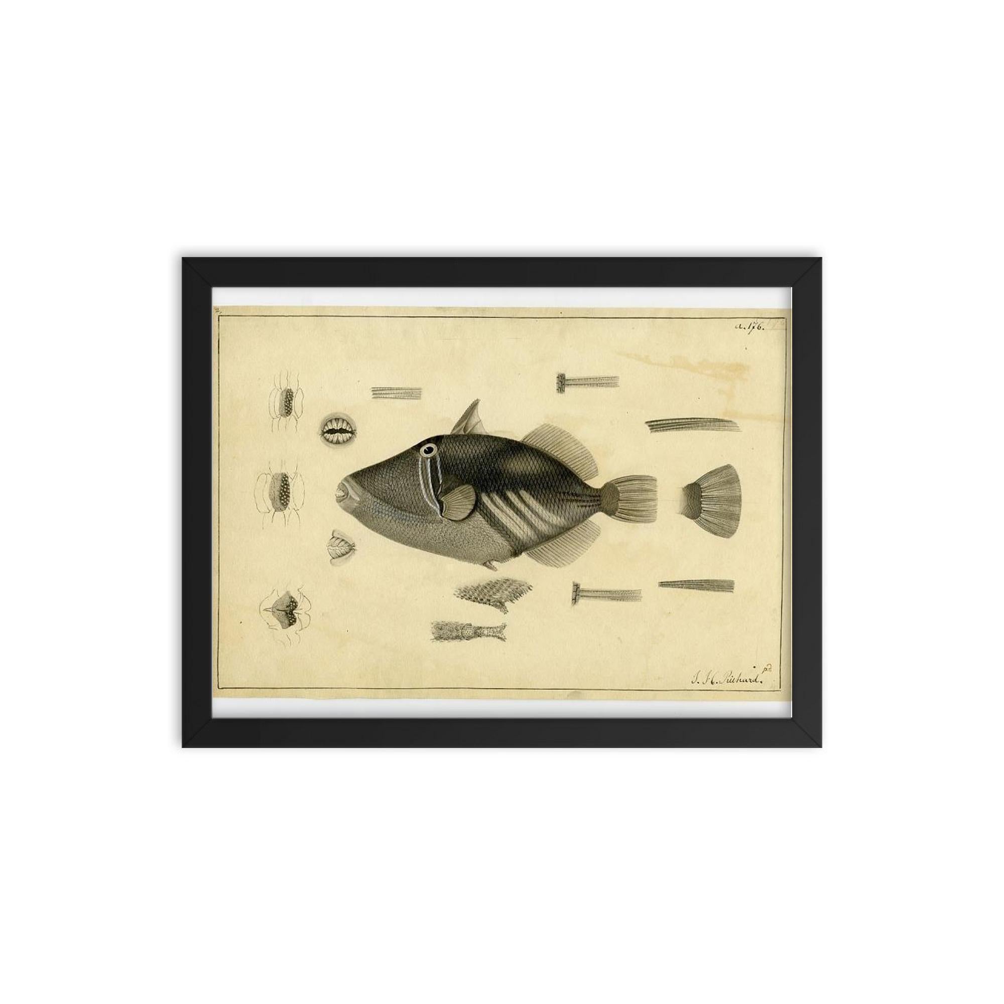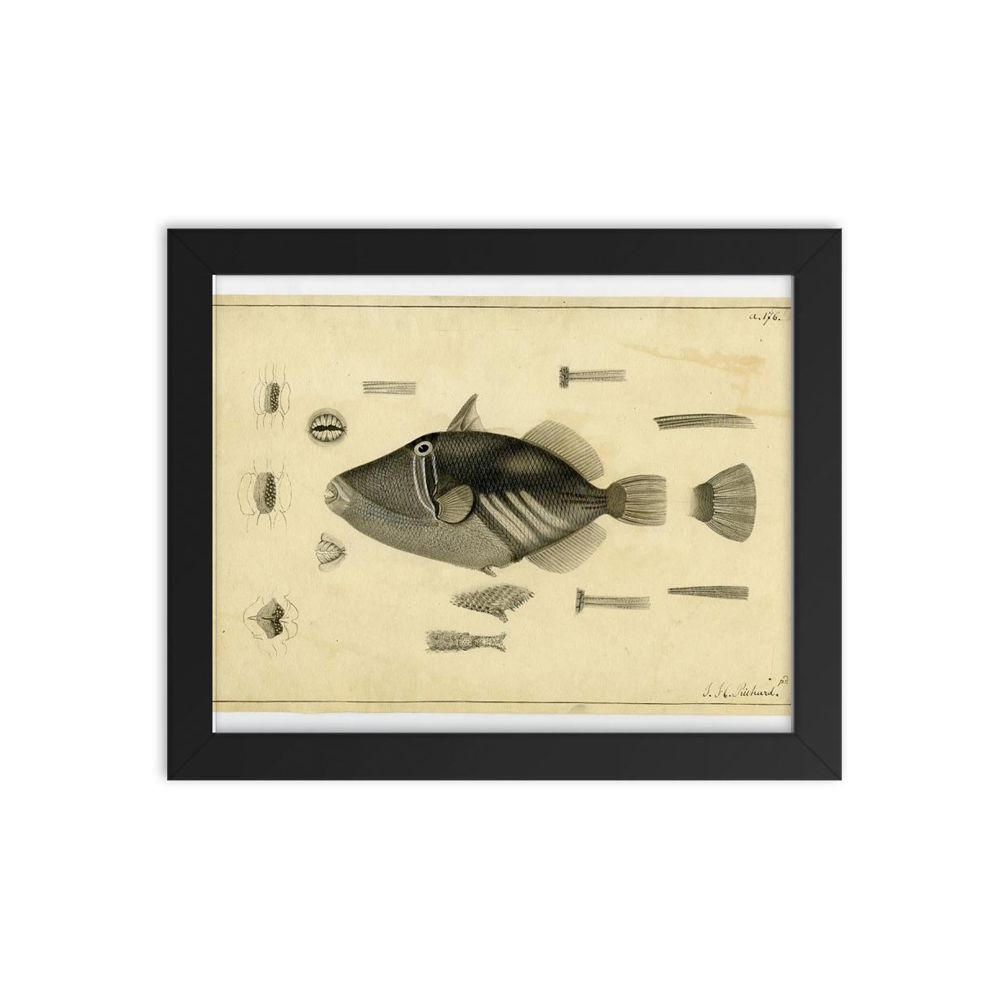 Bring history and artistry together on your wall with this exclusive framed print of *Drawing of a Balistoid by John Richard from the United States Exploring Expedition, 1838-1842.*