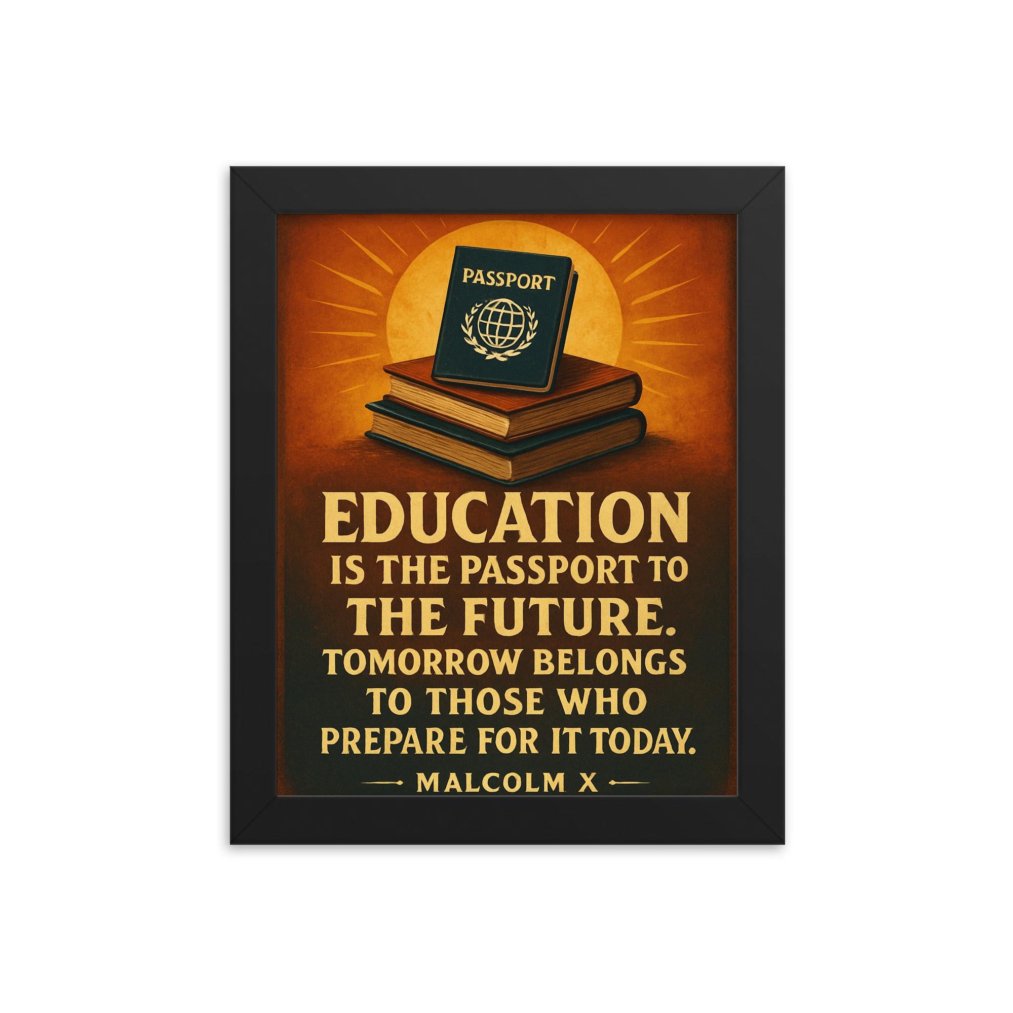 Malcolm X Education Is the Passport to the Future Framed Motivational Wall Art Print for Inspiring Home or Office Decor