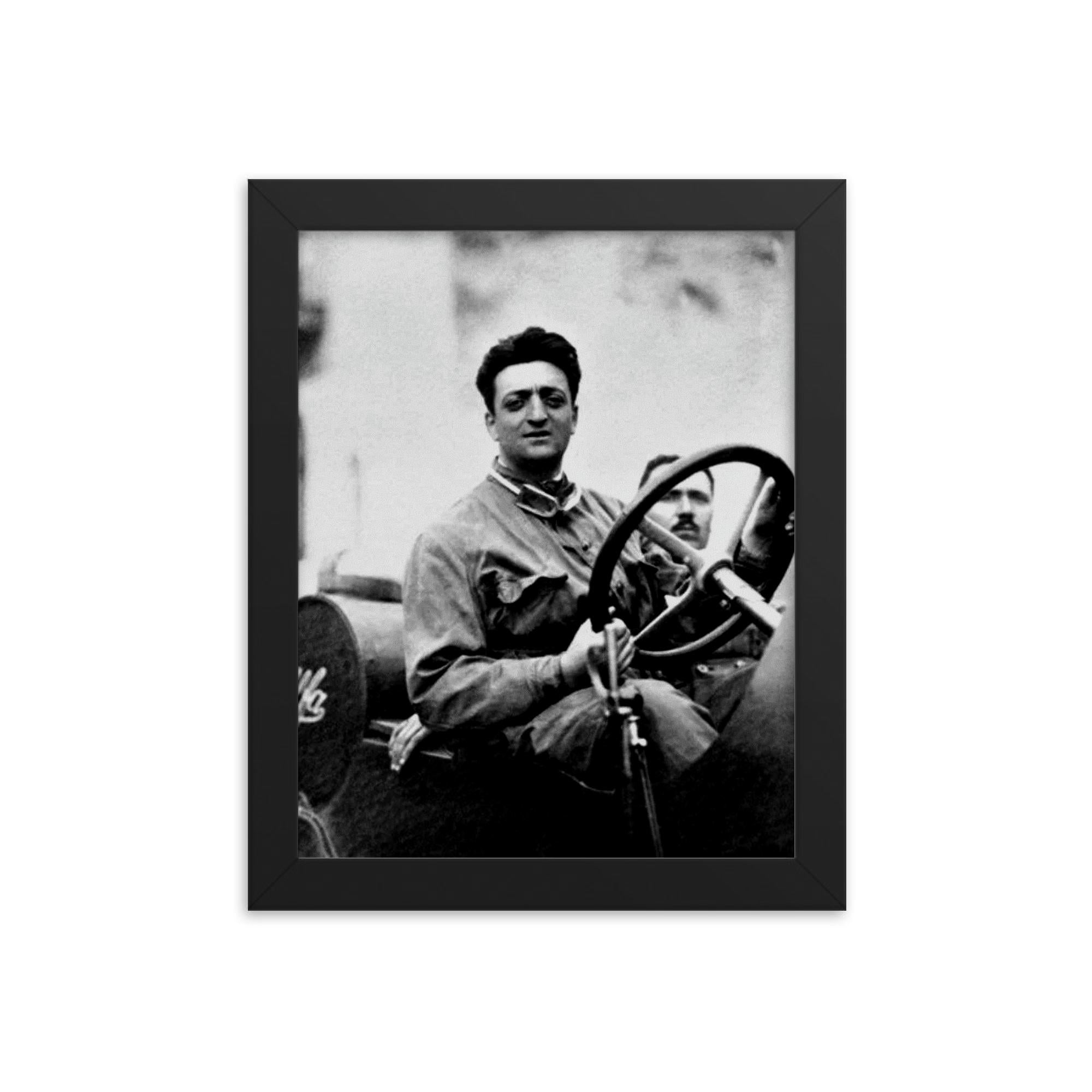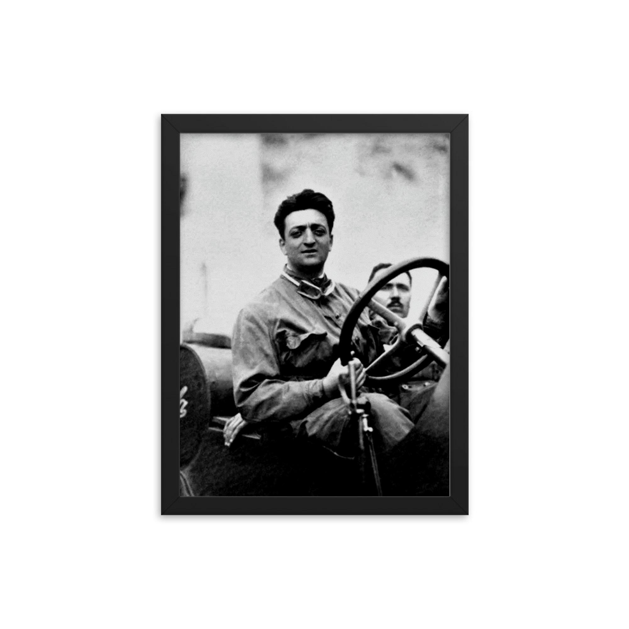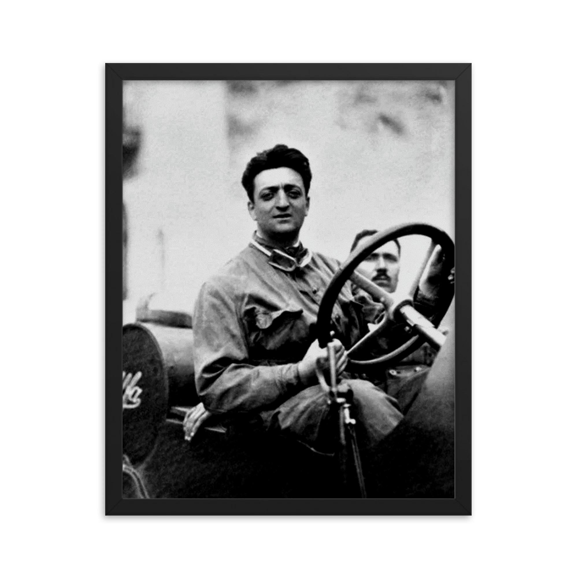Rev up your space with elegance and history through this stunning framed print of Enzo Ferrari. Perfect for automotive enthusiasts and admirers of innovation, this piece captures the spirit of a visionary icon, adding a timeless touch of sophistication to any room. A tribute to passion and performance, it's more than just art—it's a legend.