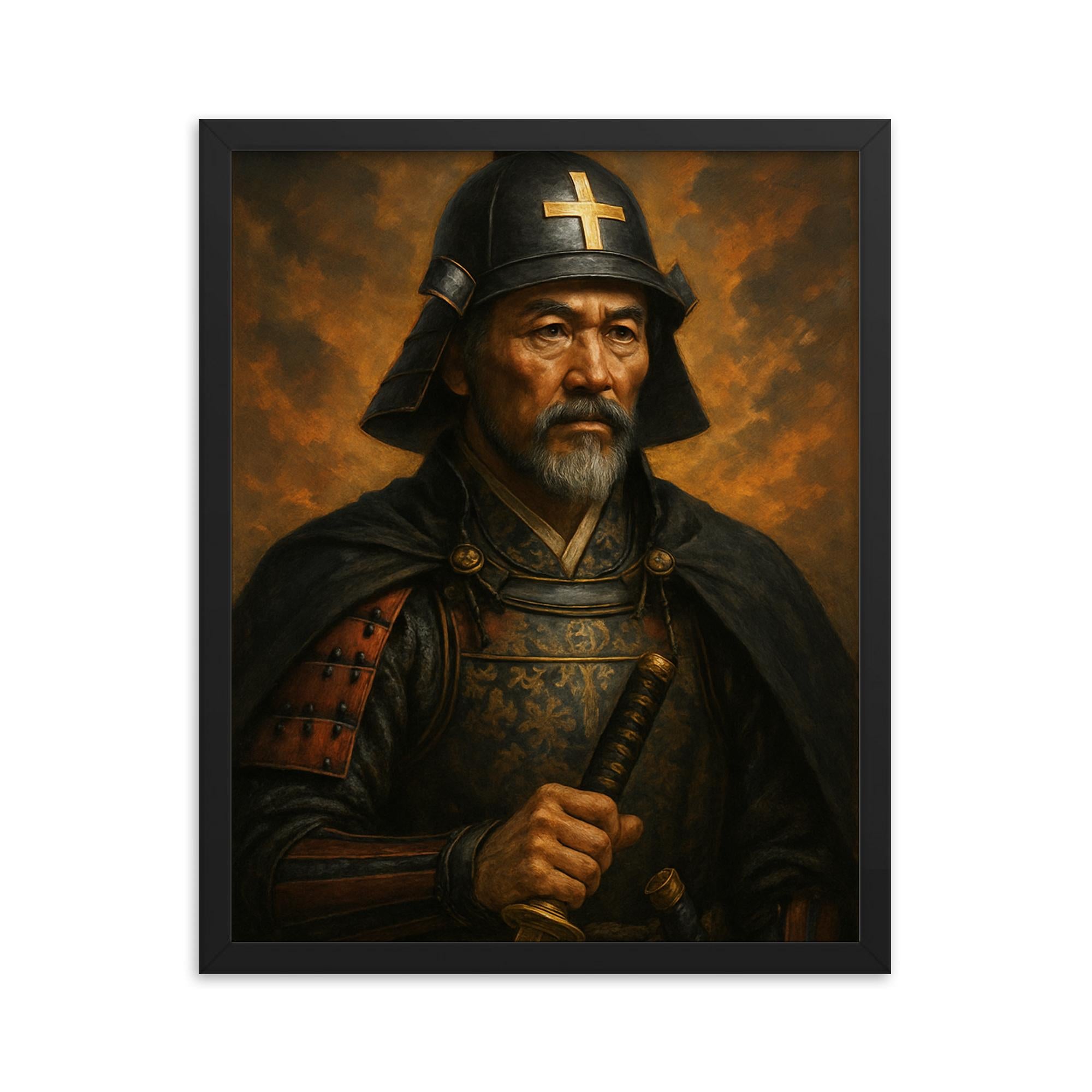 Honor the legacy of Dom Justo Takayama, a revered Japanese Christian samurai, by showcasing this impressively framed print in your home, office, or sacred space. This artwork does more than decorate your walls; it inspires with every glance, channeling a story of courage, faith, and resilience that continues to inspire people across the globe.