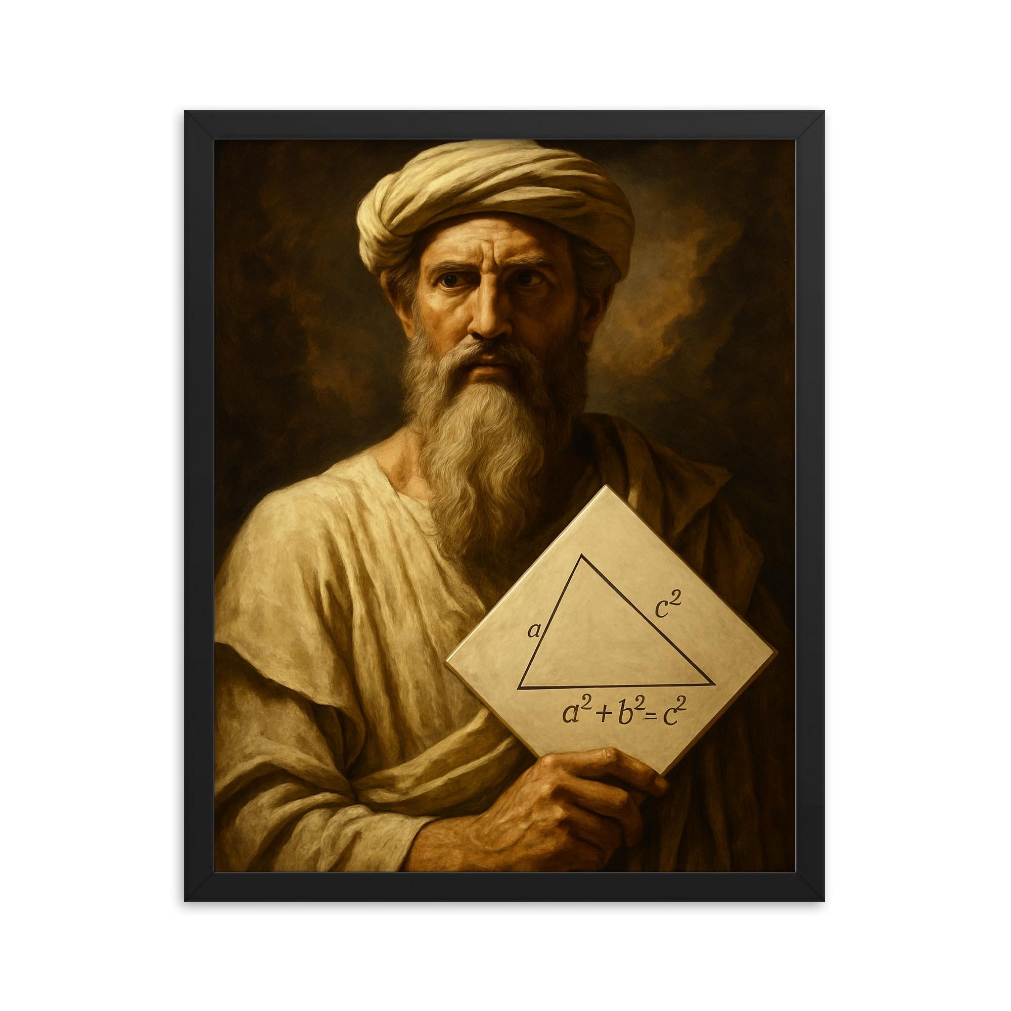 Epic Pythagoras Framed Portrait Print – Striking Mathematical Wall Art, Unique Gift for Math Lovers, Ready to Hang Decor