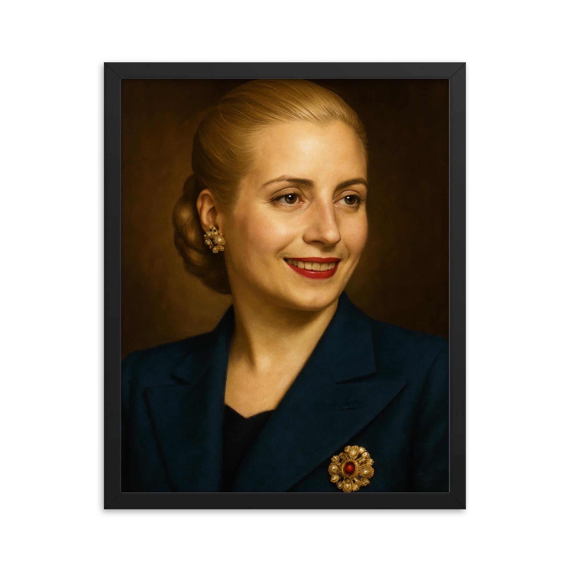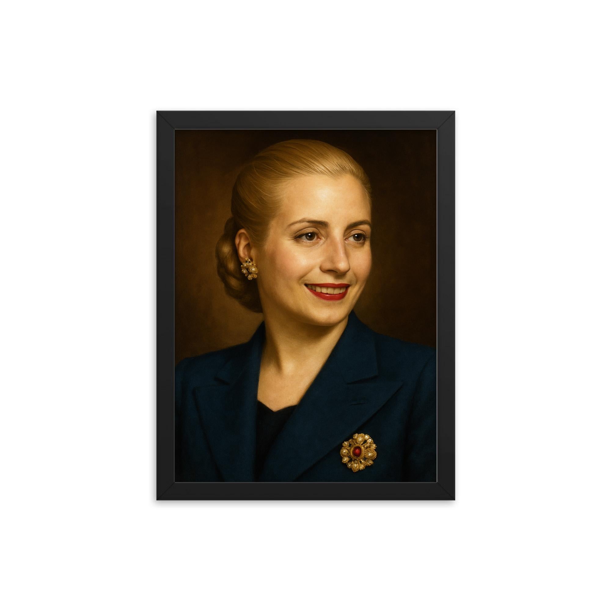 Elevate your space with timeless inspiration through this framed print of the iconic Eva Peron portrait.