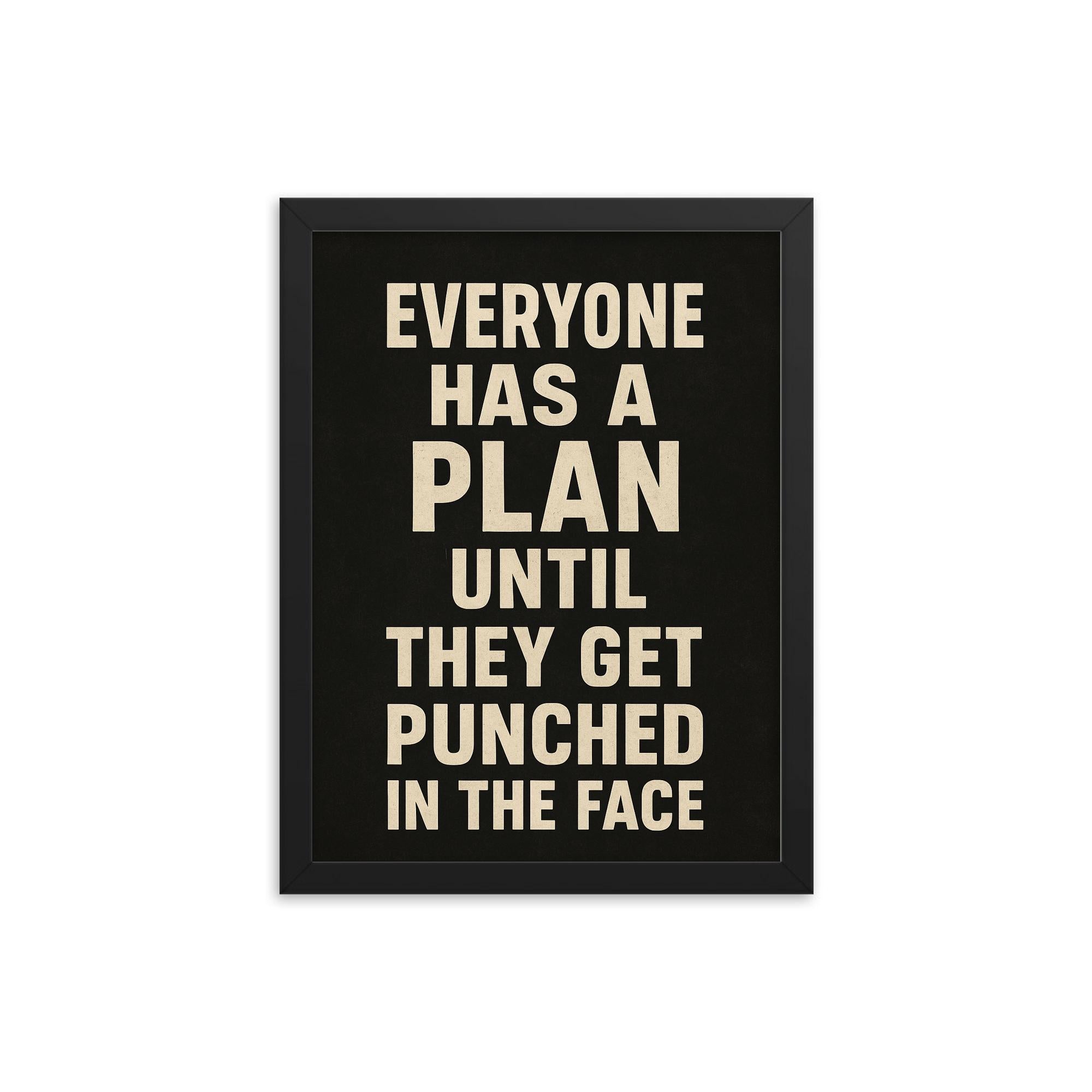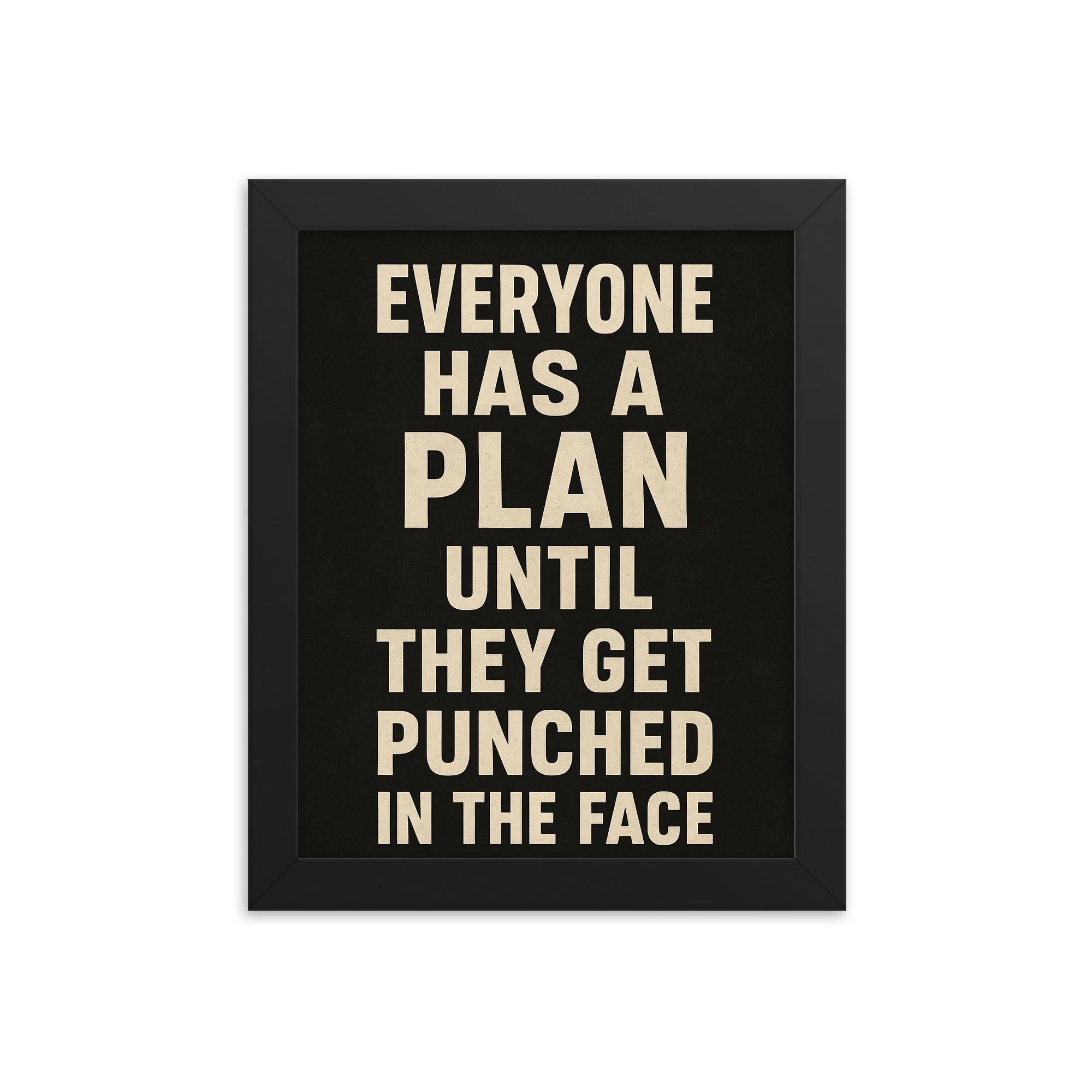 Elevate your space with this bold framed print featuring the unforgettable phrase: Everyone has a plan until they get punched in the face.