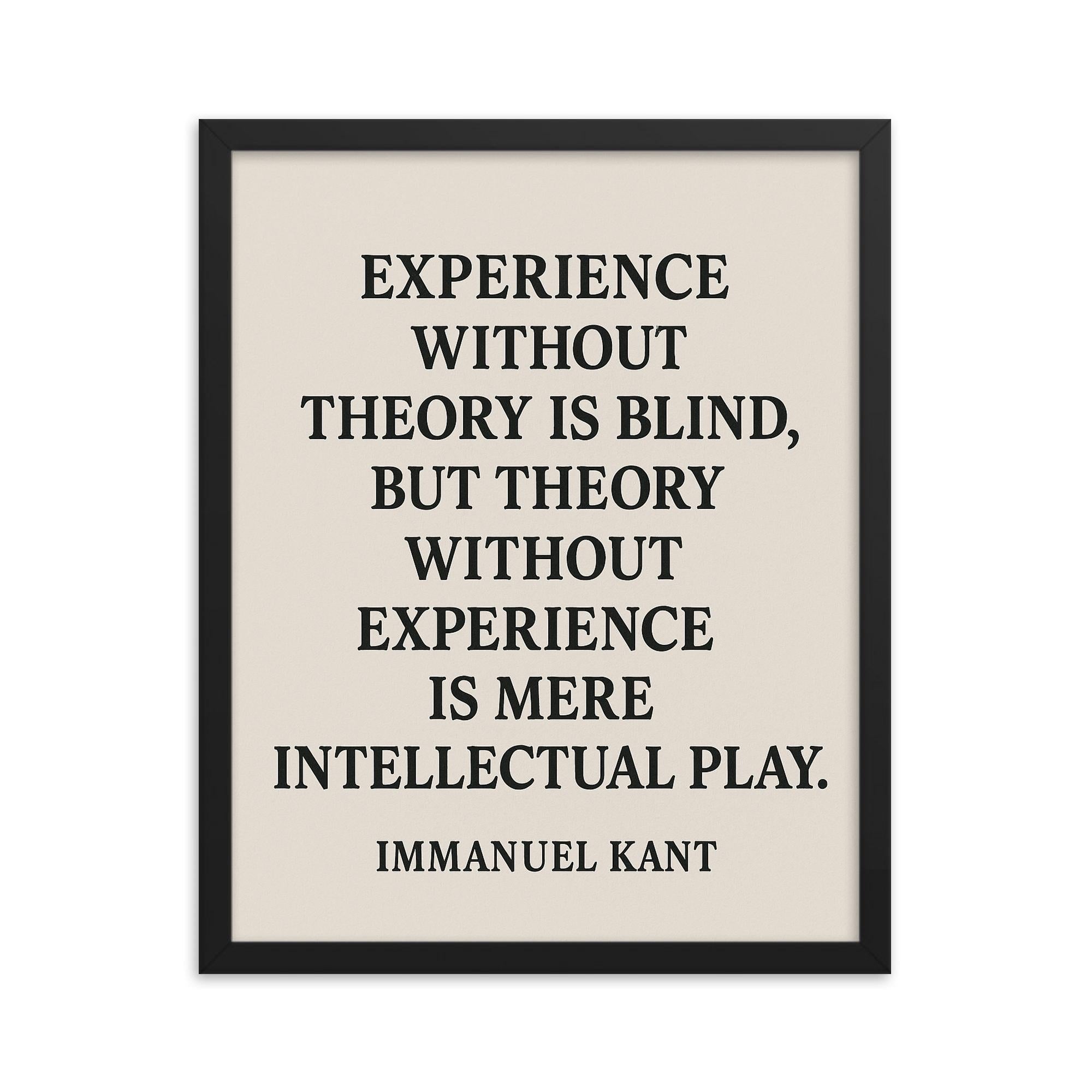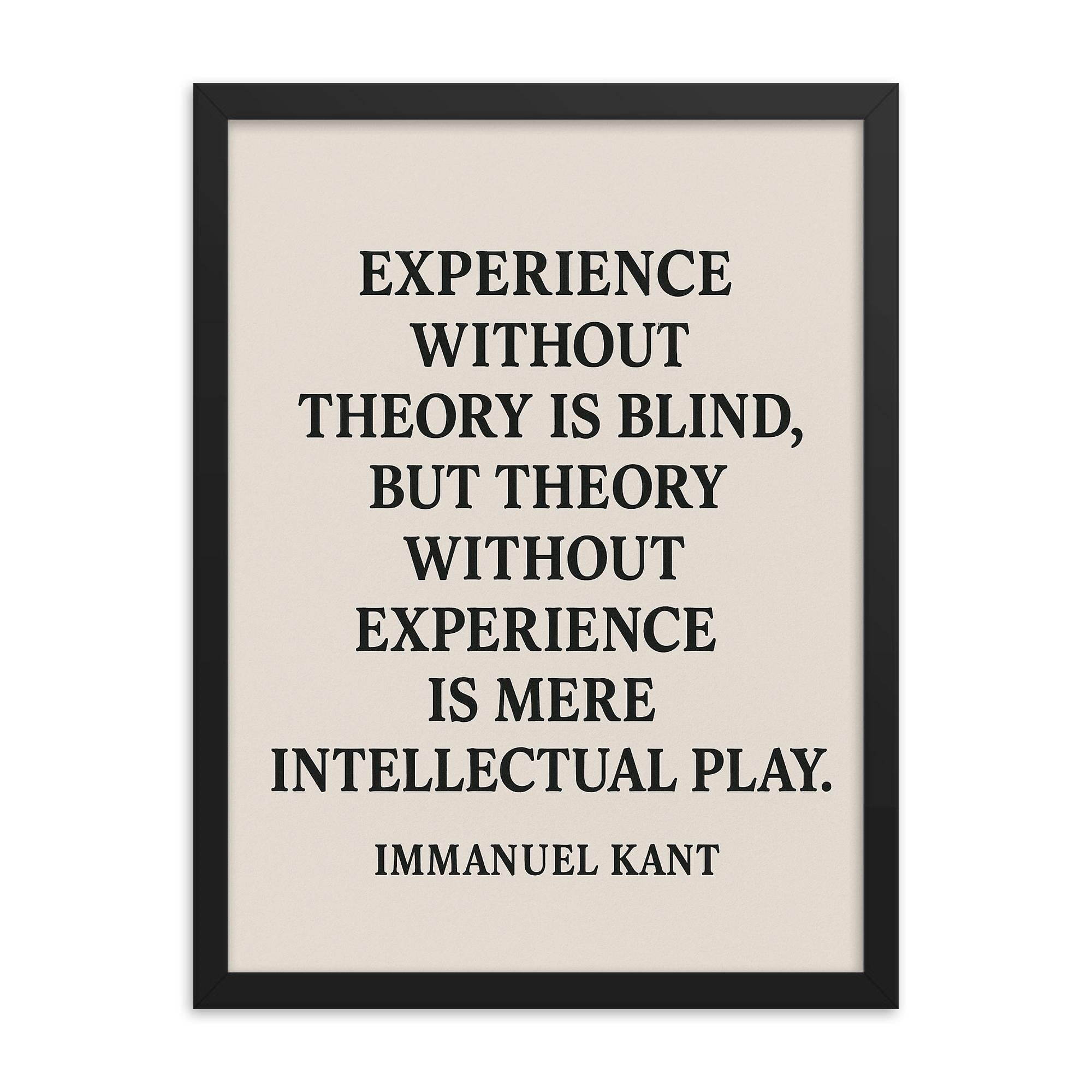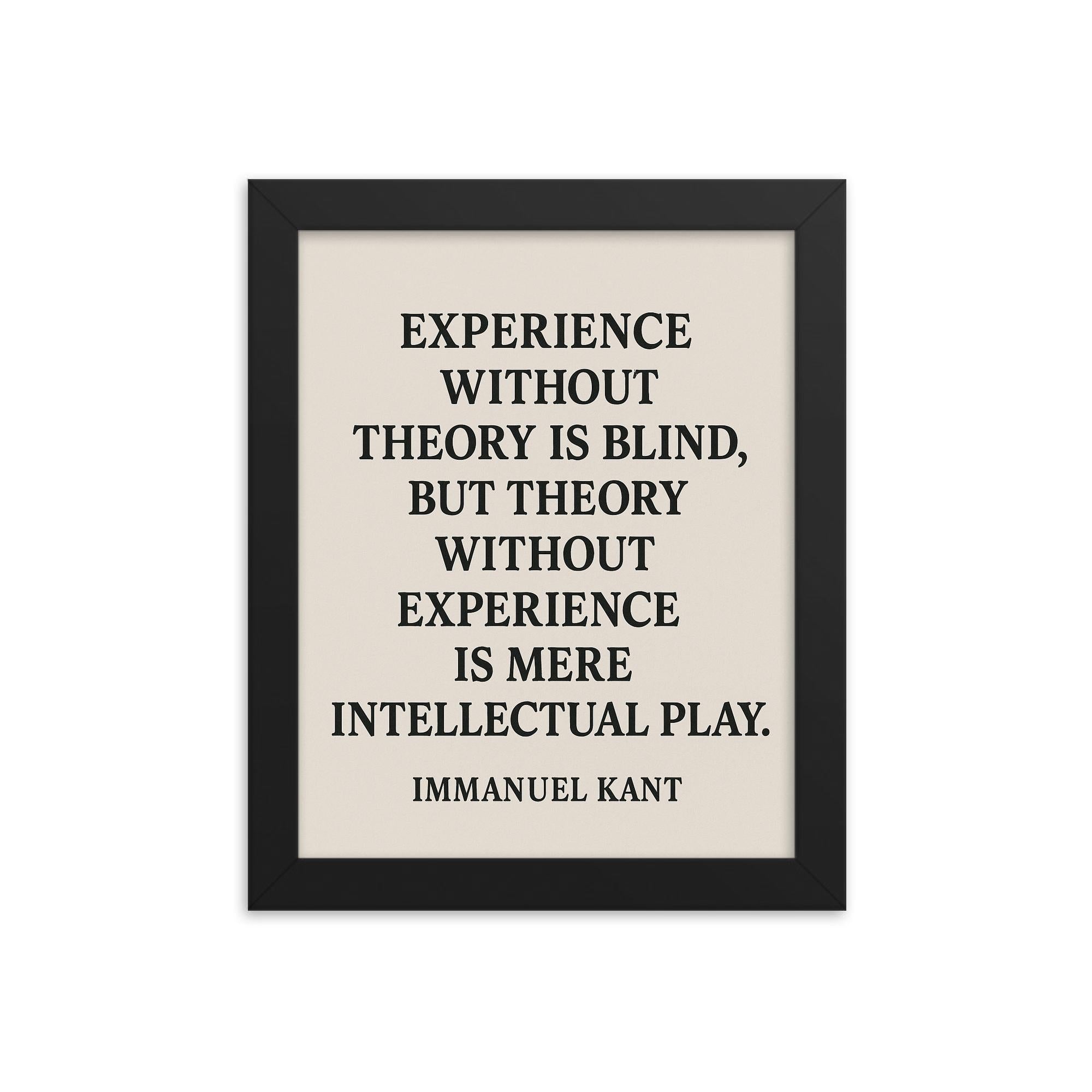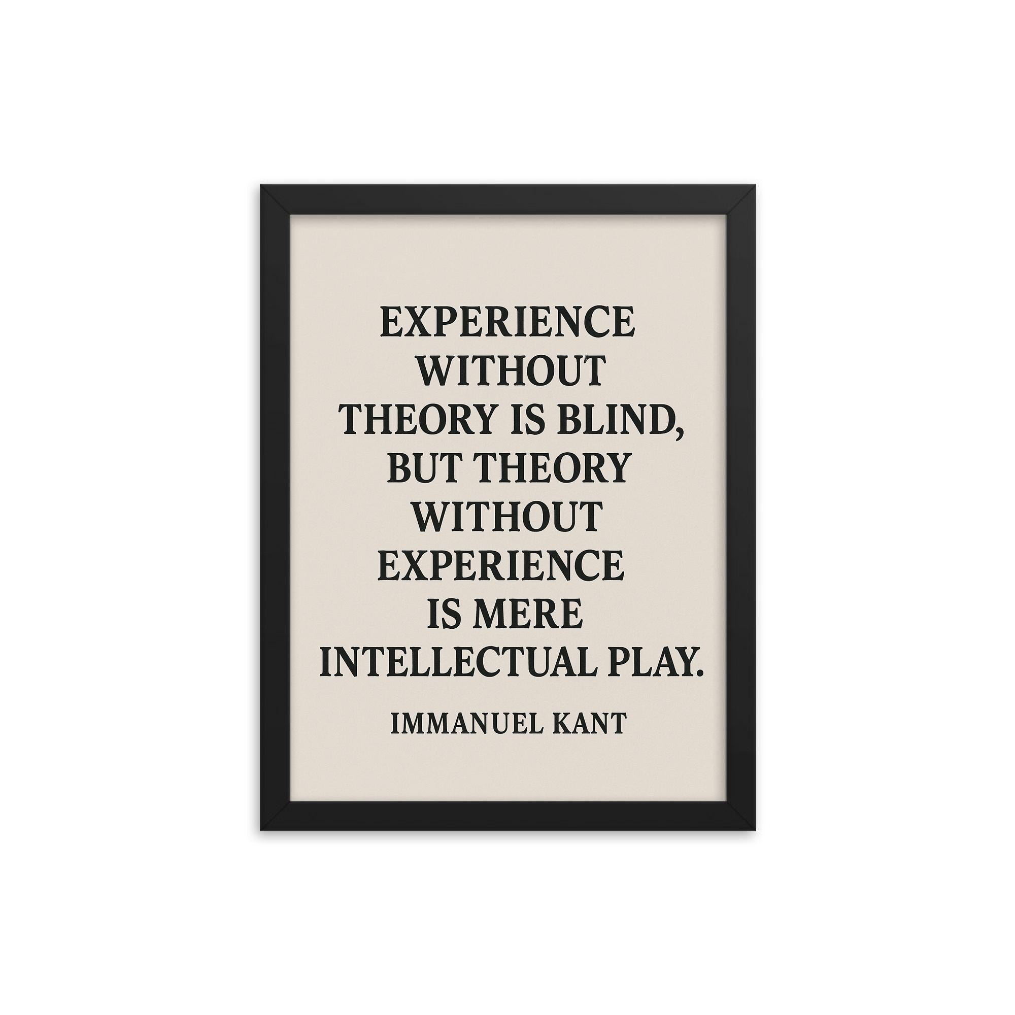 Transform any room into a sanctuary of wisdom and inspiration with this beautifully framed wall art featuring Immanuel Kant’s timeless insight: Experience without theory is blind but theory without experience is mere intellectual play.