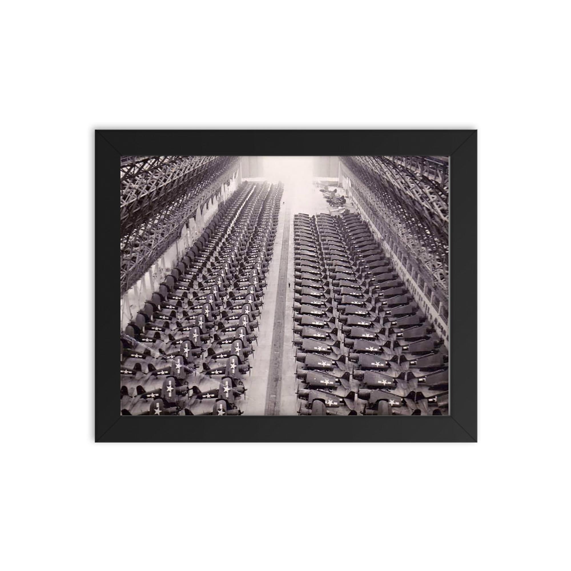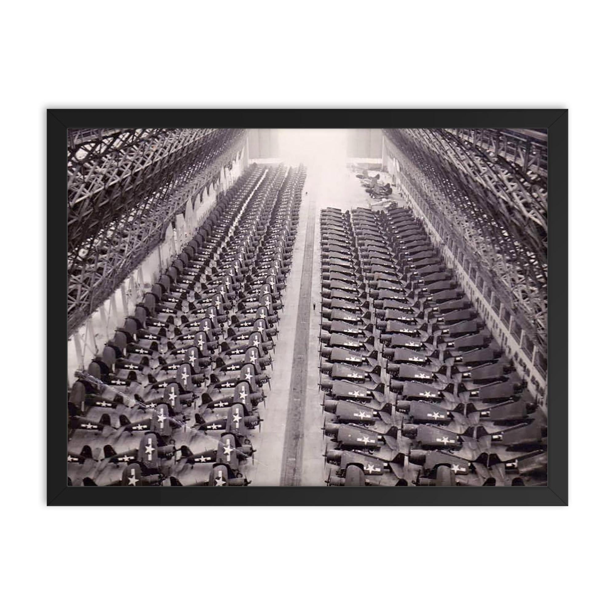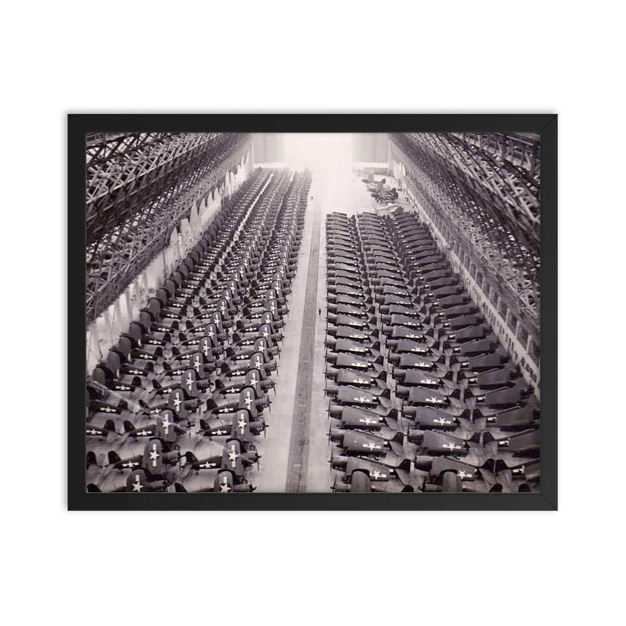Bring a powerful piece of history into your home or office with this captivating framed print: F4U Corsairs Awaiting Shipment to the Pacific Theater.