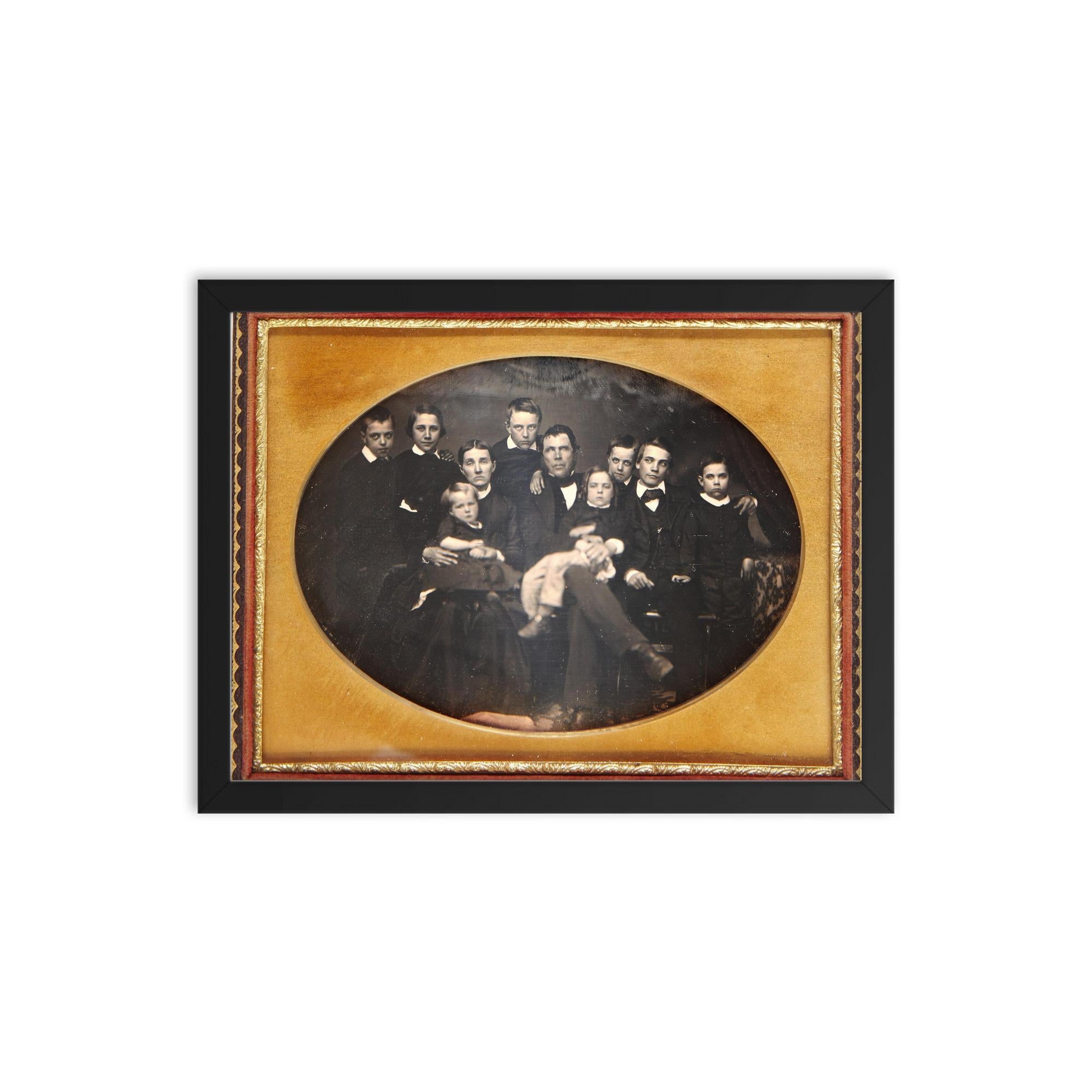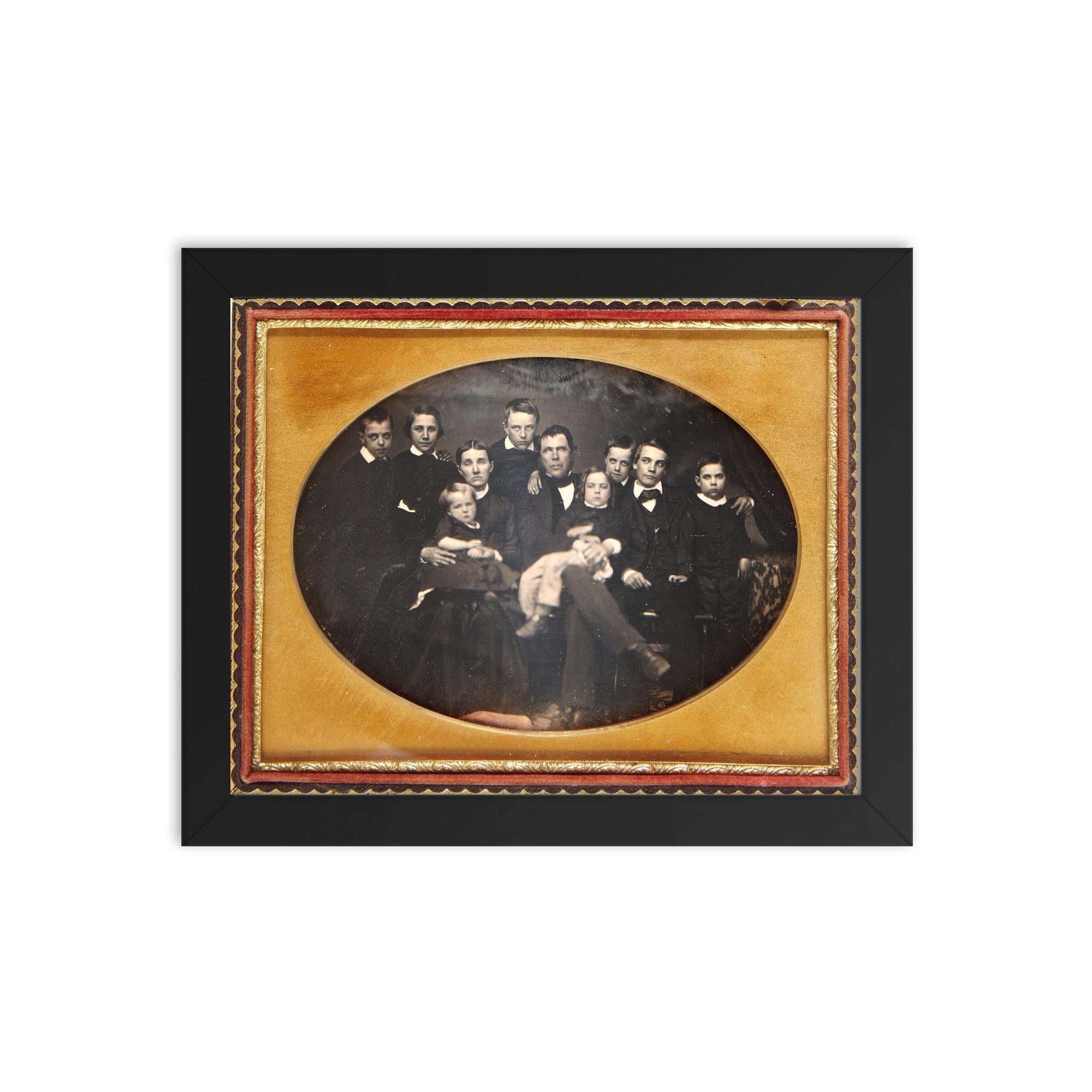Step into history and add a touch of timeless charm to your space with the “Family Portrait, 1854: 7 Boys, 1 Girl, Father and Exhausted Mother” framed print.
