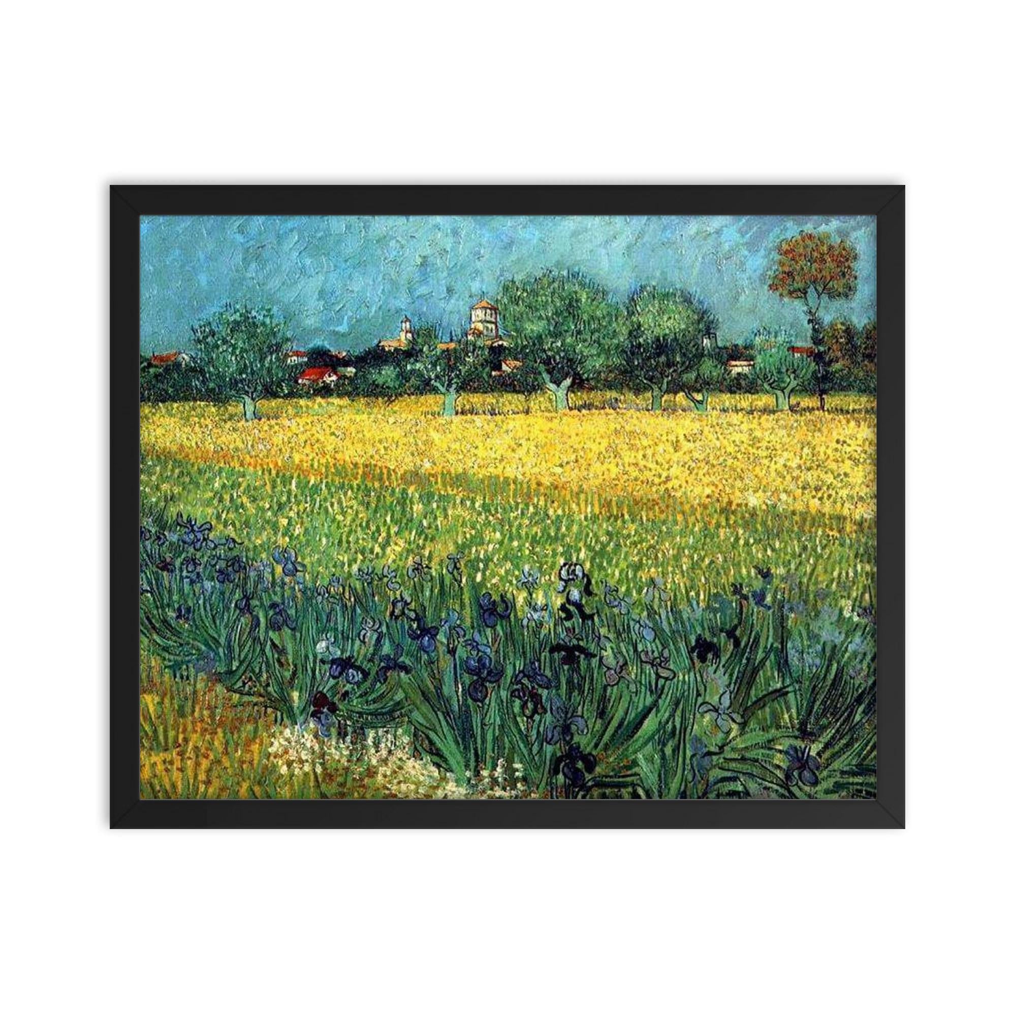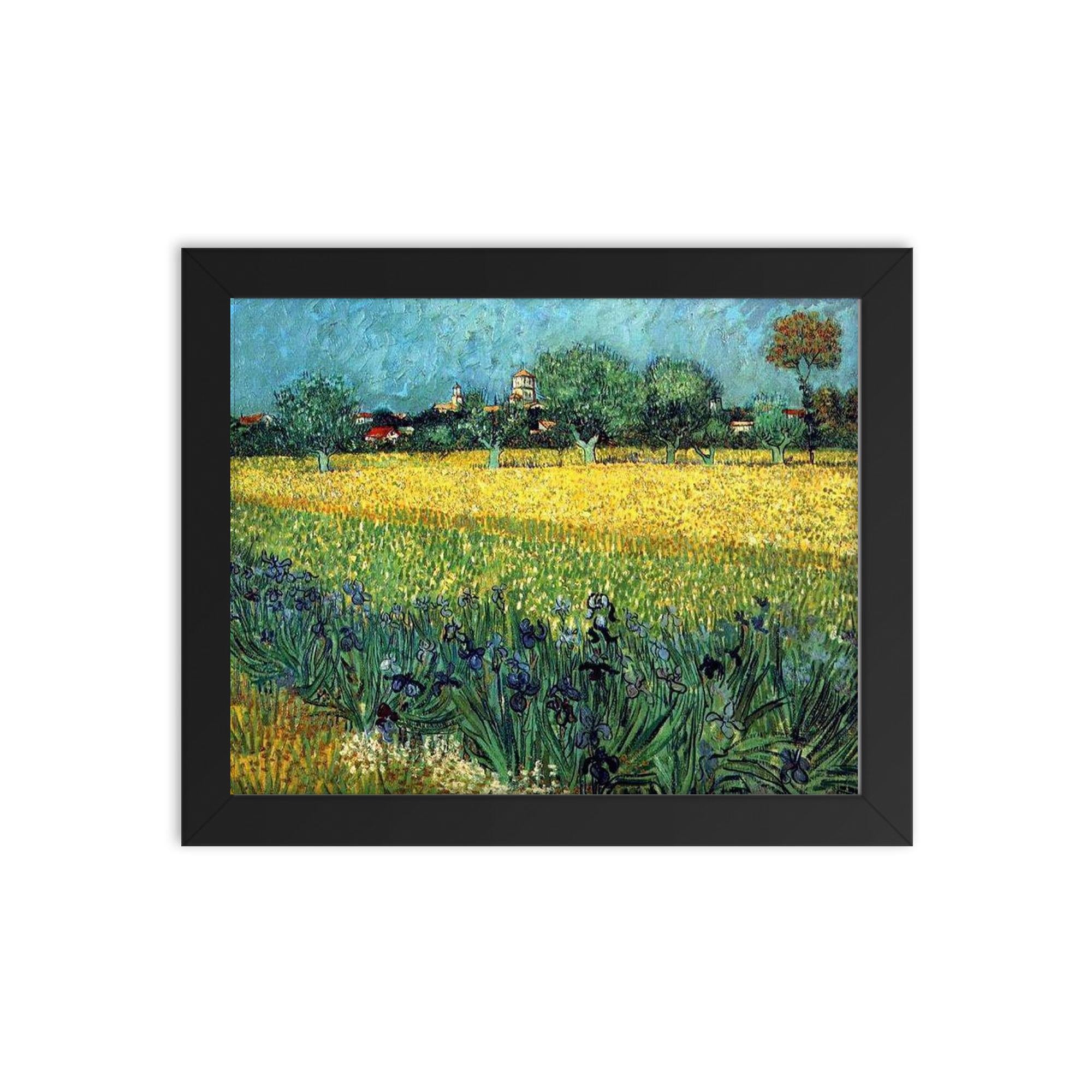 Bring timeless beauty into your space with a framed print of Field with Irises Near Arles by Vincent van Gogh, 1888—a masterpiece that transforms any wall into a gallery of color and inspiration.