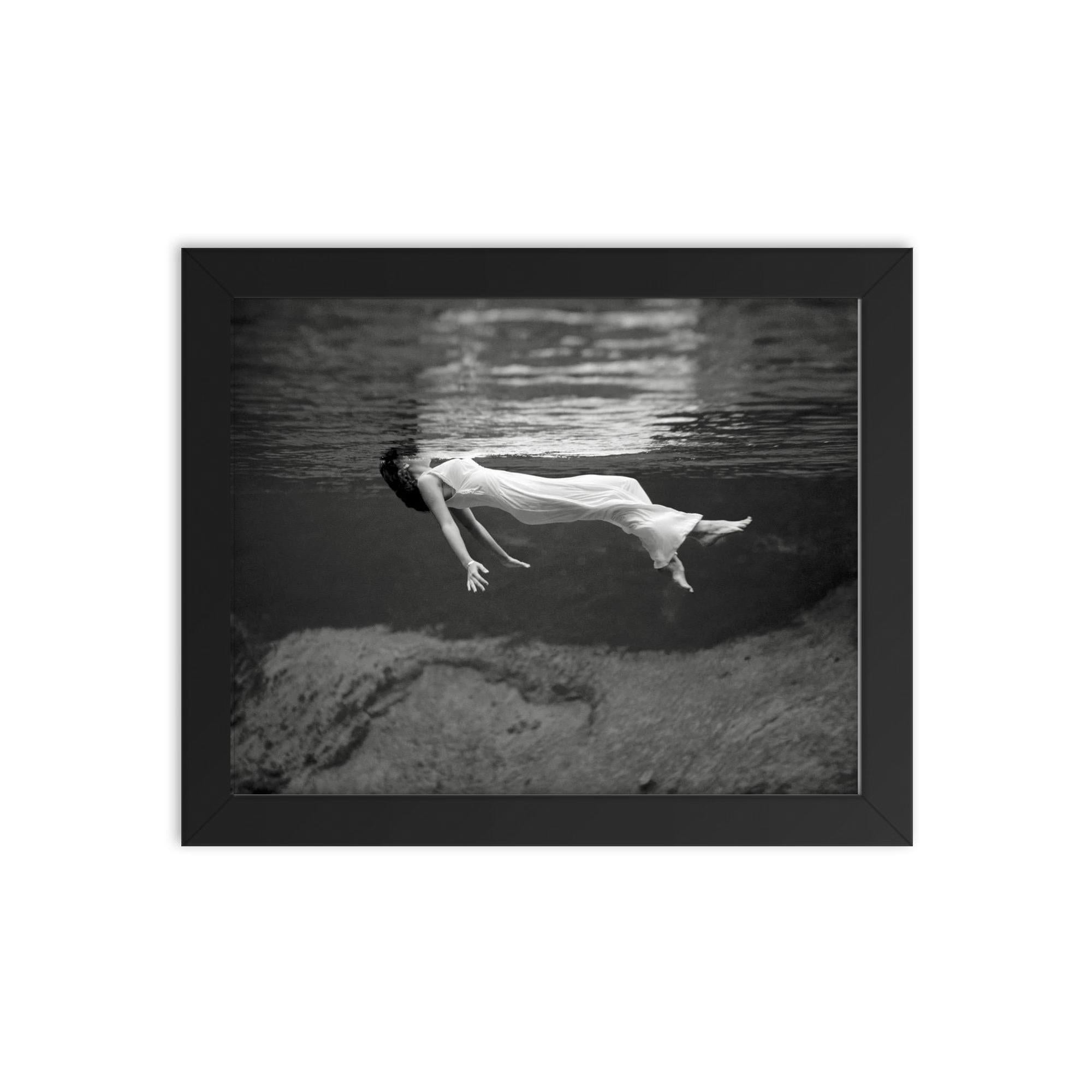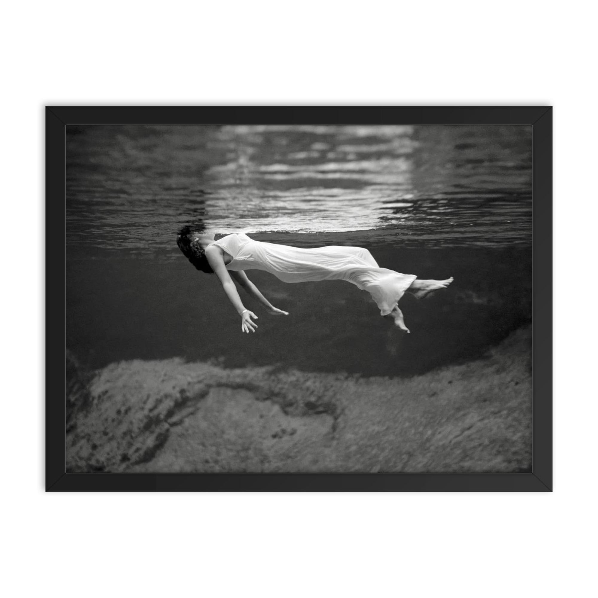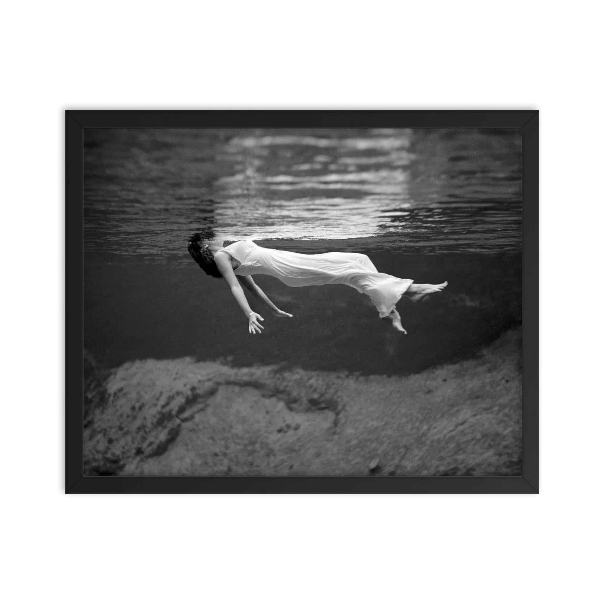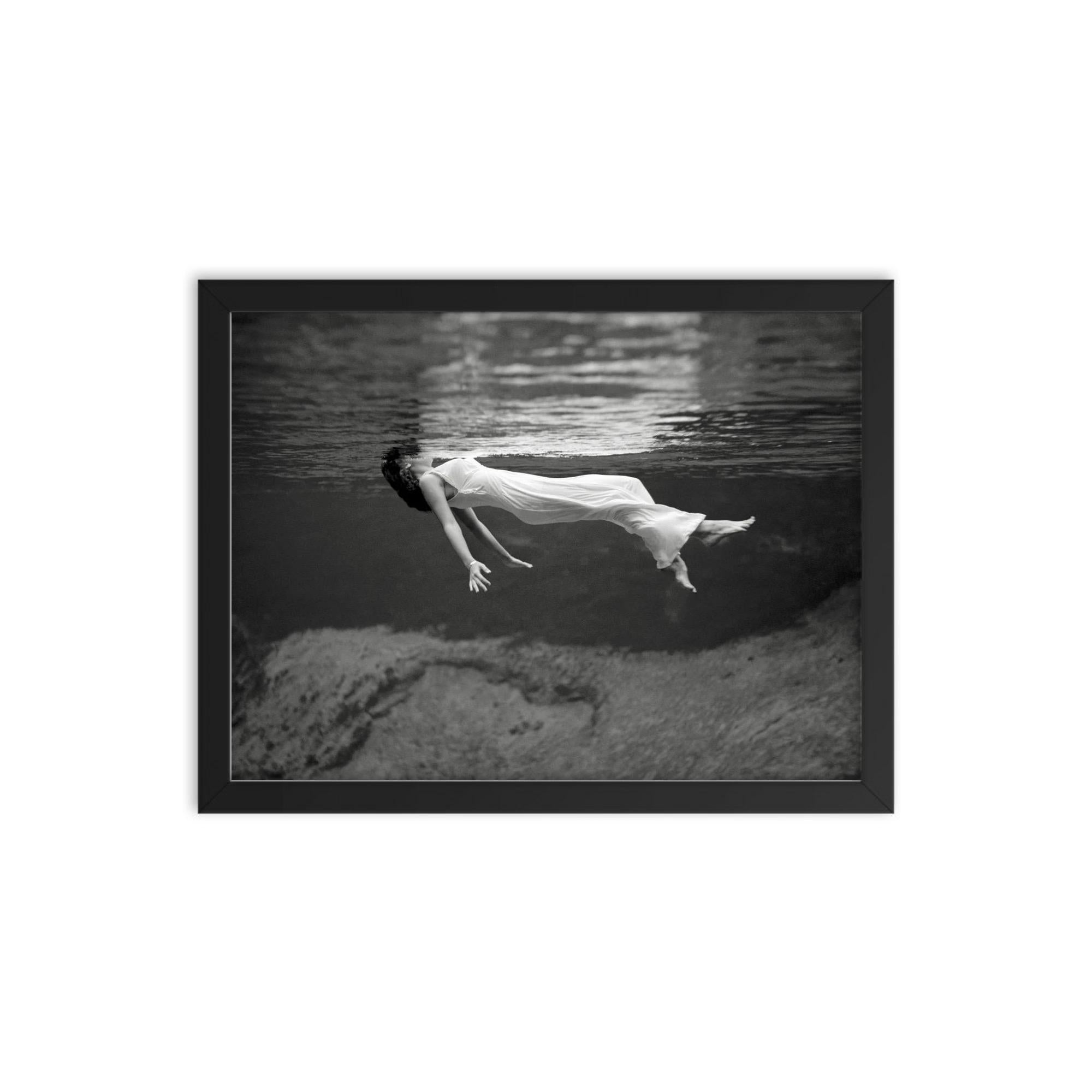 Transform your space with the timeless elegance of Floating Underwater – a stunning framed print capturing a serene moment beneath the surface of Weeki Wachee Springs, Florida, 1947.