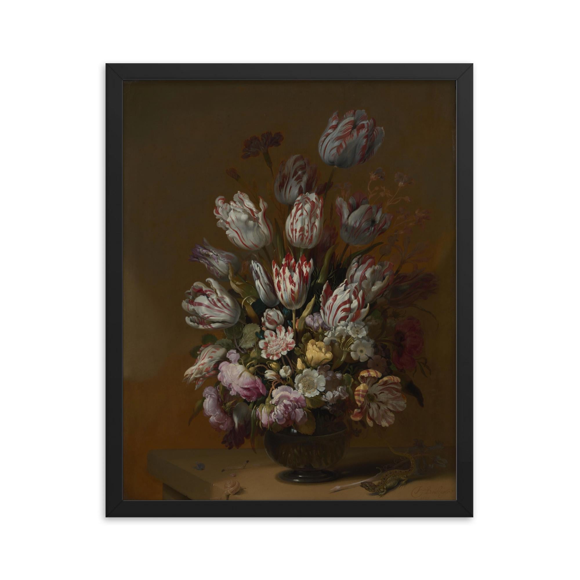 Floral Still Life by Hans Bollongier 1639 Framed Print – Baroque Botanical Wall Art, Museum-Quality Reproduction for Elegant Home Decor