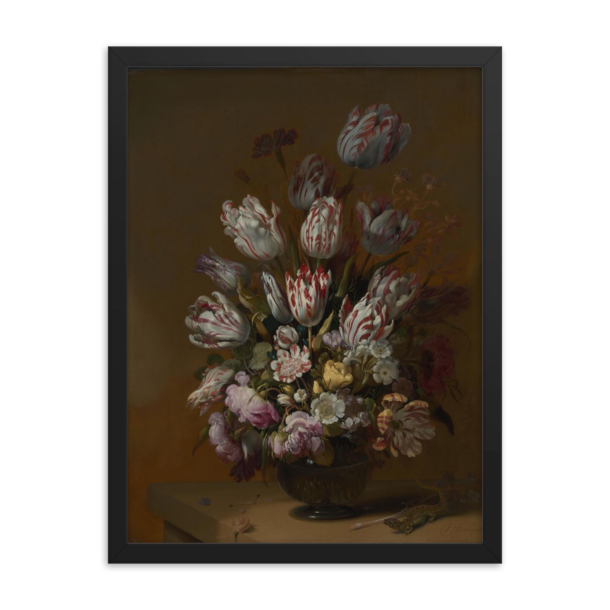 Transform your space with timeless elegance. Elevate any room with a stunning framed print of Floral Still Life by Hans Bollongier, 1639—a masterpiece of Dutch Golden Age artistry now ready to bring history and sophistication into your home.