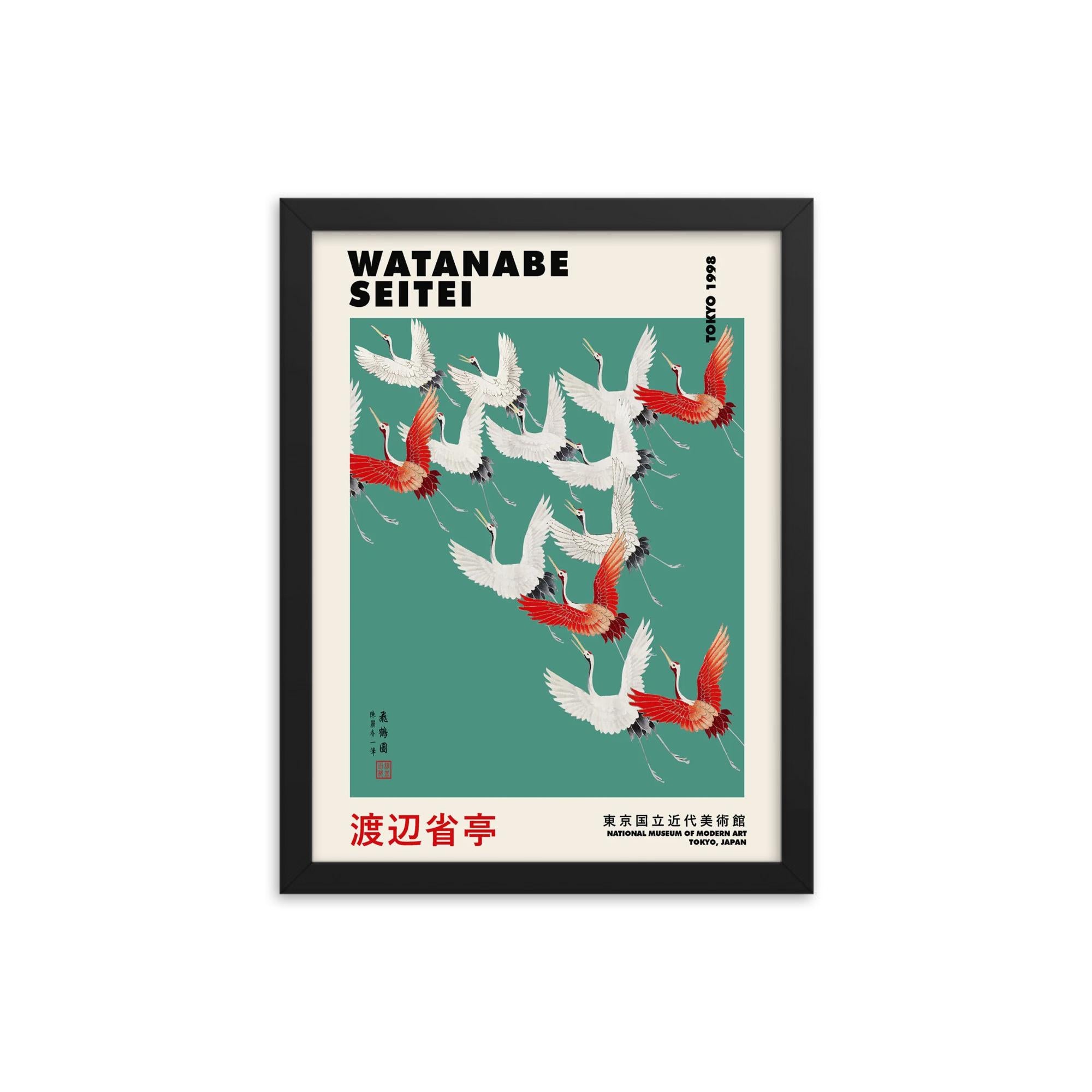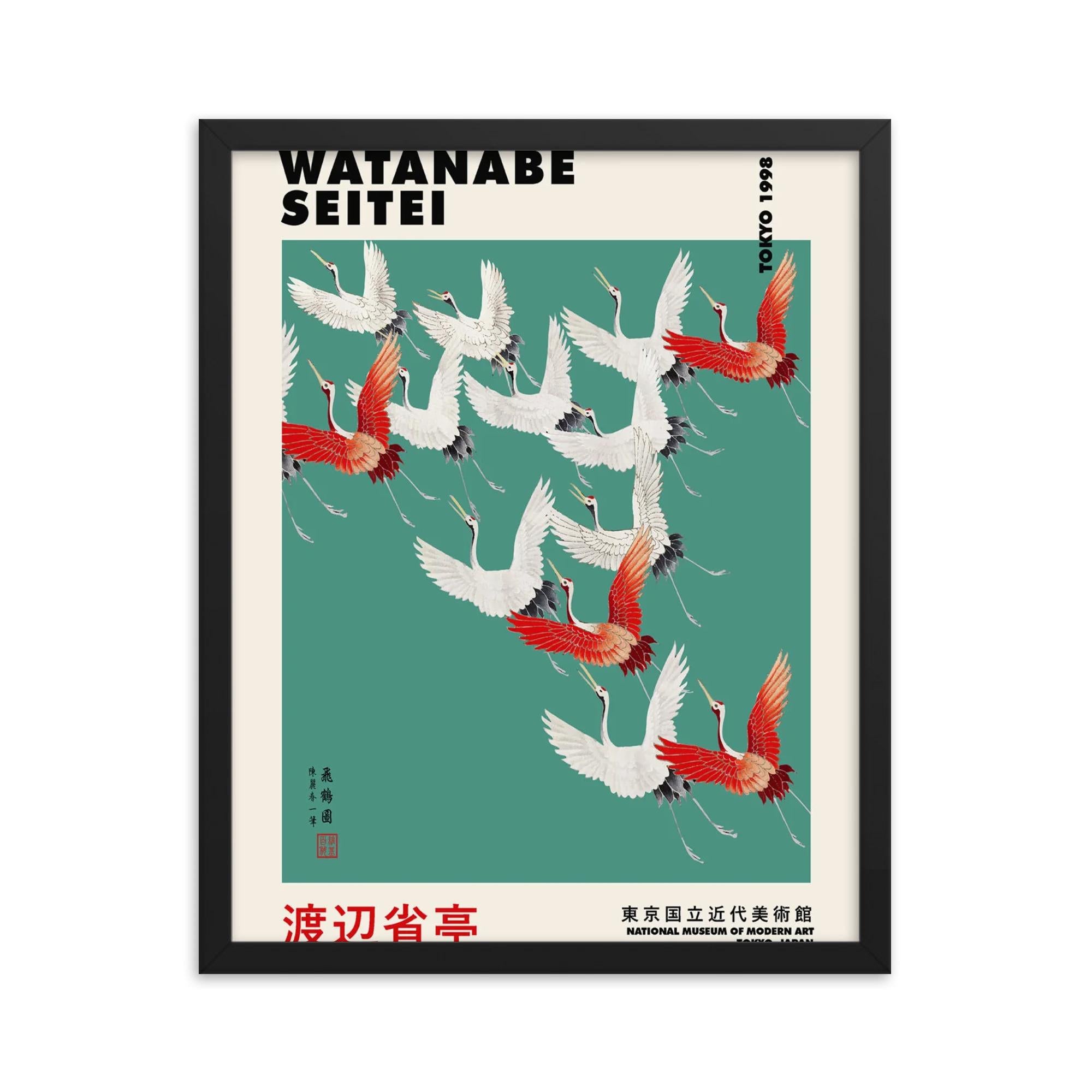 Framed Flying Cranes Wall Art by Watanabe Seitei – Elegant Japanese Bird Print, Premium Museum-Quality Decor for Living Room or Office