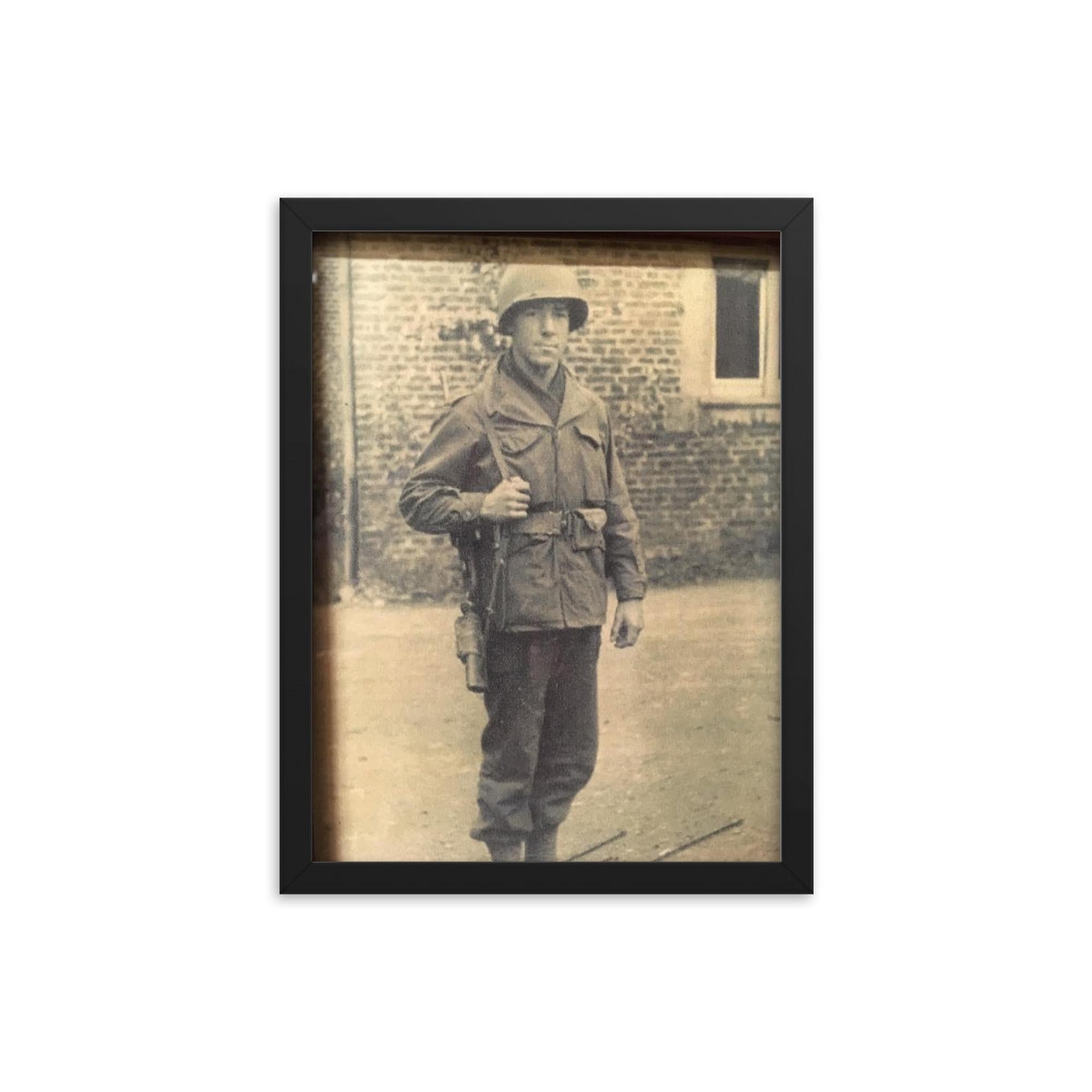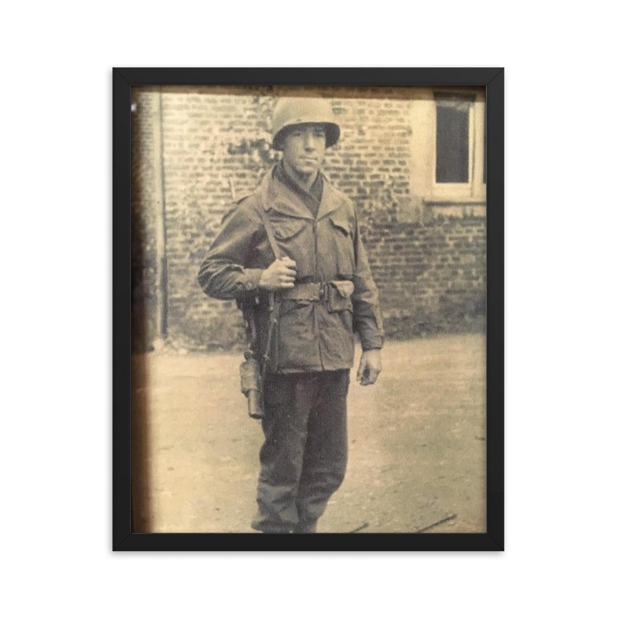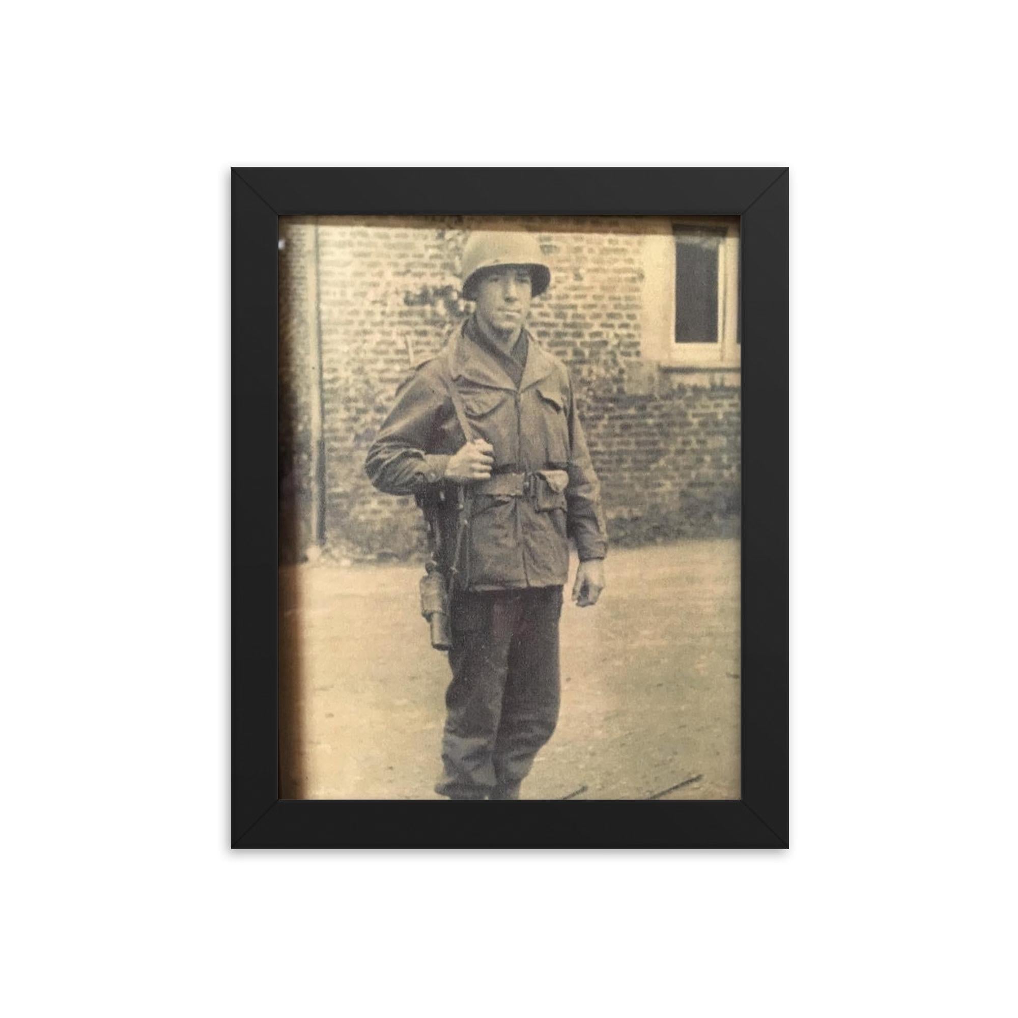 Bring the spirit of courage and history into your home or office with this exclusive framed print: Frank L. Wendel, Cannon Crew Member on 105mm Howitzer, England Before D-Day.