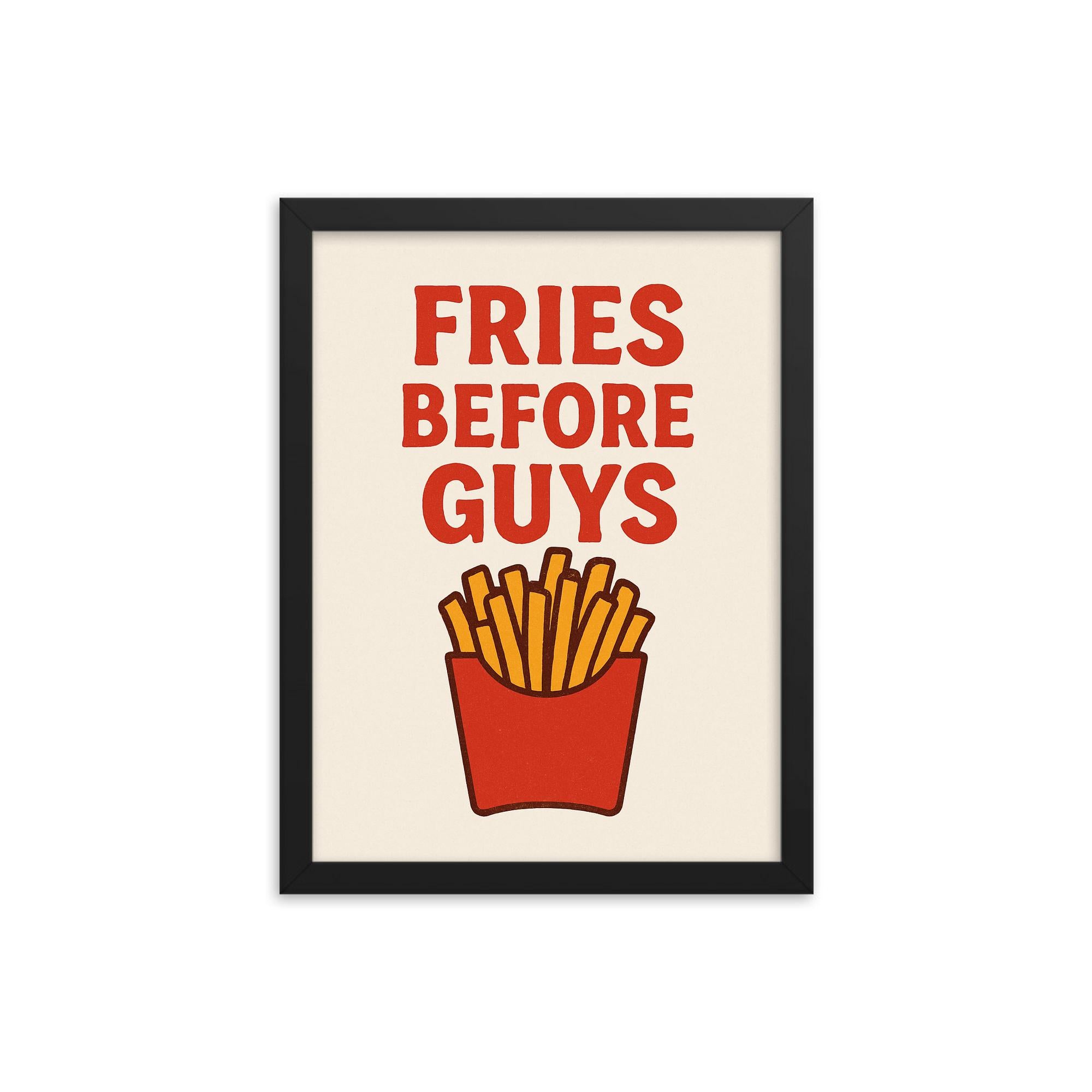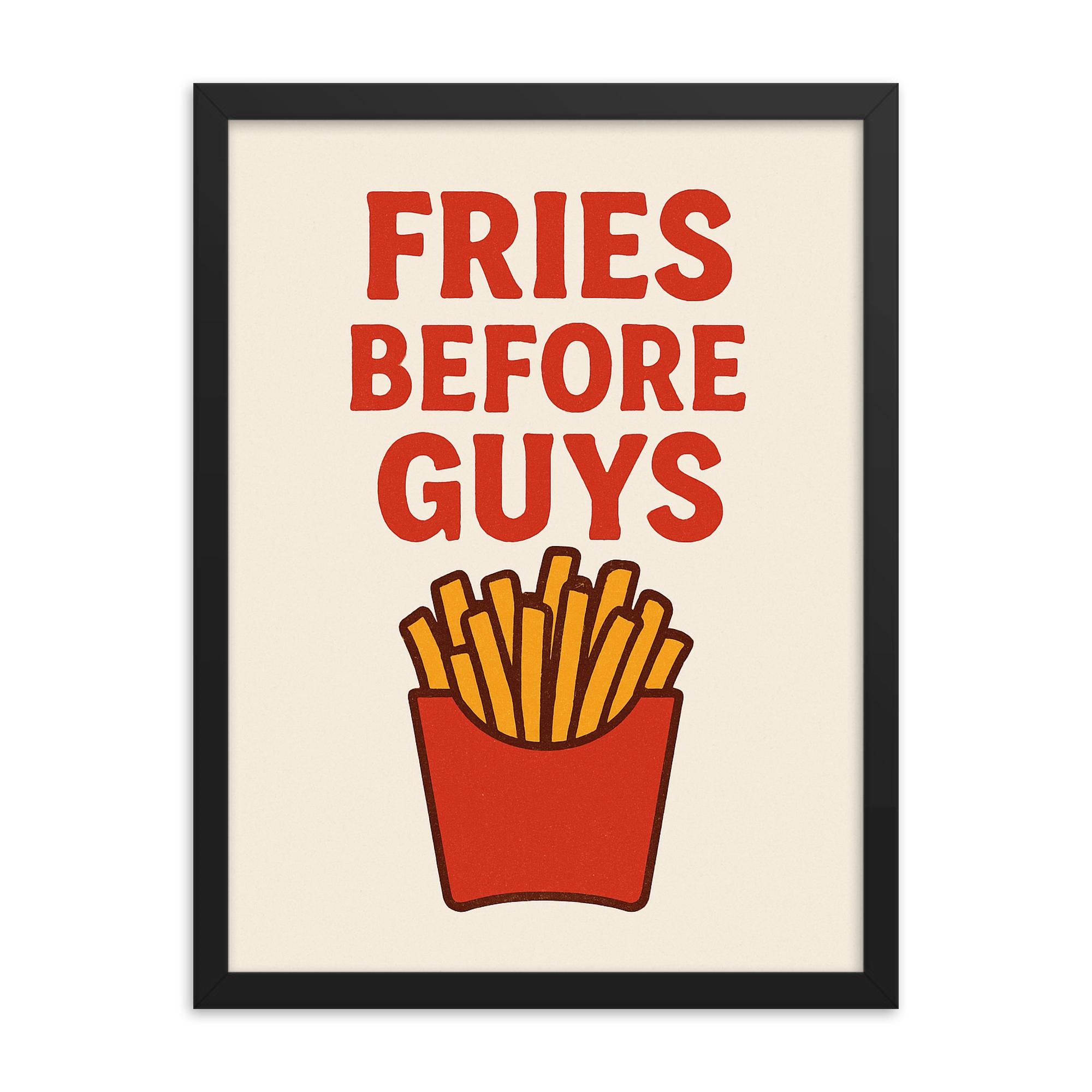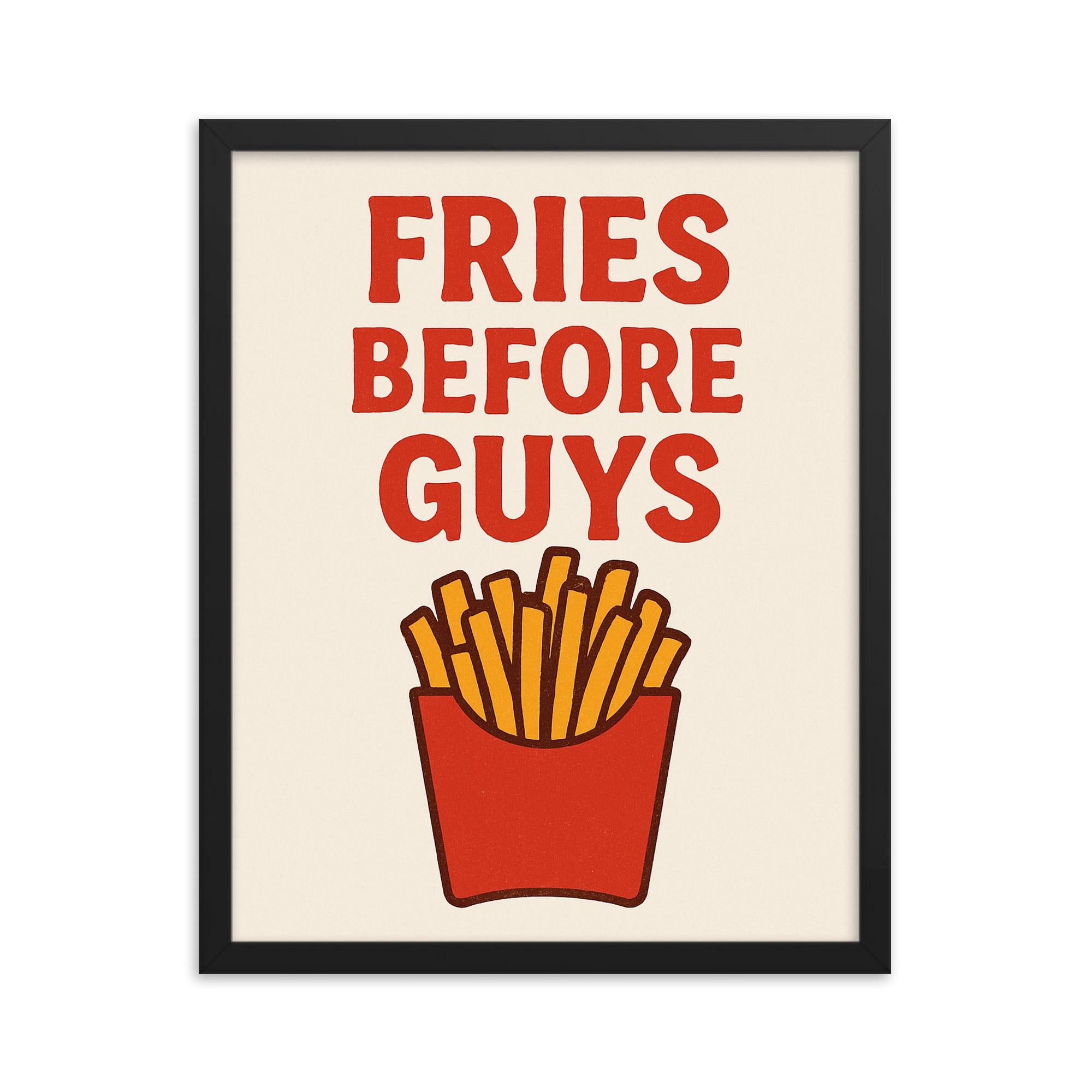 Fries before guys—now that’s a mantra worth displaying. Turn your wall into an instant statement of self-love and good taste (literally). This framed print is more than just wall art; it’s a celebration of unapologetic priorities and a daily reminder to savor life’s delicious moments.