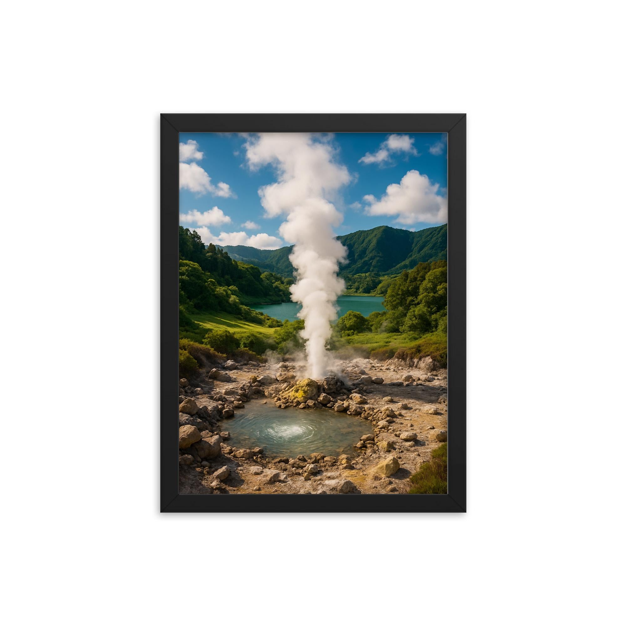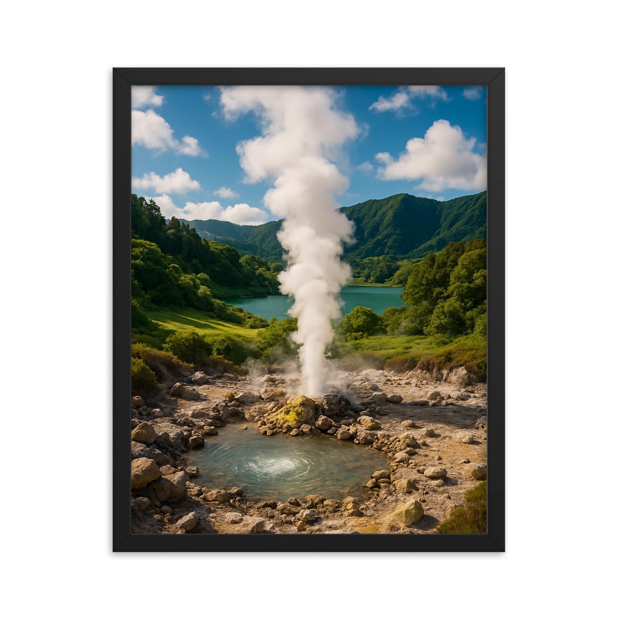 Transform your living space with this stunning framed print of Furnas Geothermal Valley in the Azores, Portugal—an extraordinary piece of wall art that brings natural wonder right into your home.