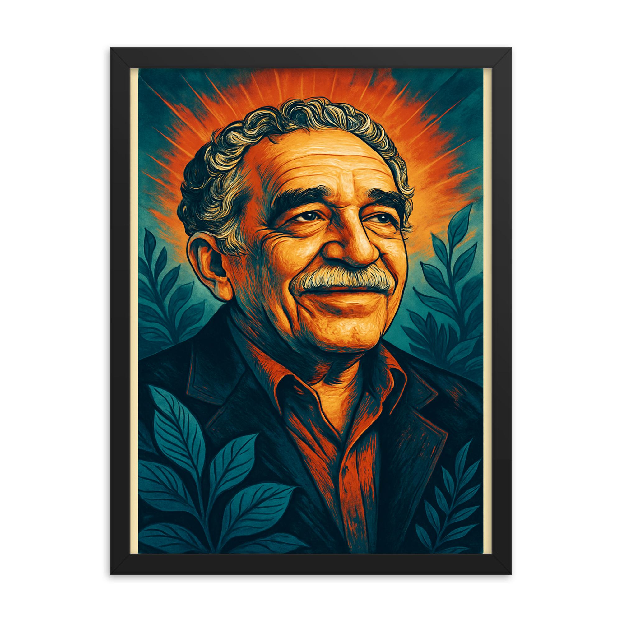 Elevate your space with timeless literary elegance through this framed print of Gabriel Garcia Marquez.