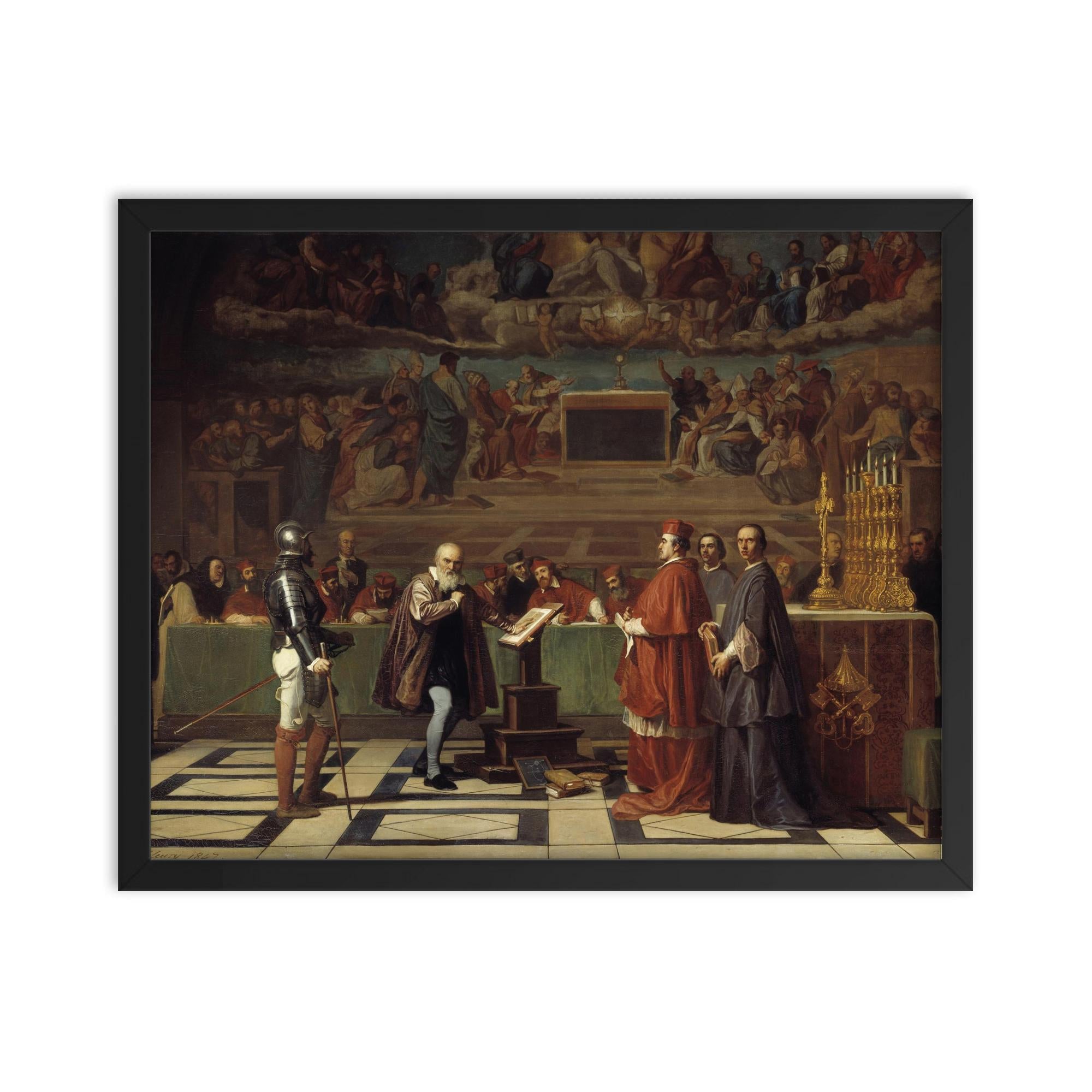 Transform your home or office into a gallery of inspiration with this stunning framed print of "Galileo Before the Holy Office" by the esteemed Joseph-Nicolas Robert-Fleury, painted in 1847.