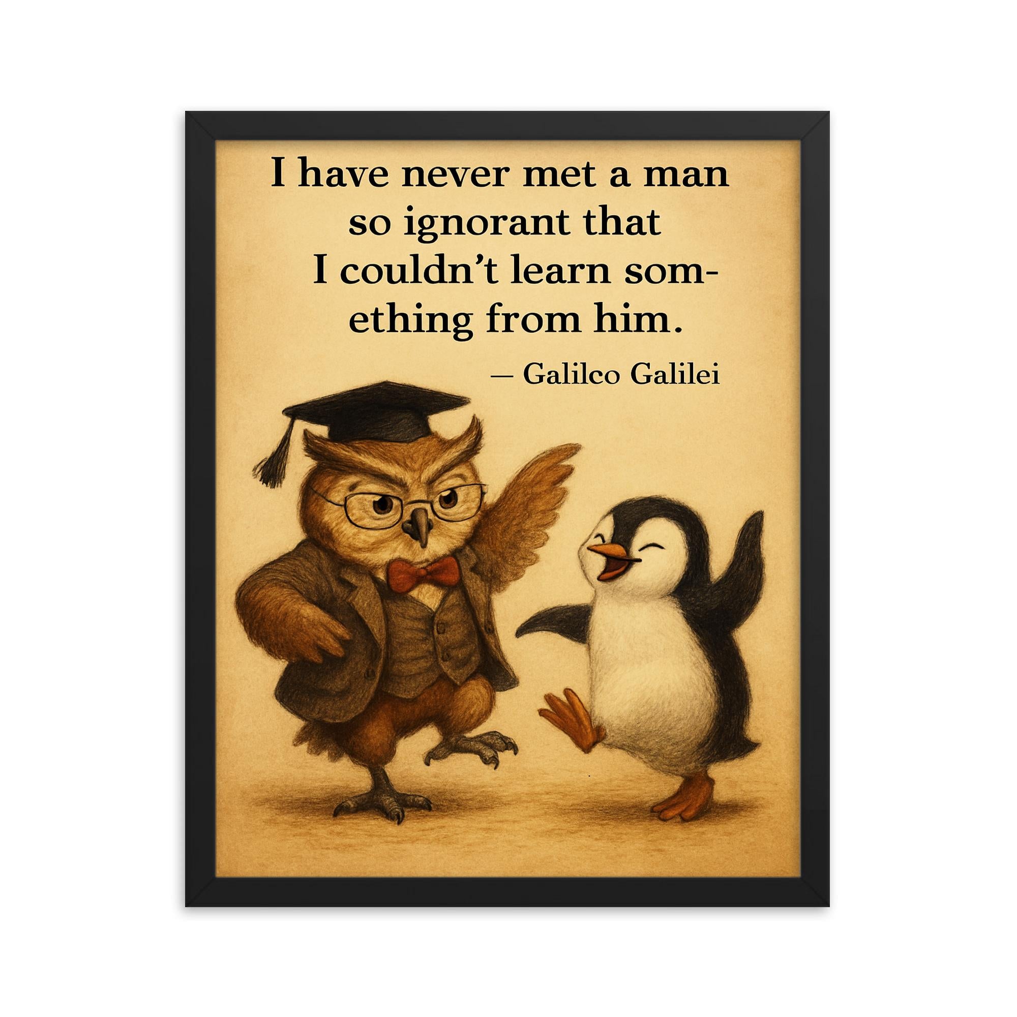 Introducing our beautifully framed wall art featuring Galileo’s timeless quote: I have never met a man so ignorant that I couldn't learn something from him.