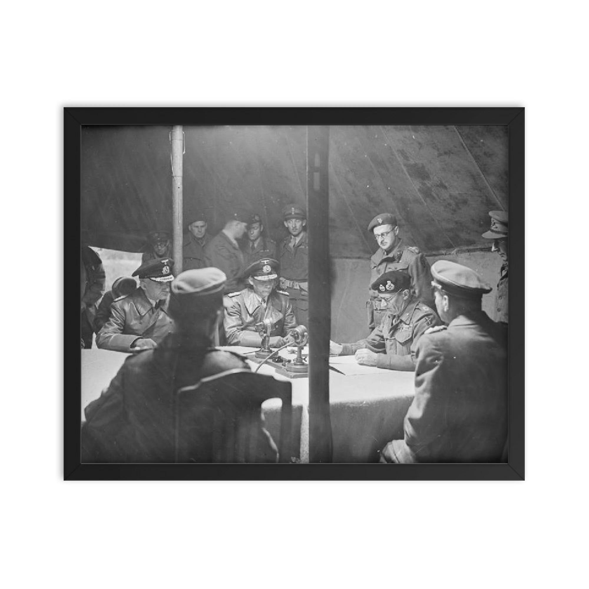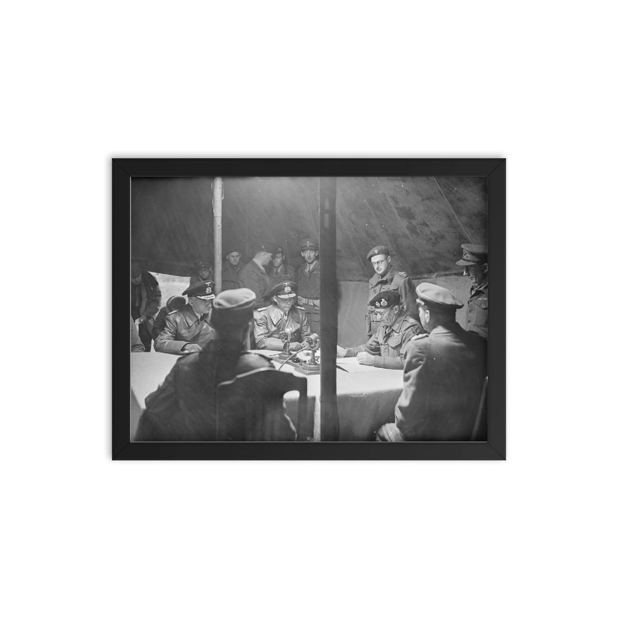 Capture an extraordinary moment in world history and bring it directly into your space with this premium framed print of the German Surrender at Luneburg Heath.