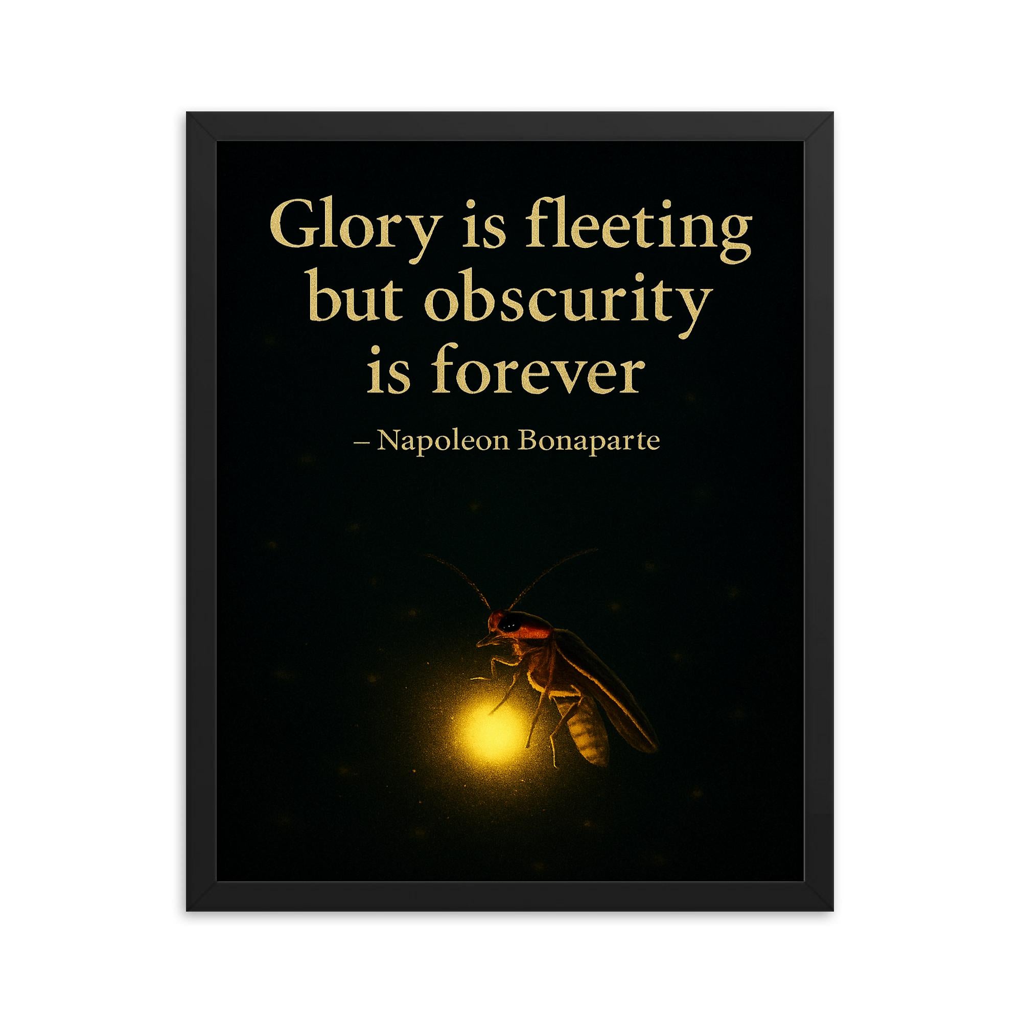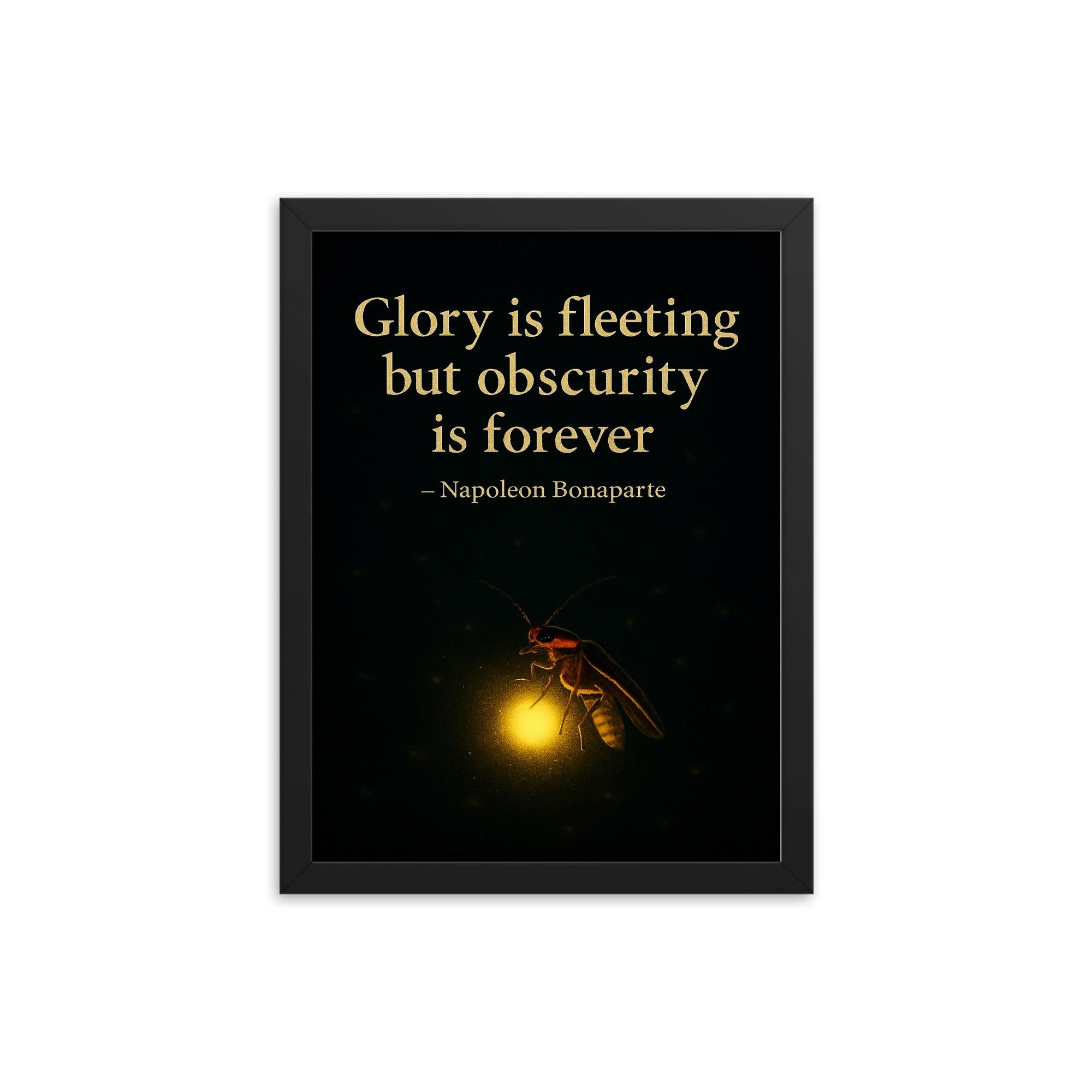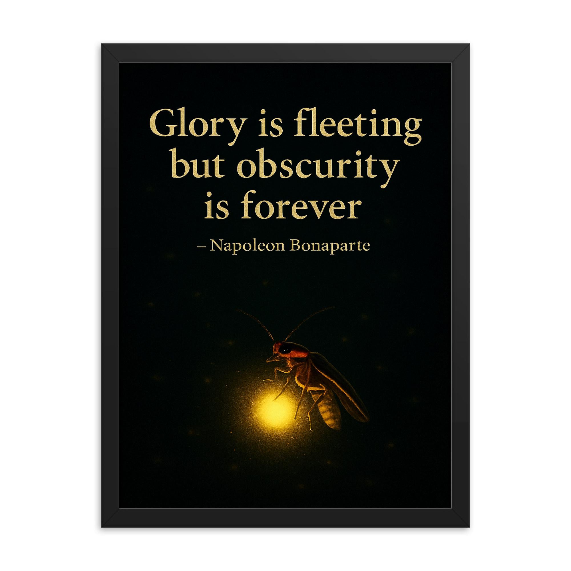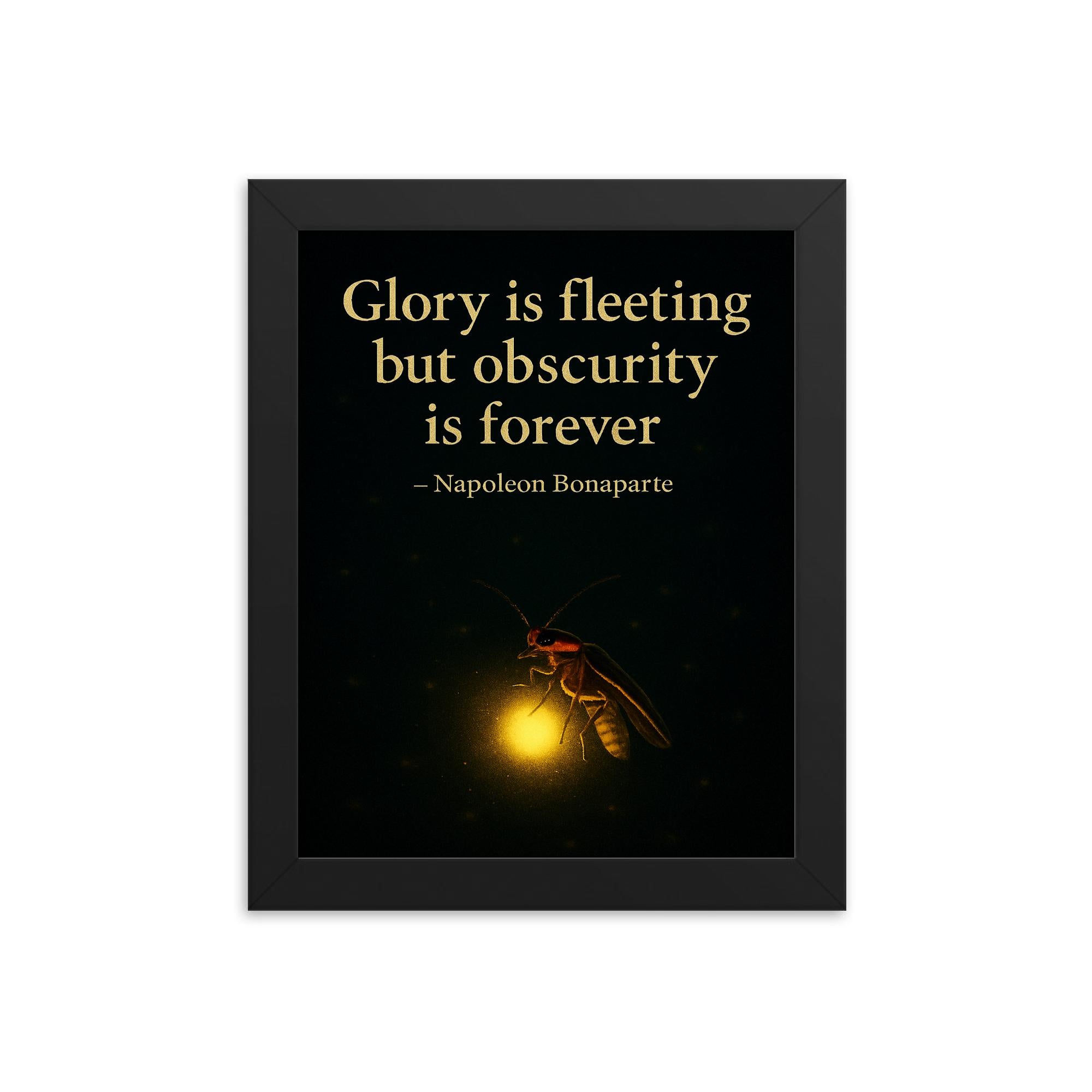 Illuminate your space—and your mindset—with this striking framed print inspired by Napoleon Bonaparte’s timeless reflection: Glory is fleeting but obscurity is forever.