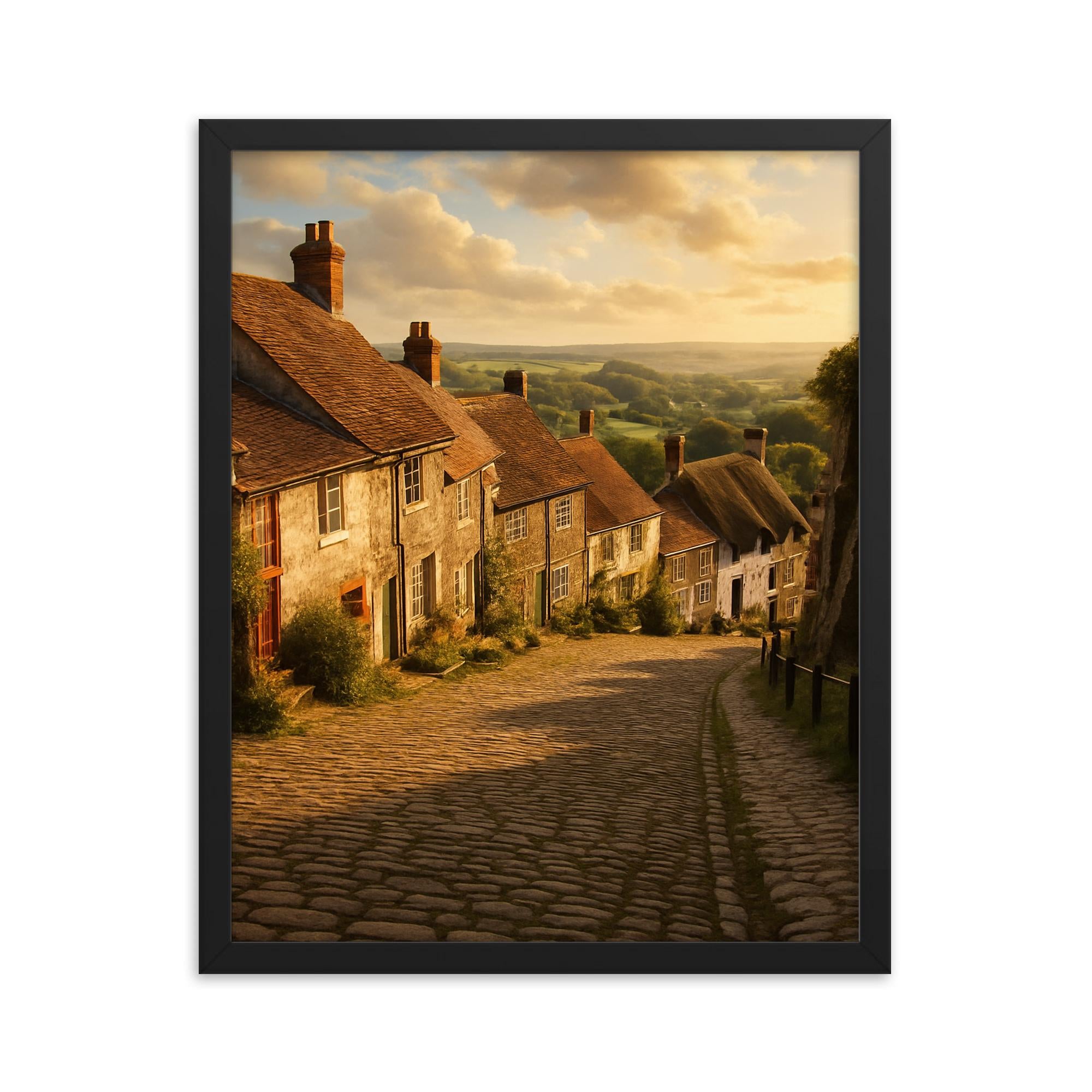 Transform your living space with timeless charm through this beautifully framed print of Gold Hill, Shaftesbury, England.