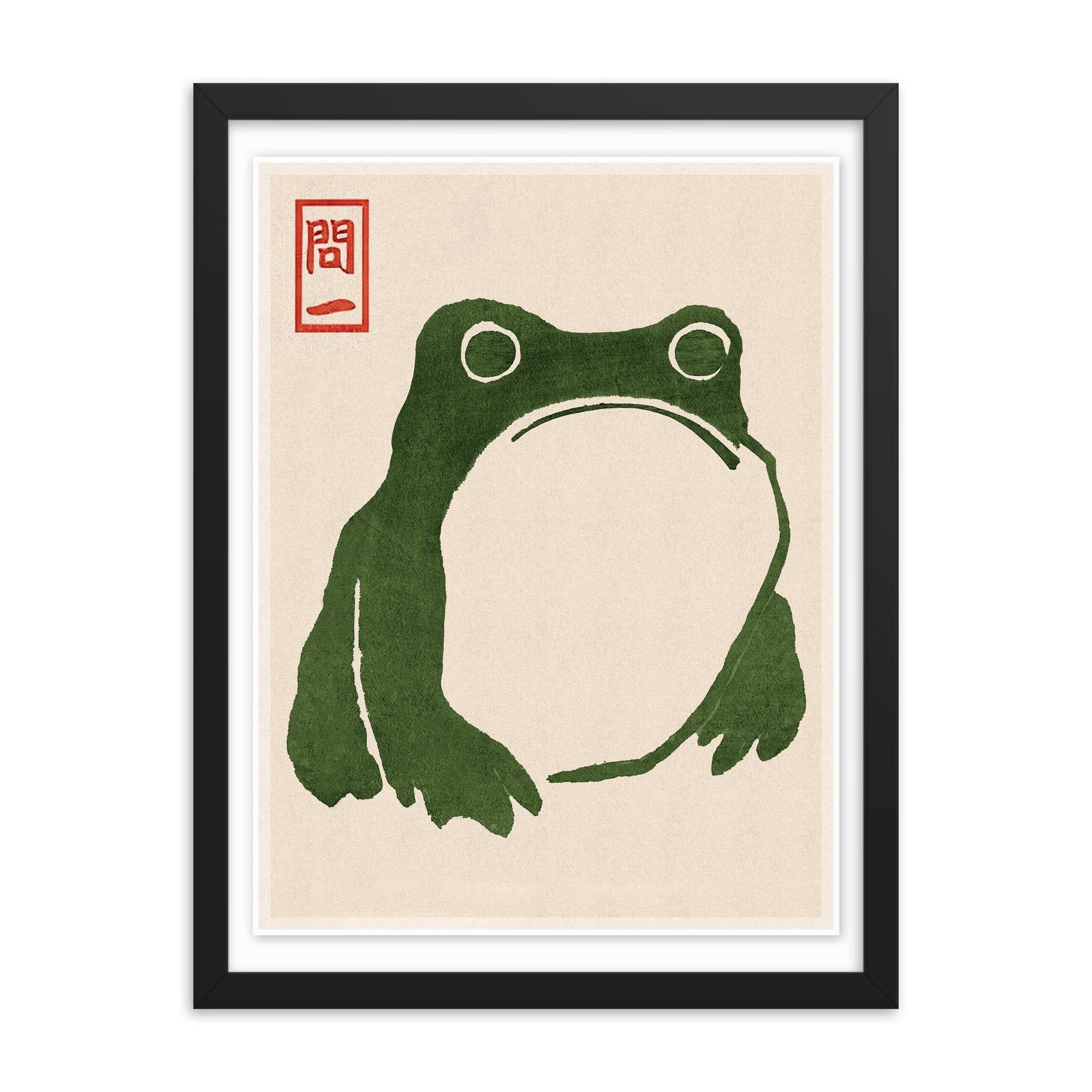 Grumpy Toad I Framed Wall Art by Matsumoto Hoji – Unique Japanese Animal Print, Ready to Hang Home Decor