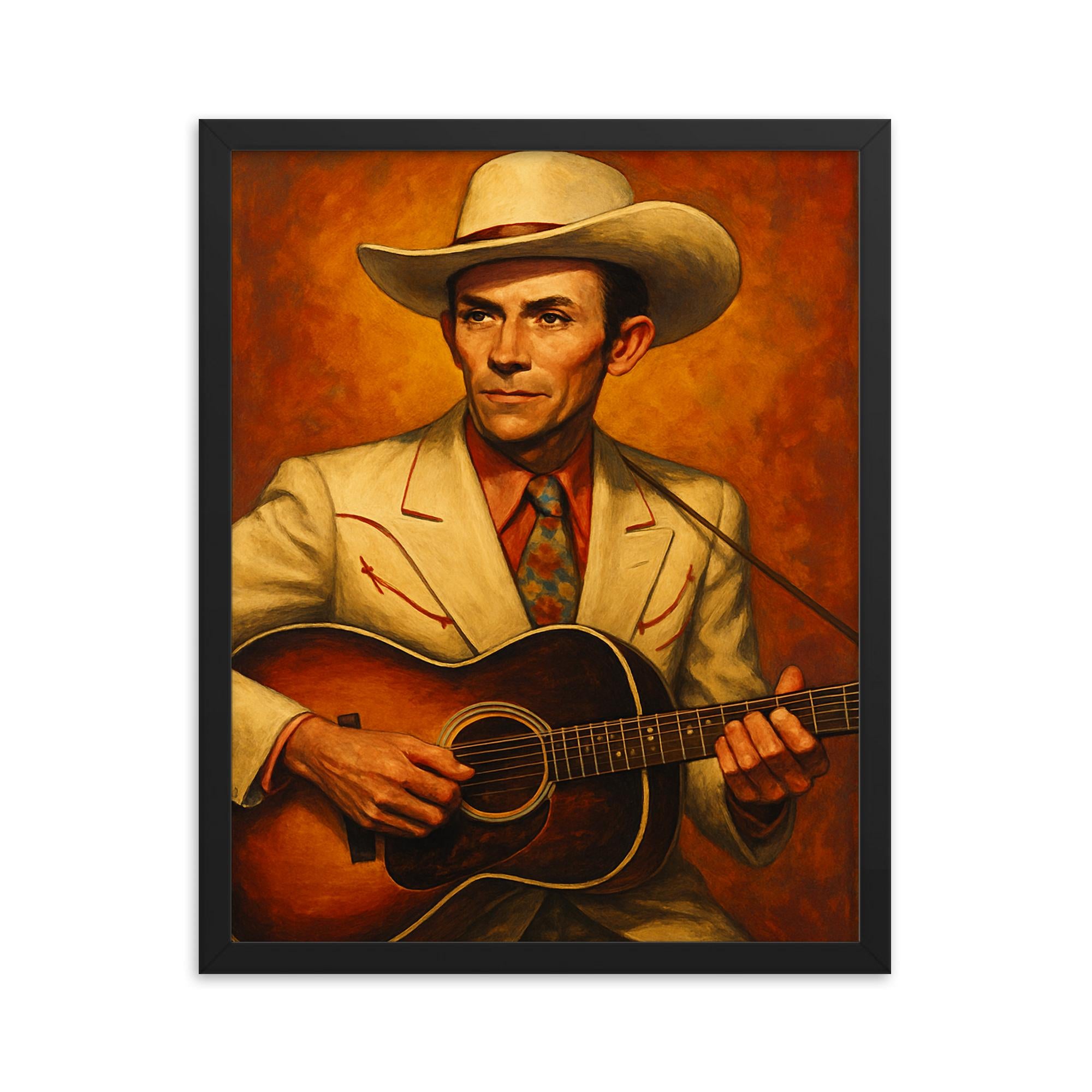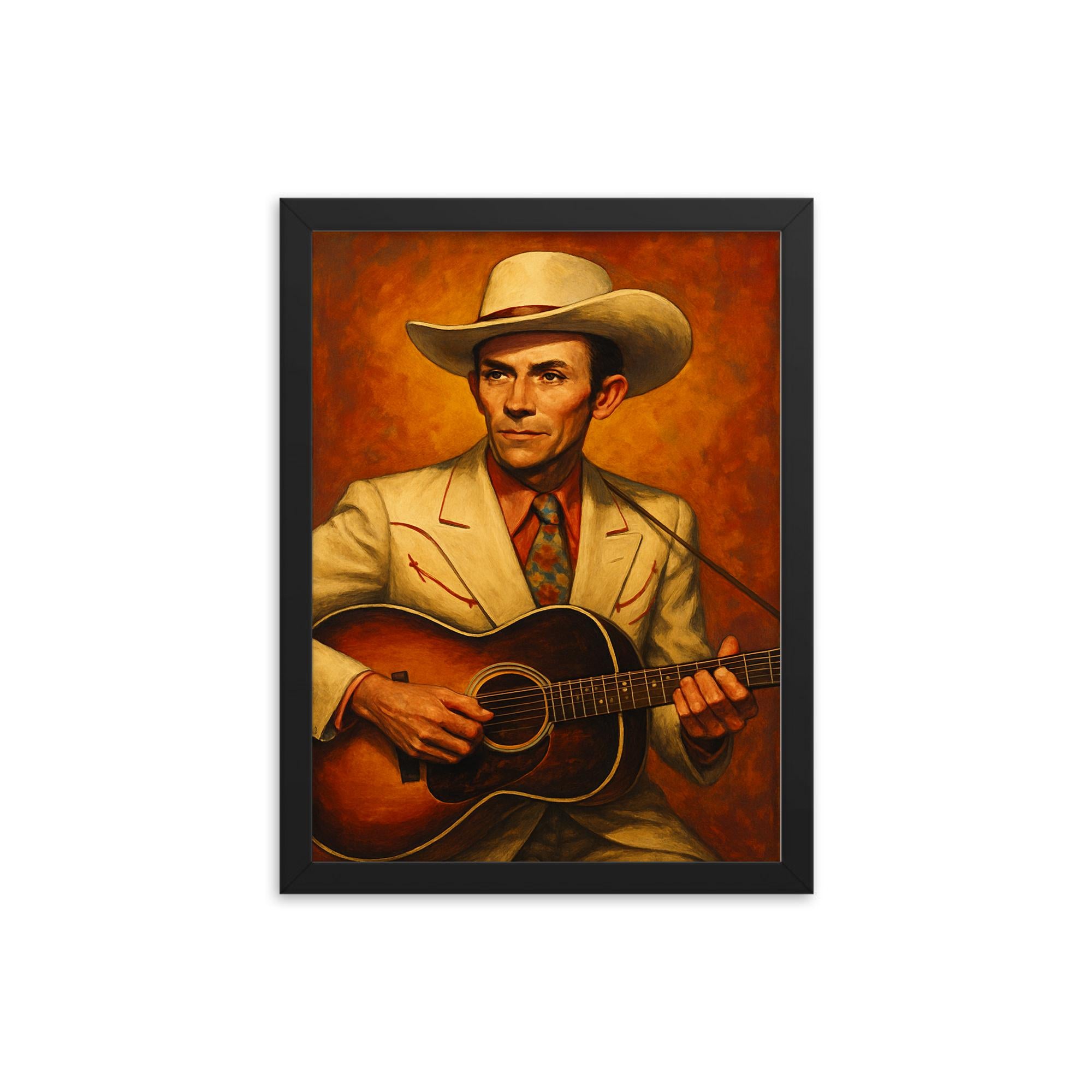 Whether you’re a devoted Hank Williams fan or searching for that perfect gift for a music enthusiast, this framed print transforms walls into a celebration of country music heritage.