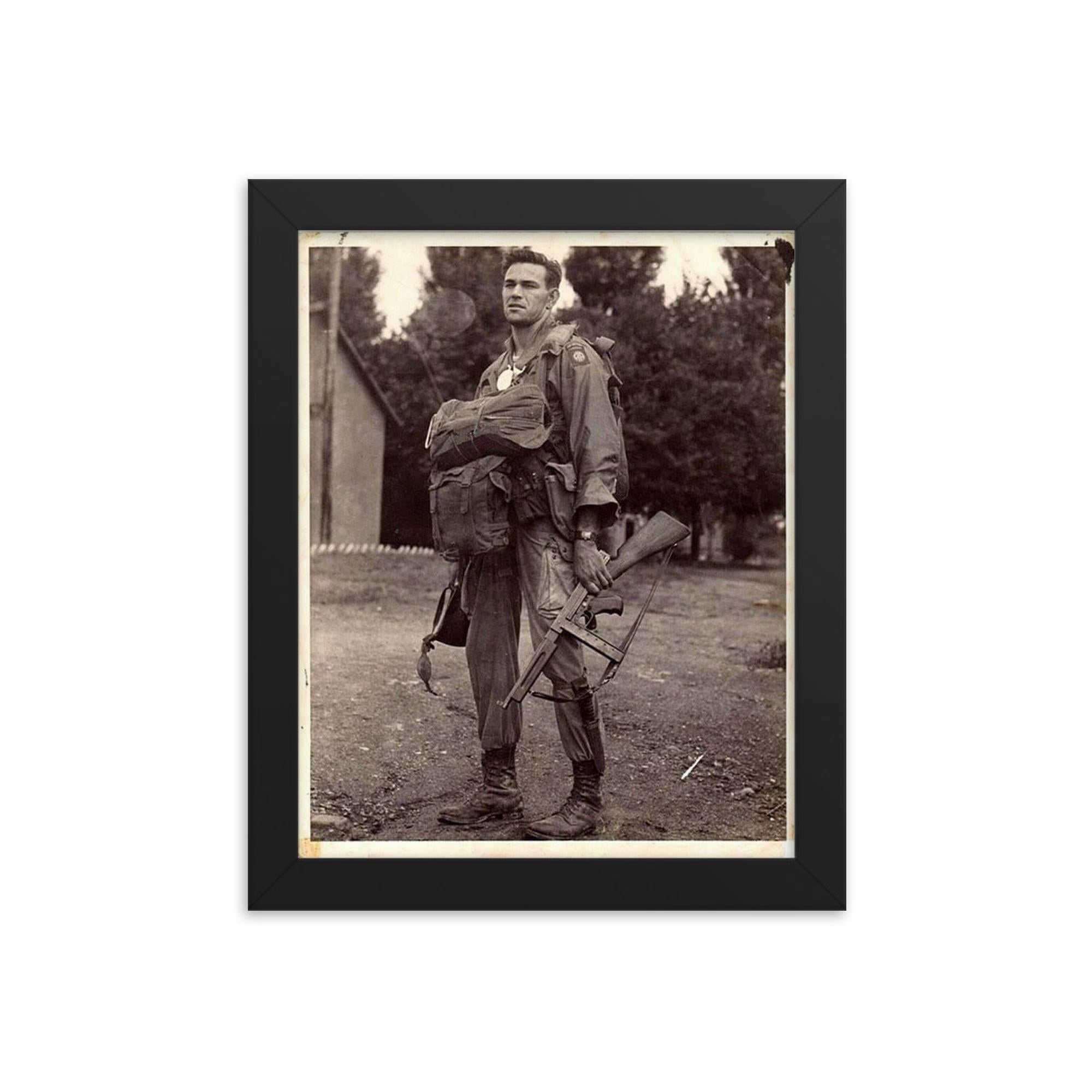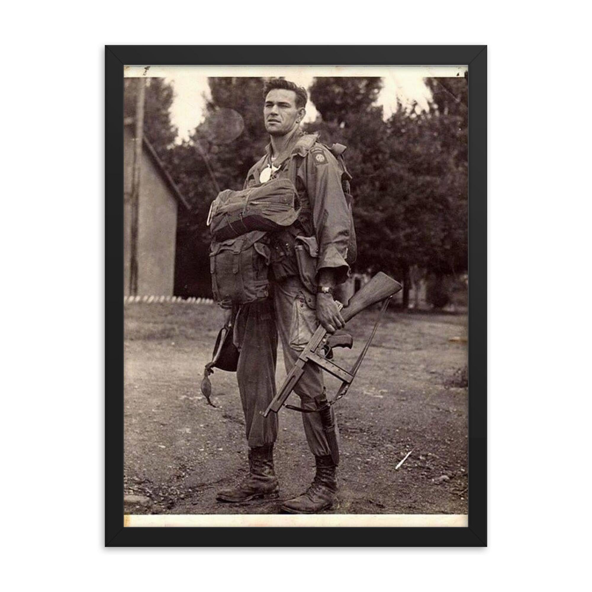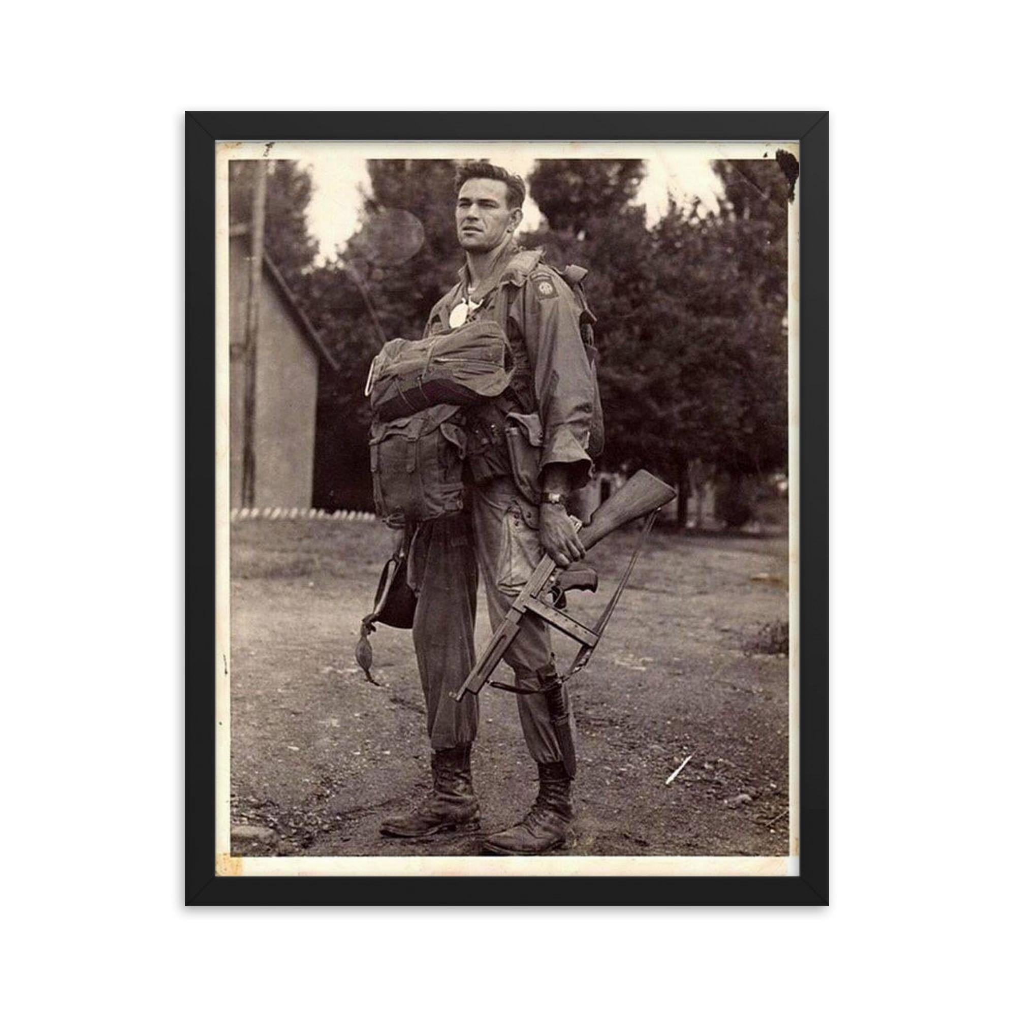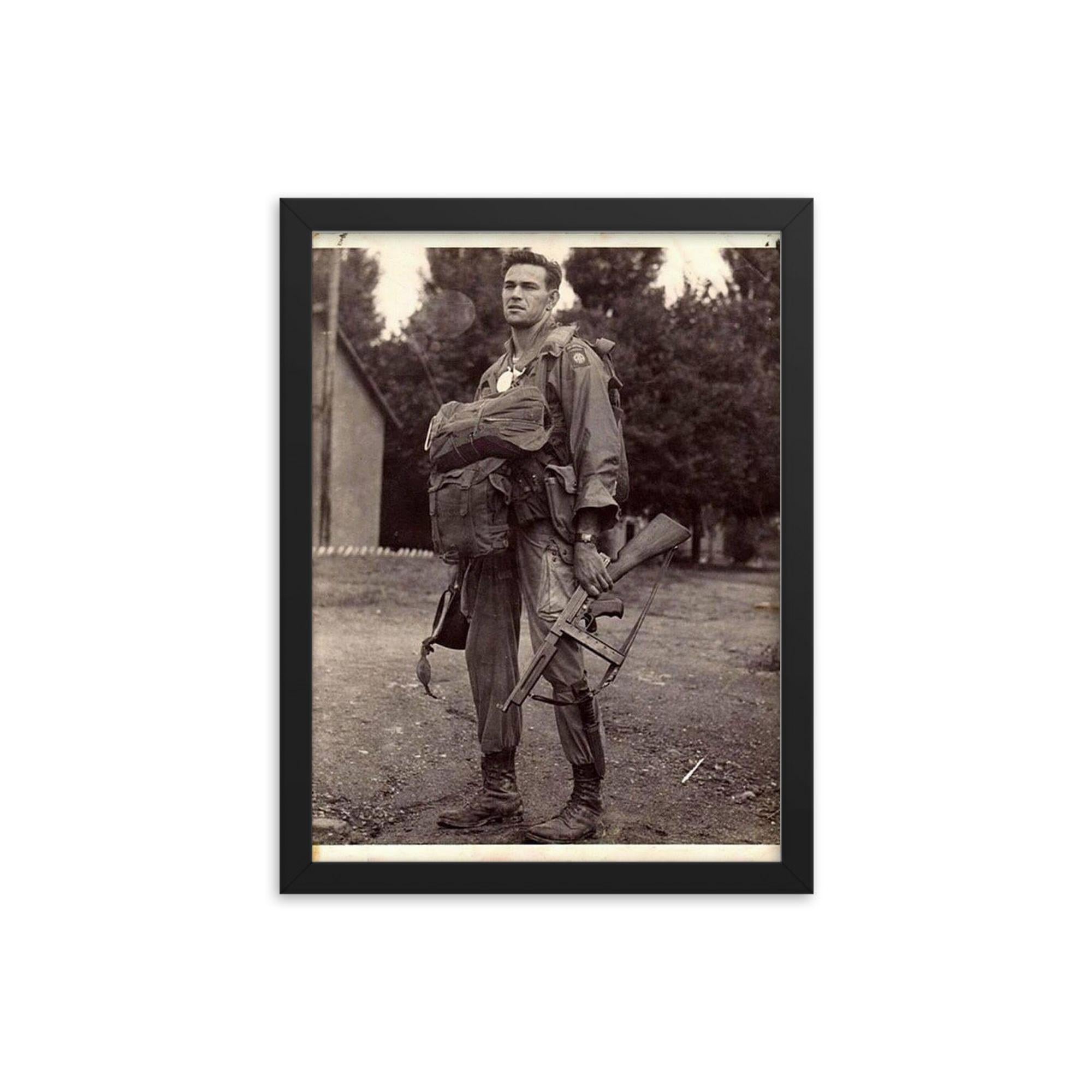 Own a timeless tribute to courage and history with our beautifully framed print of *Harry Hudec of the 82nd Airborne Ready for Combat Jump, 1944*. This striking wall art instantly transports you to a pivotal moment in WWII, making it a powerful centerpiece for your home, office, or gift collection.