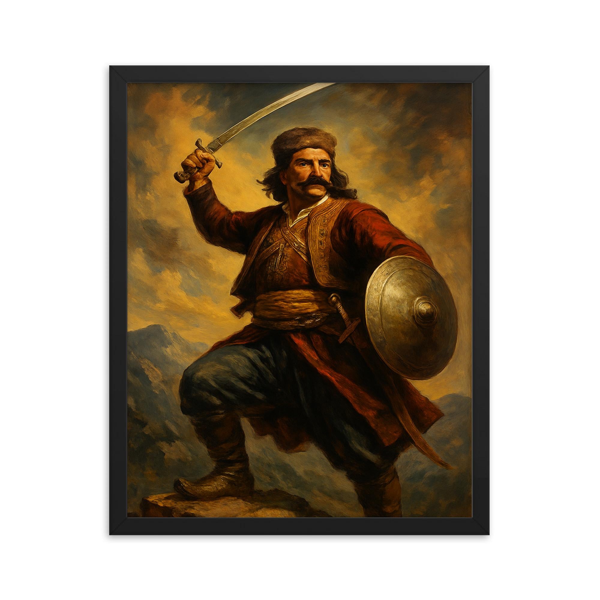 Expertly crafted wall art that brings history and valor straight to your home or office This framed print captures the essence of a legendary figure, making it a must-have for enthusiasts of culture, history, and timeless heroism