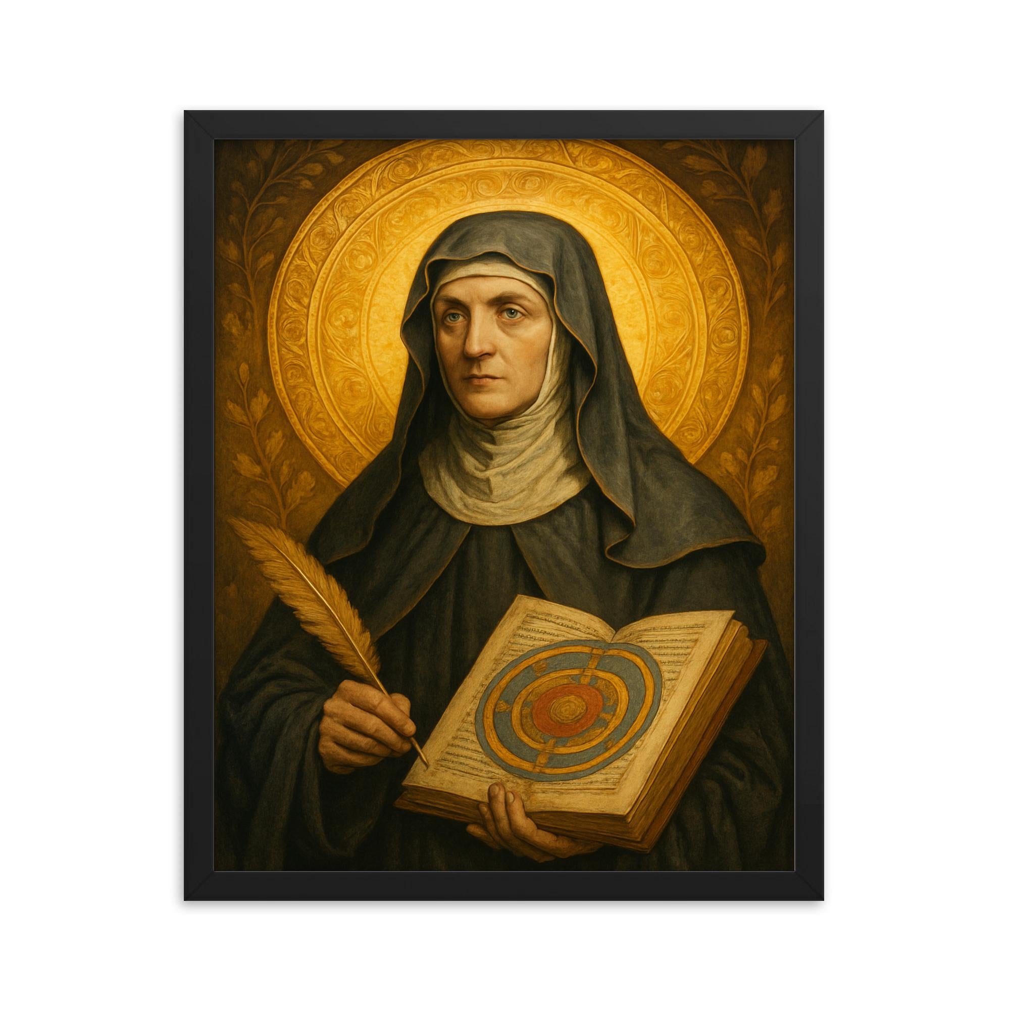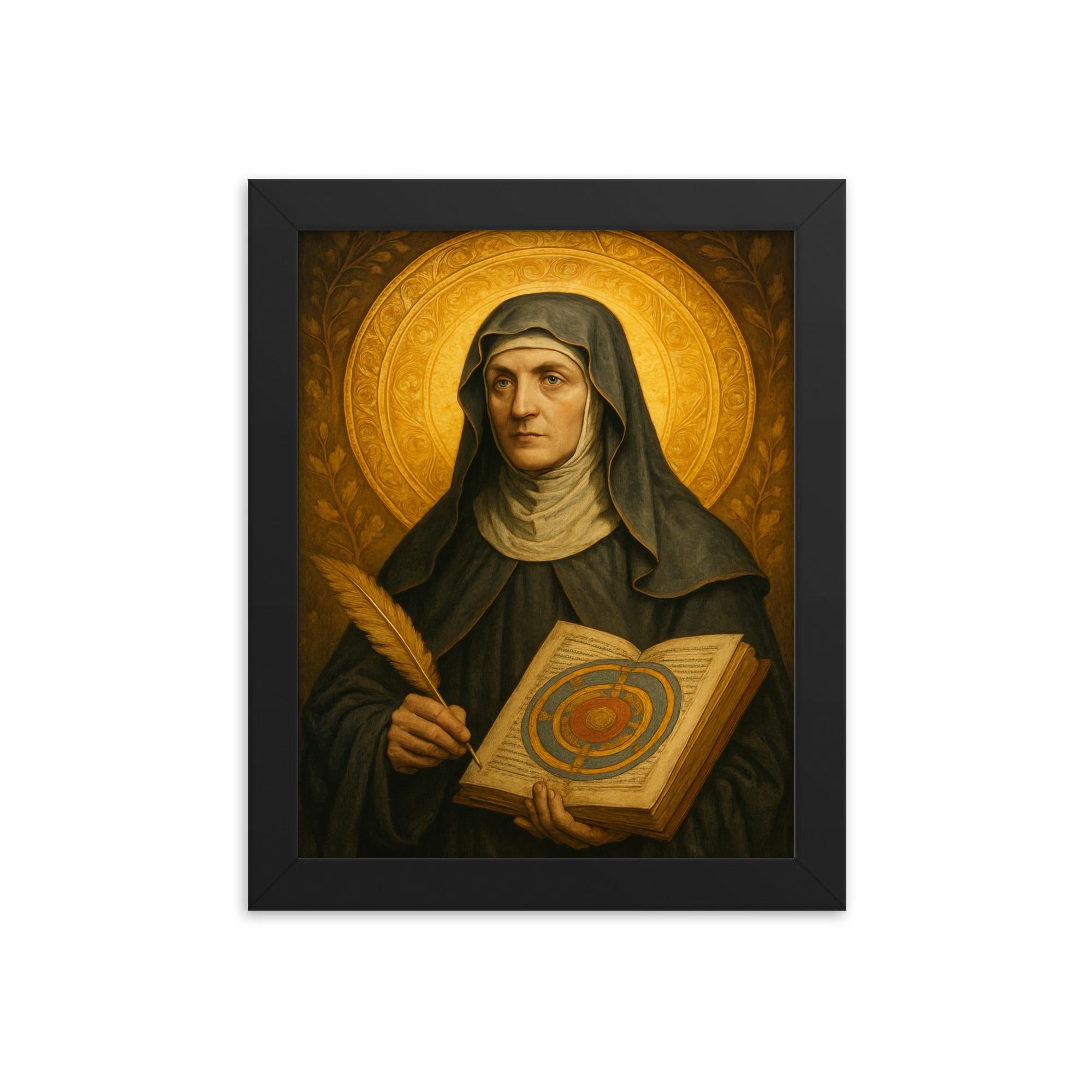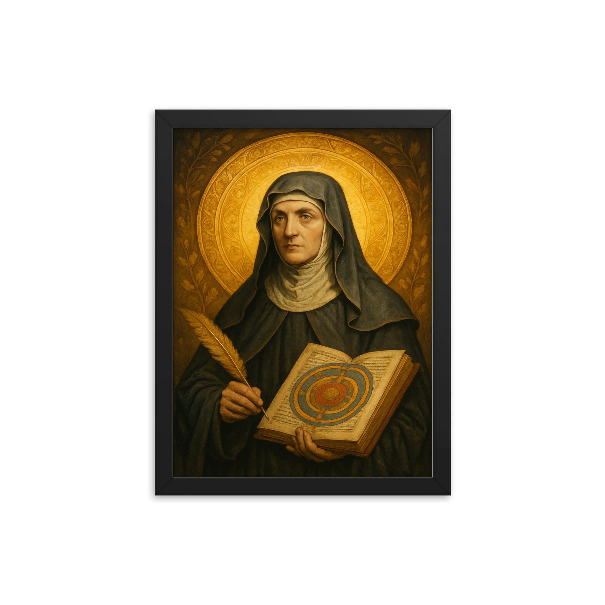 Celebrate the luminous legacy of Hildegard von Bingen with this stunning framed print—an inspiring addition to any home, office, or creative space.